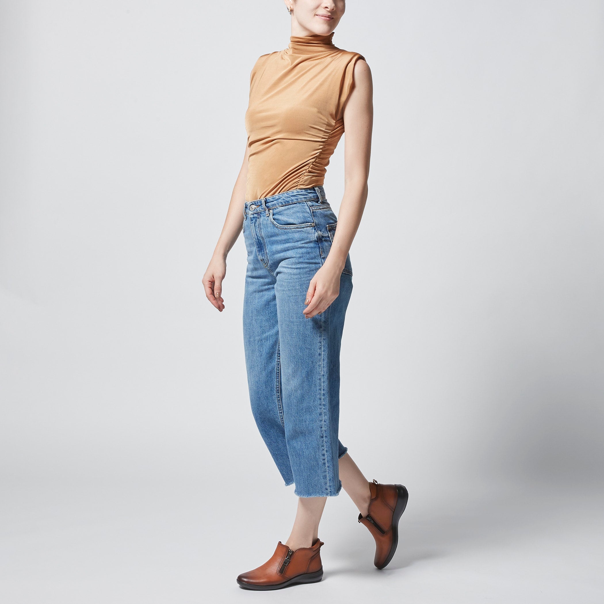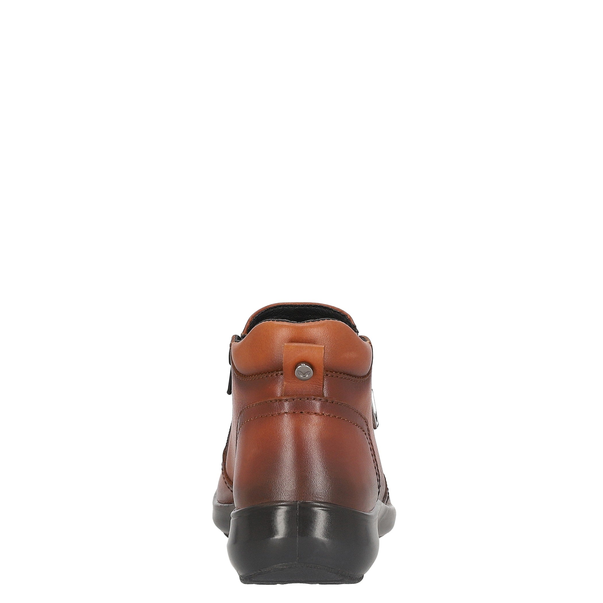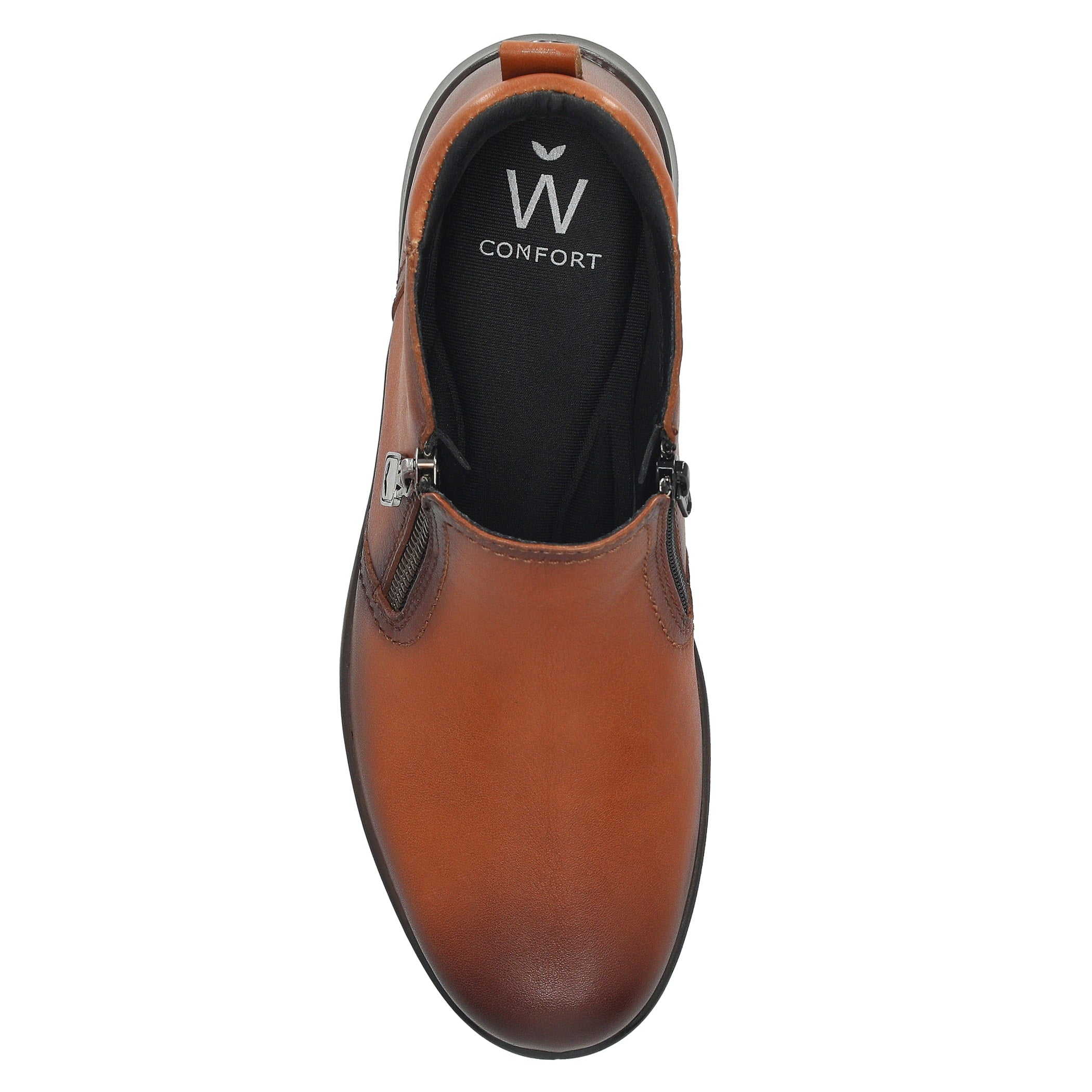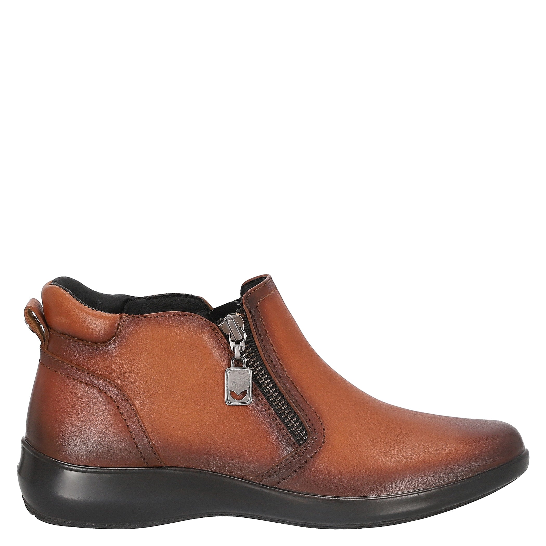 Botín W Confort para mujer elaborado en material piel con estampado liso, fijación de cierre, punta redonda, cuña baja, forro de piel y textura lisa.