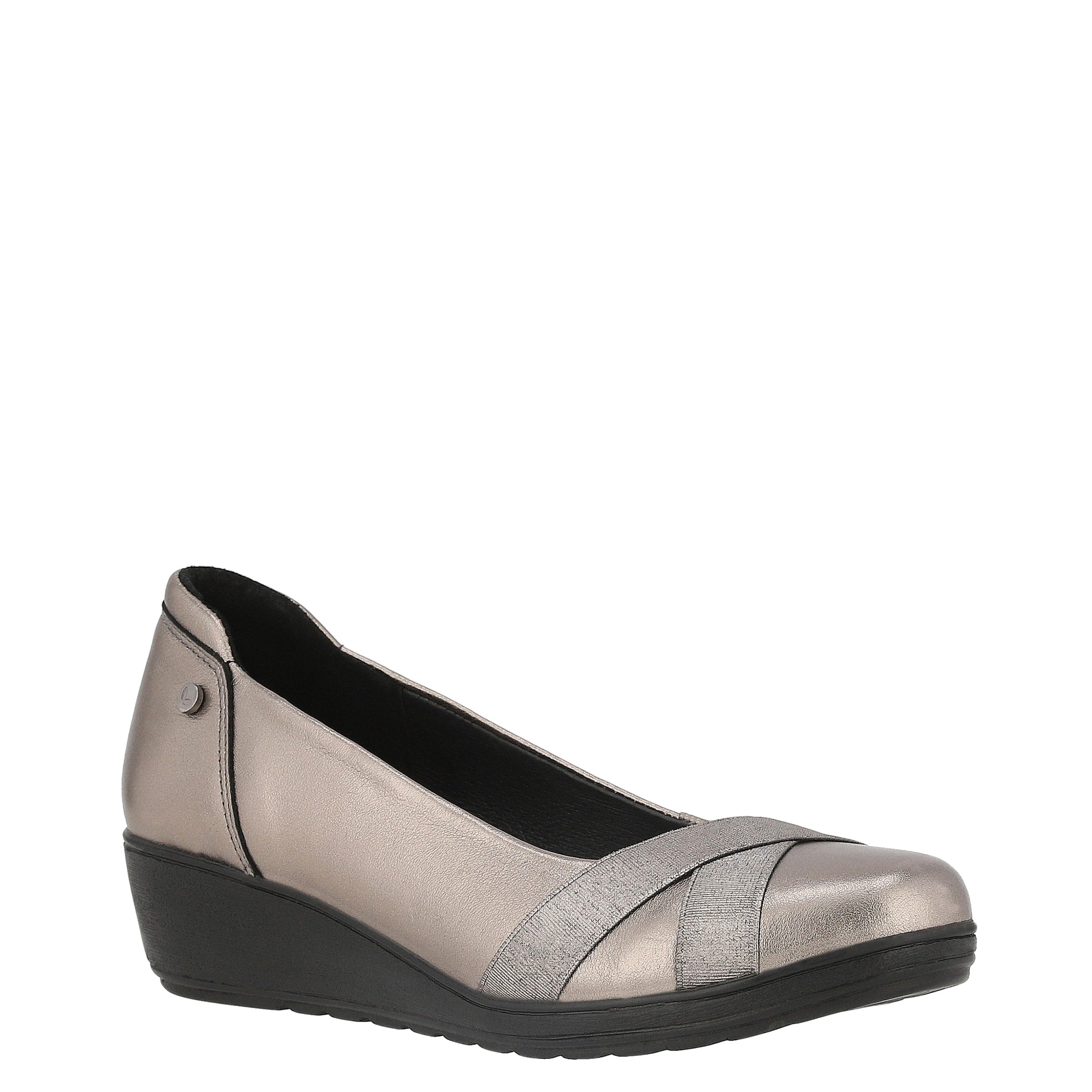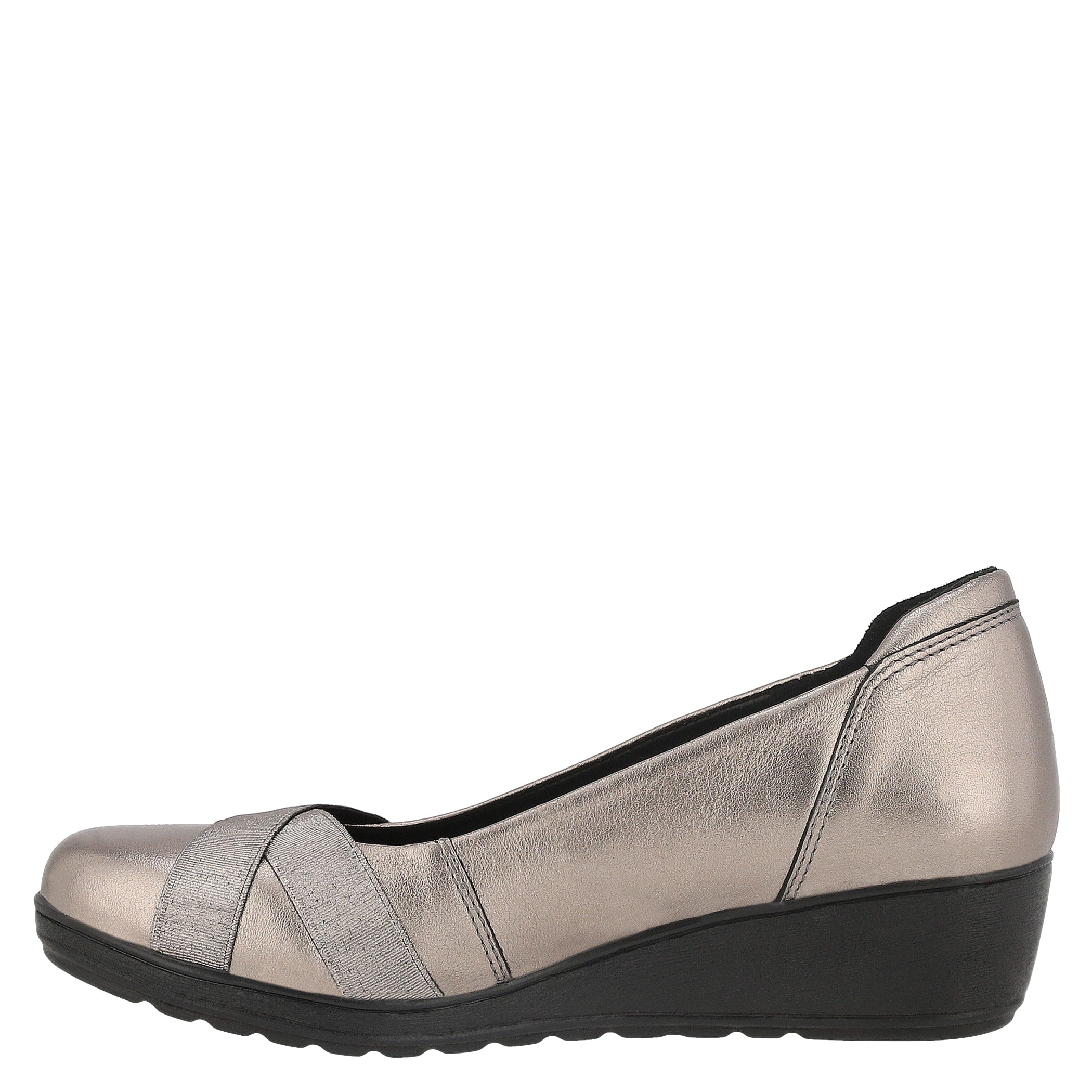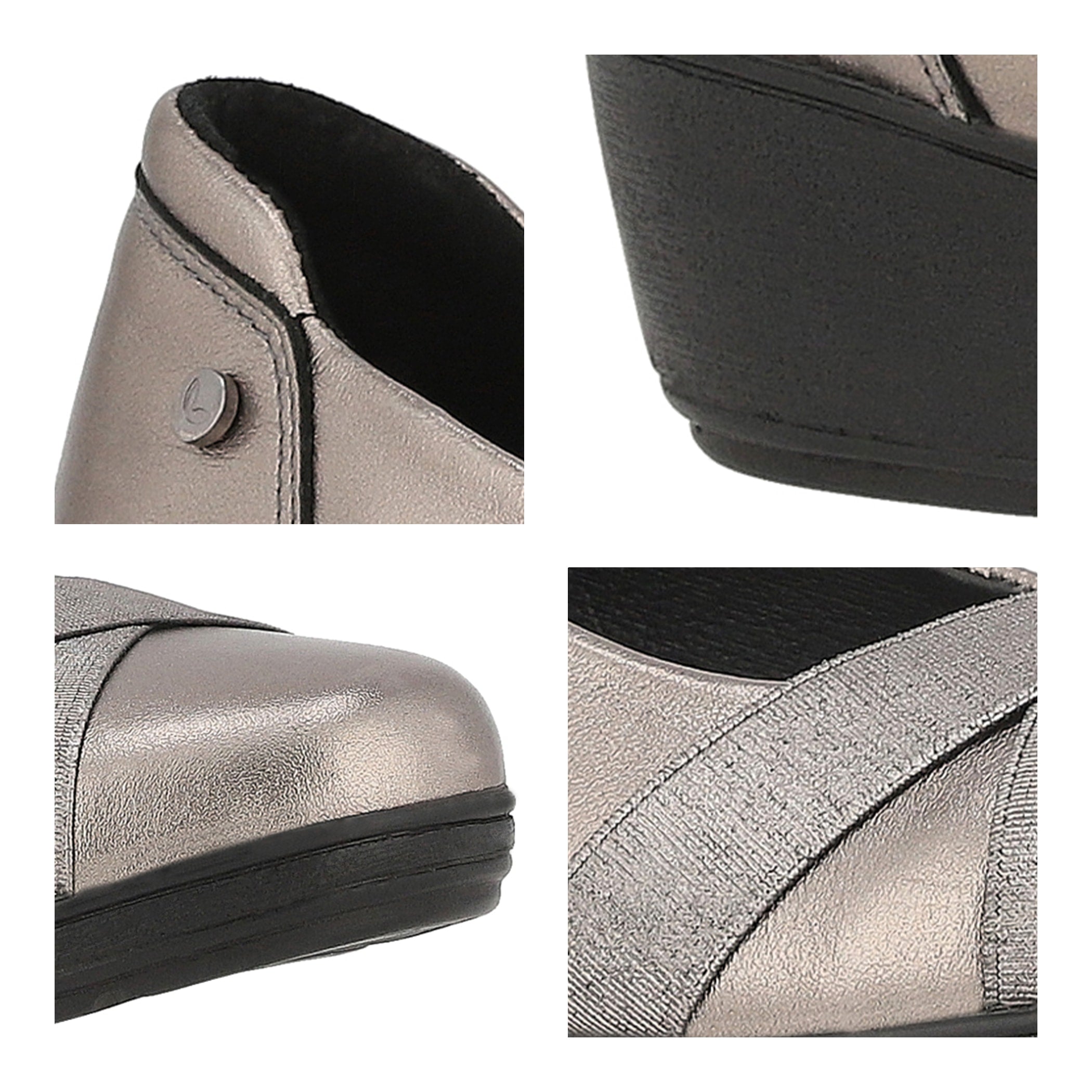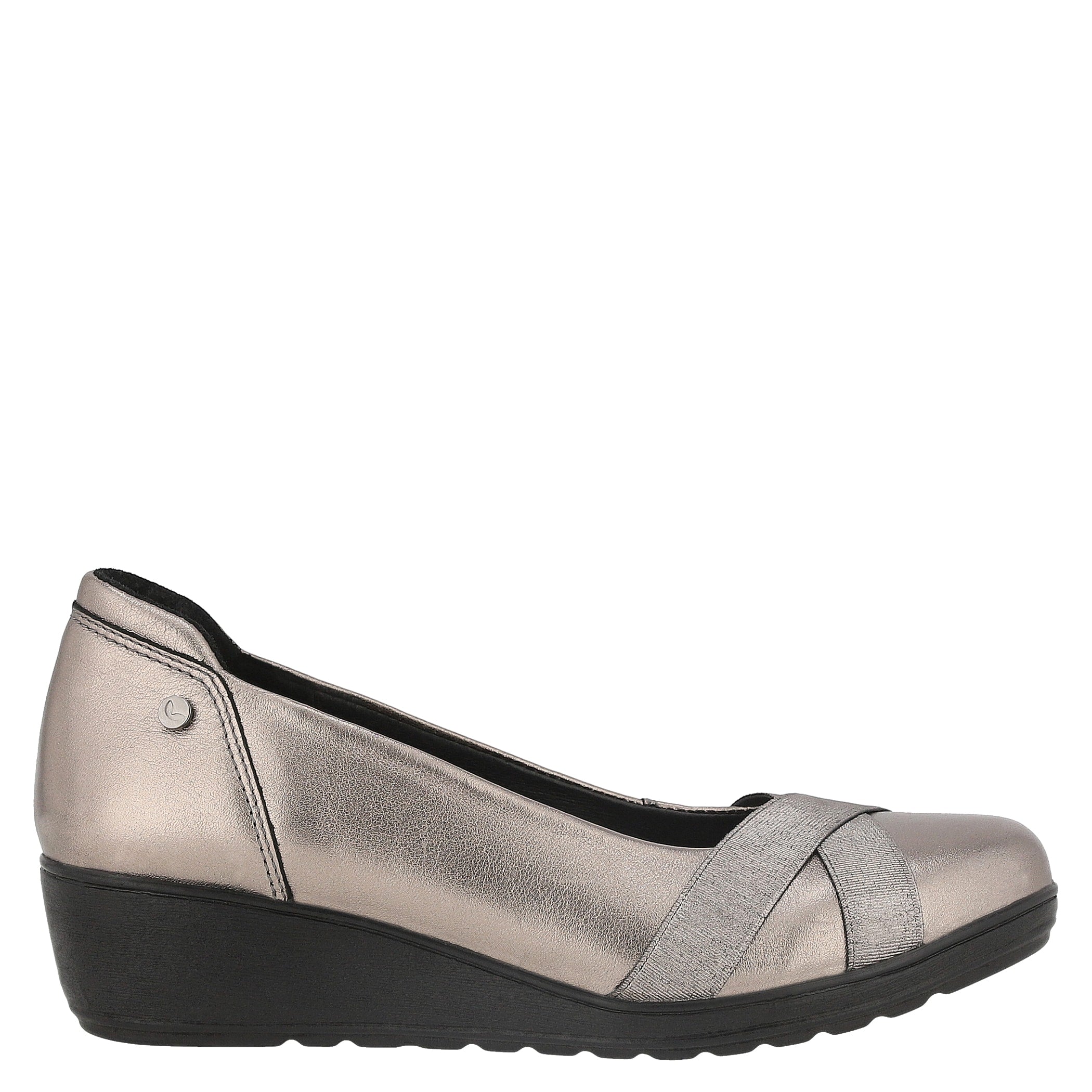 Disfruta de la comodidad y estilo con estos zapatos de corte piel en tono metalizado. La suela flexible y la cuña baja de 4 cm proporcionan un soporte ideal para tus pies, mientras que la plantilla acolchonada ofrece una sensación de confort durante todo el día. Este diseño, es perfecto para tus actividades diarias, combinando elegancia y funcionalidad.