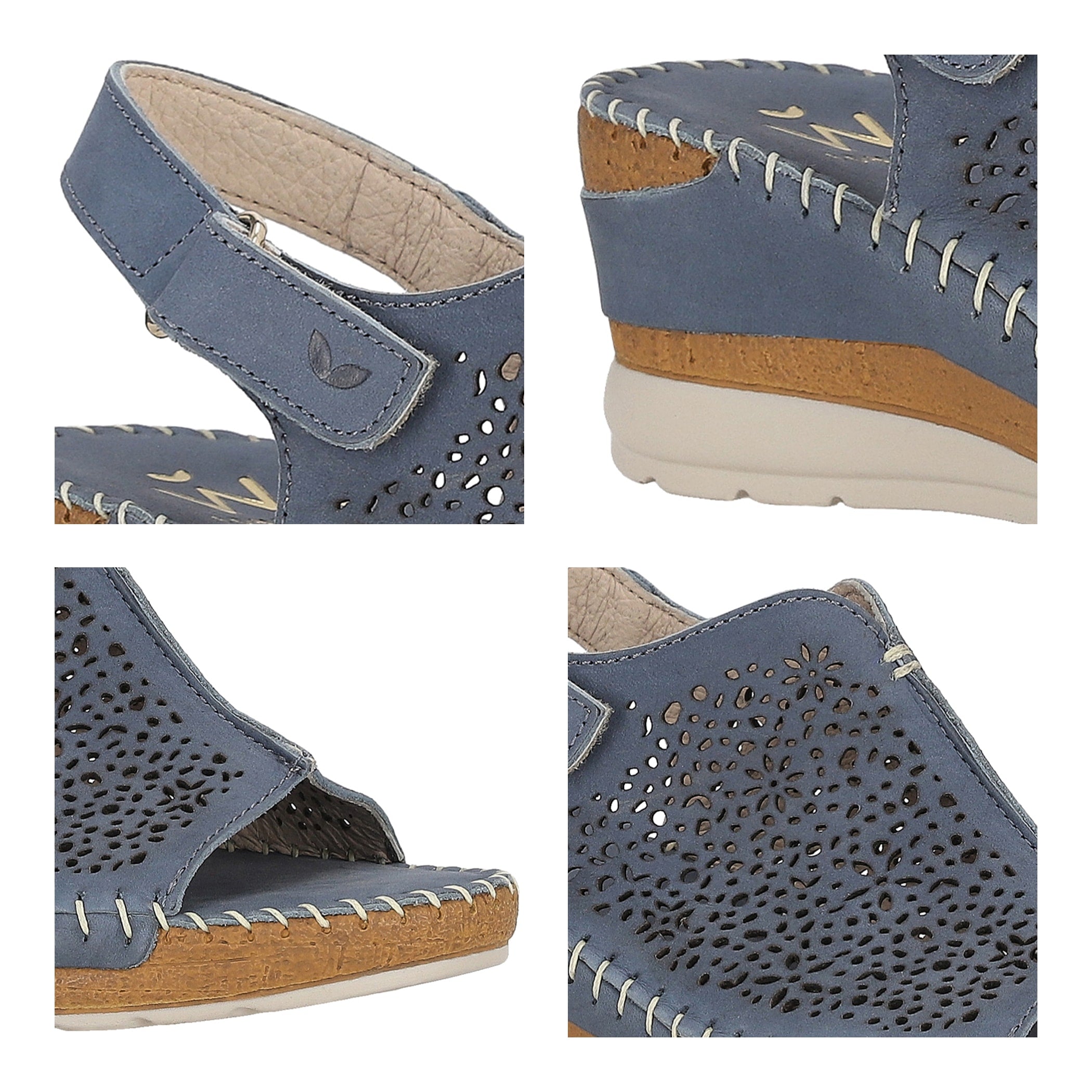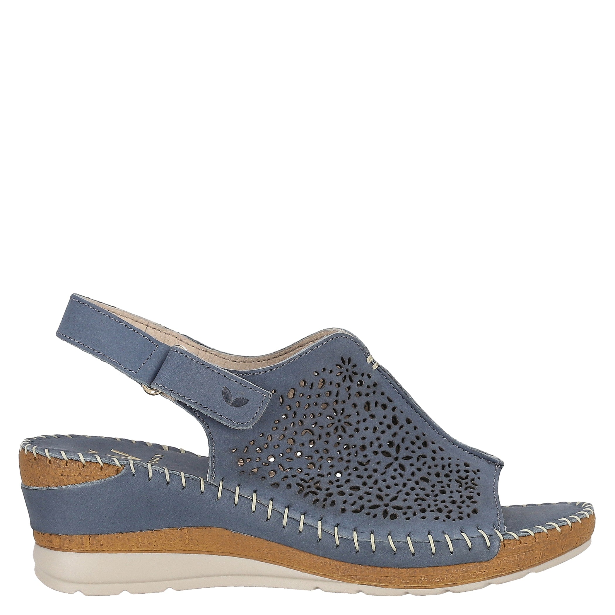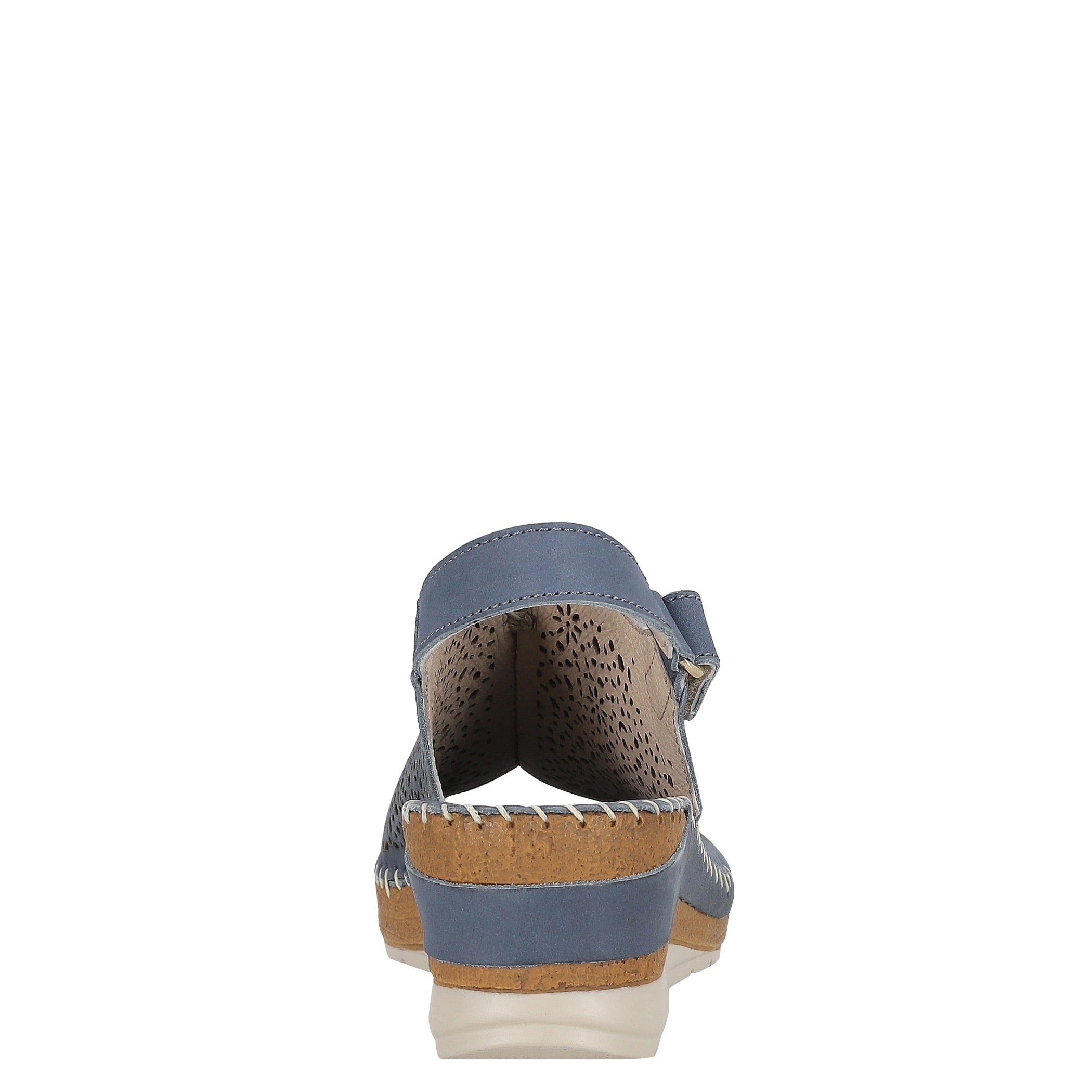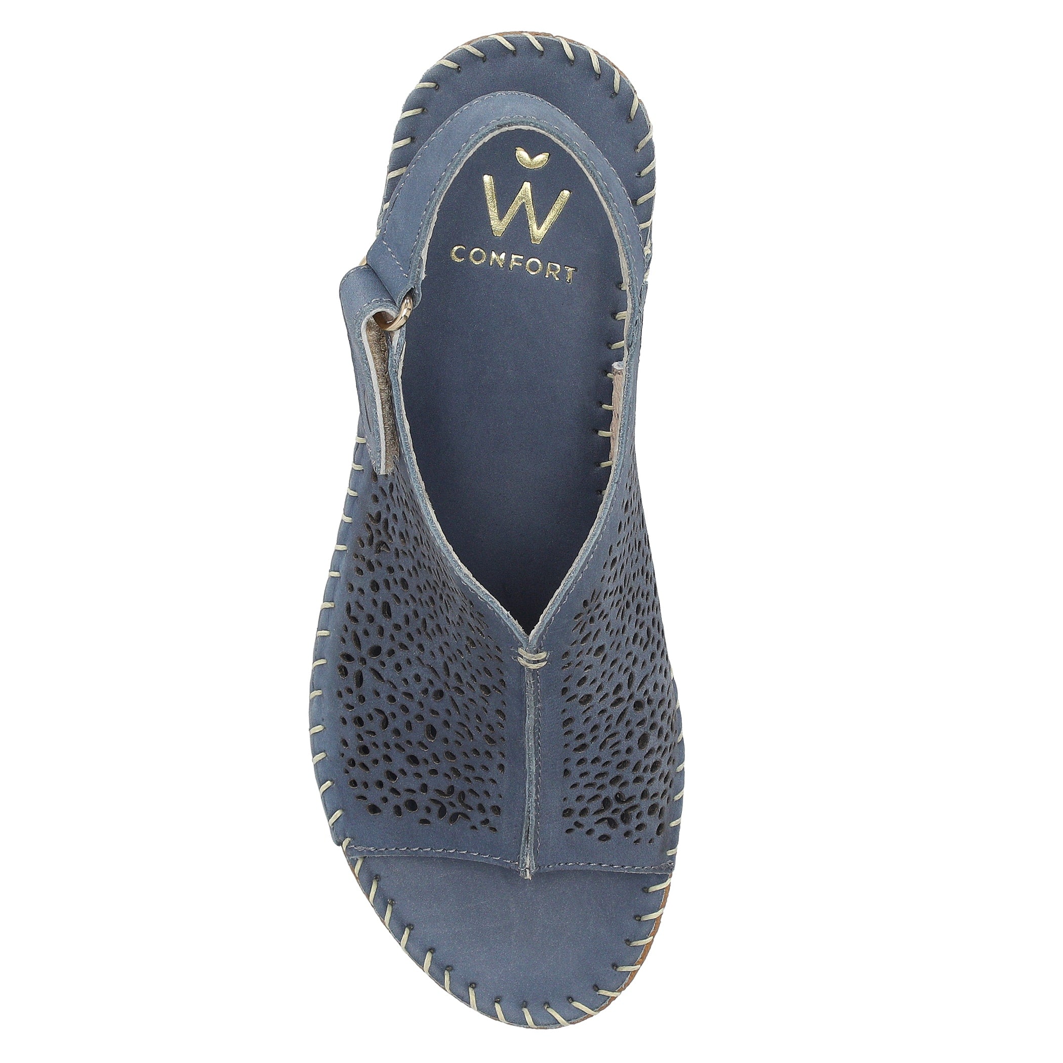 Sandalia W Confort para mujer elaborada en material piel con estampado liso, fijación de velcro, punta redonda, cuña baja y textura lisa.