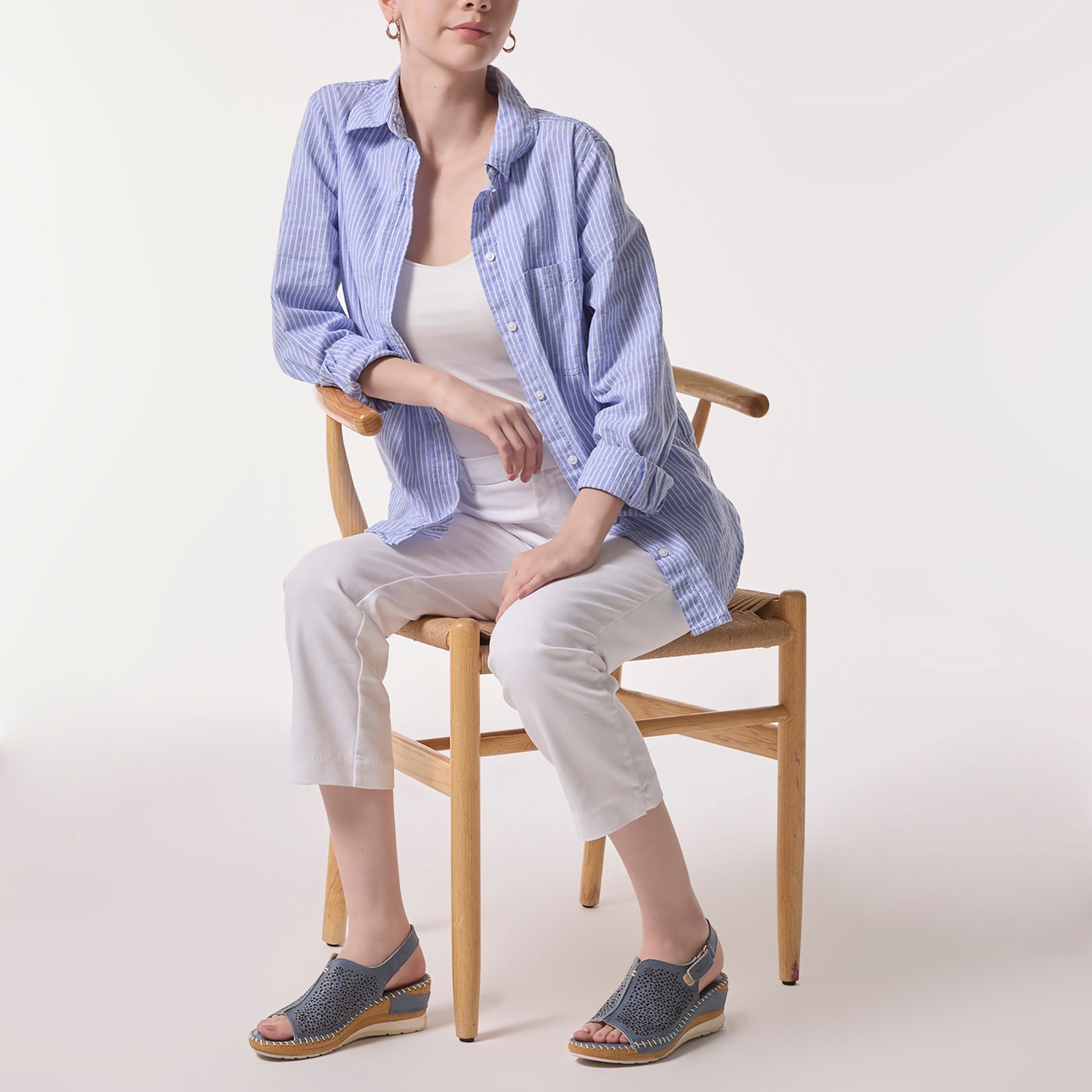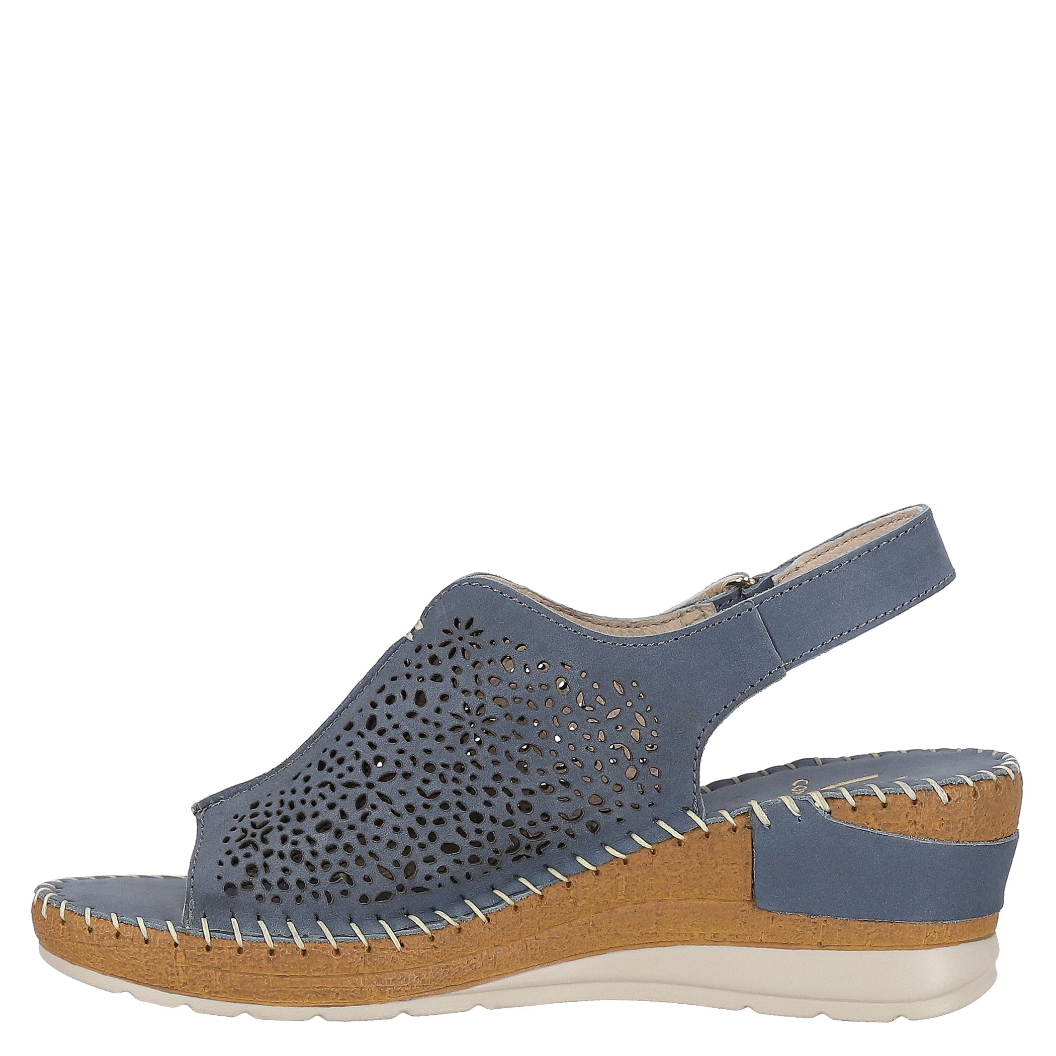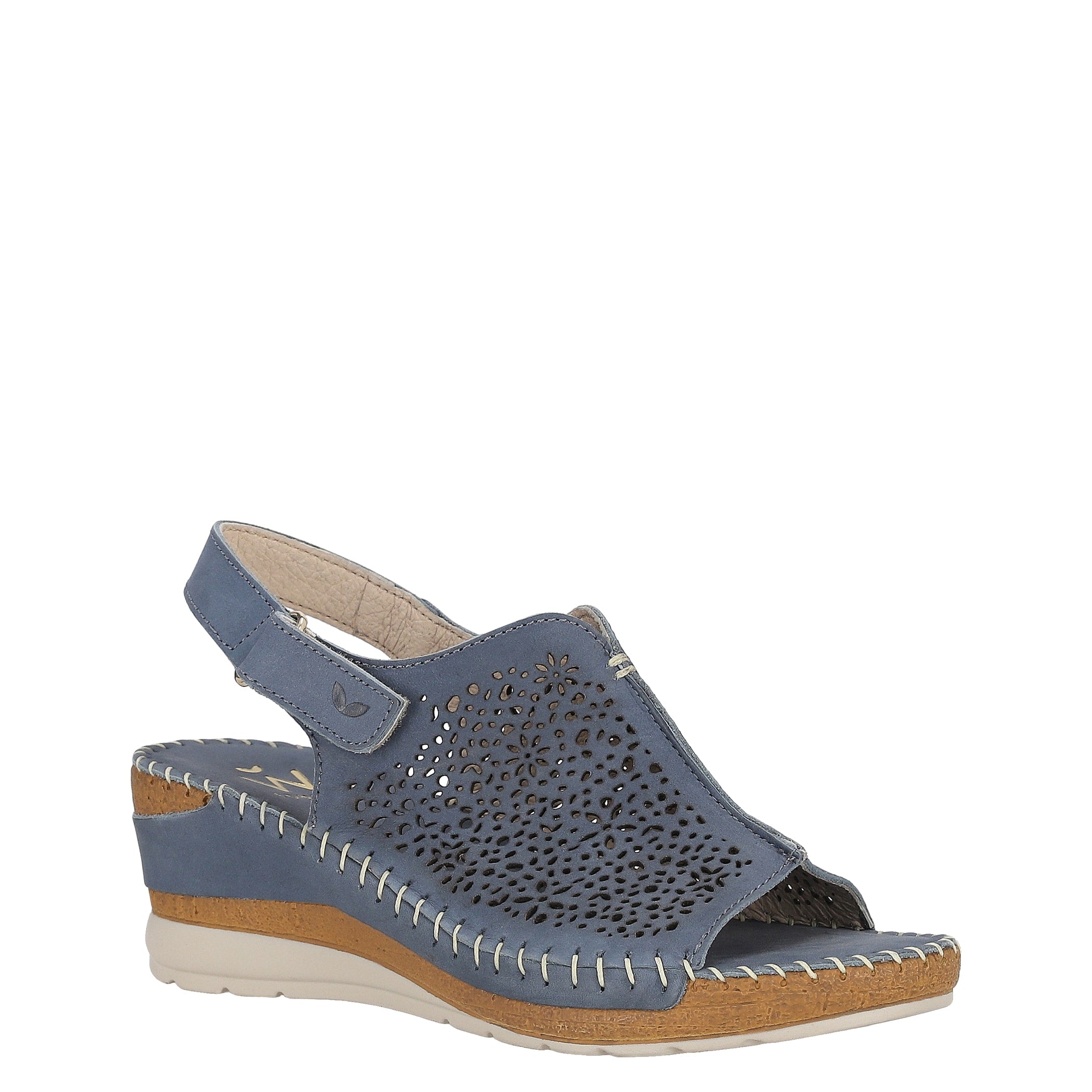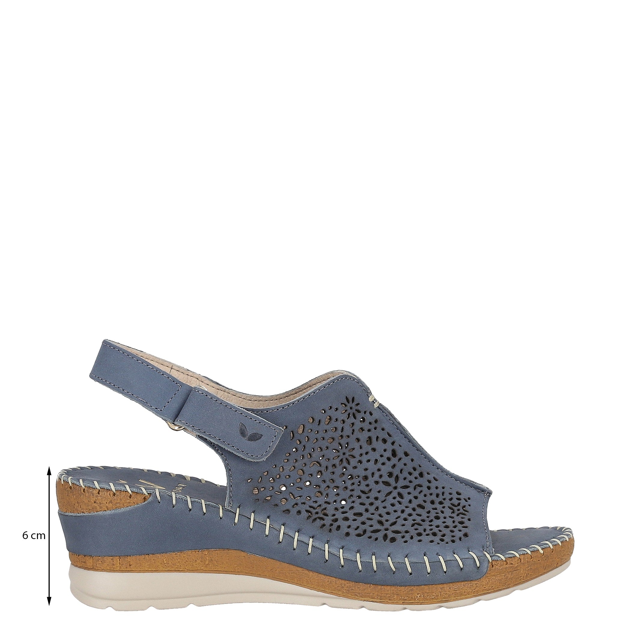 Sandalia W Confort para mujer elaborada en material piel con estampado liso, fijación de velcro, punta redonda, cuña baja y textura lisa.