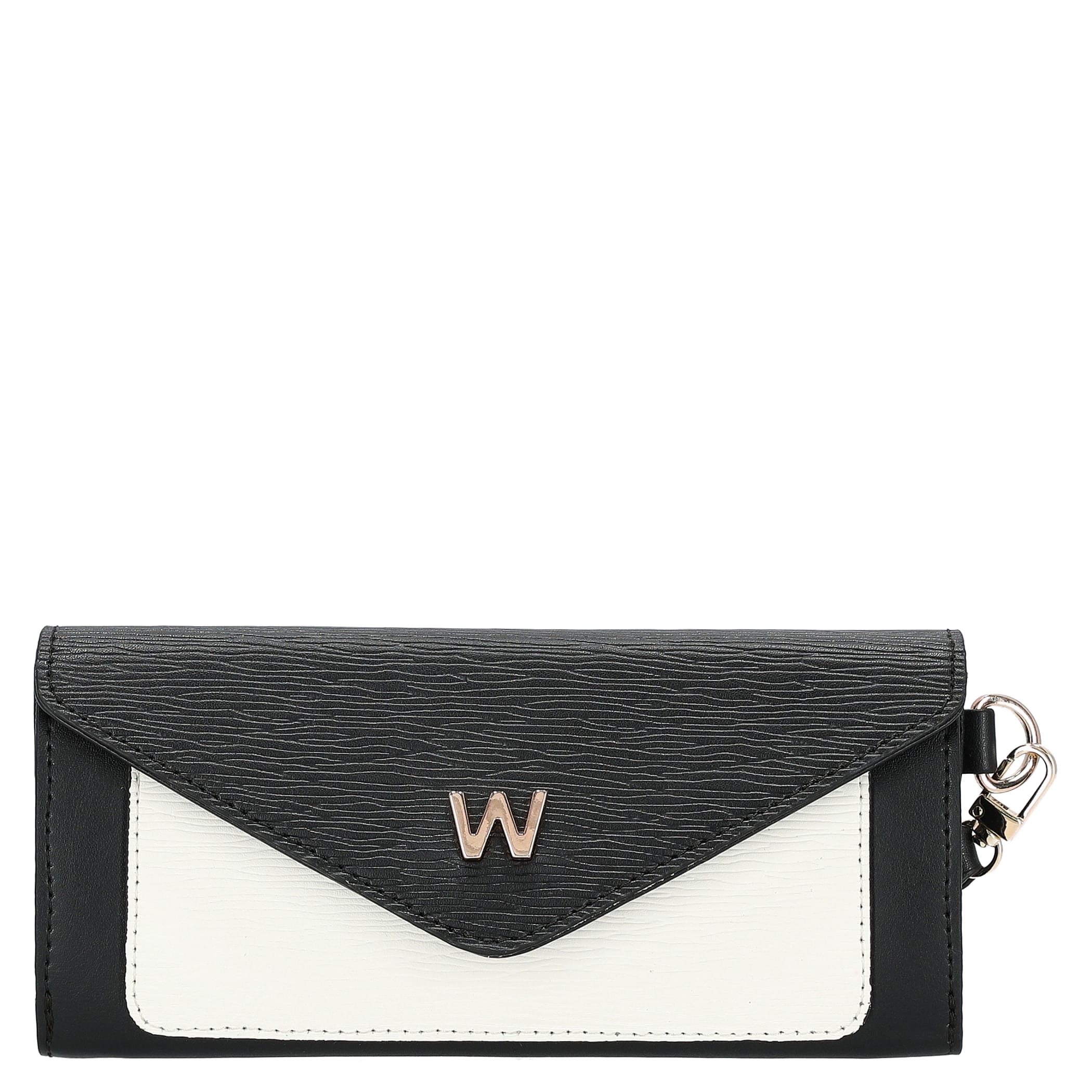 Cartera Westies para mujer elaborado en material sintético con aplicación lisa, estampado liso, 3 compartimentos, forro textil, fijación de imán y textura saffiano.