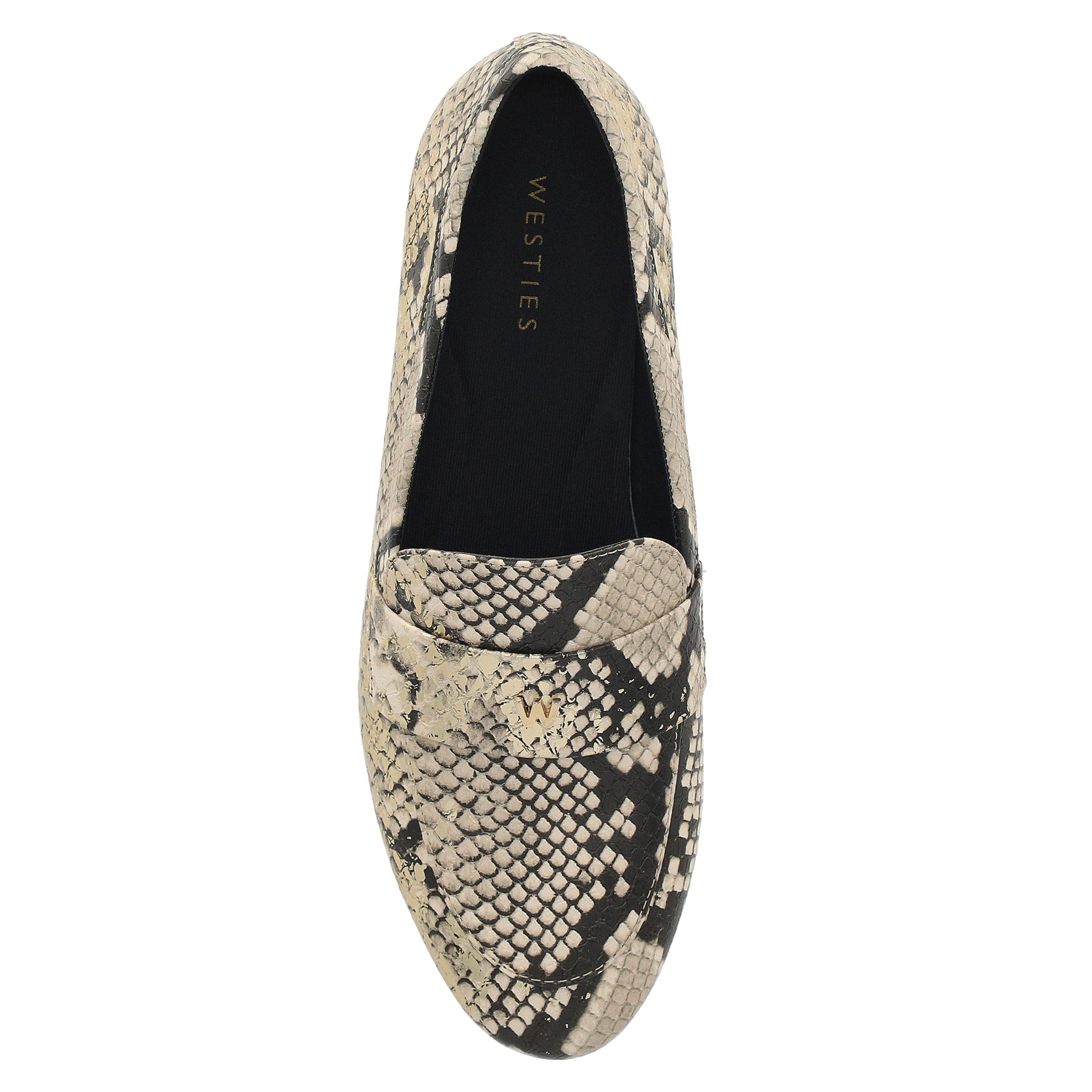 Estos mocasines Westies son perfectos para un estilo clásico con un detalle moderno. Confeccionados en material sintético con estampado liso y textura lisa, destacan por la aplicación de herraje que añade un toque elegante. La punta redonda y la fijación abierta aseguran comodidad y facilidad al calzar, mientras que el tacón de 2 cm ofrece una ligera elevación ideal para el uso diario.