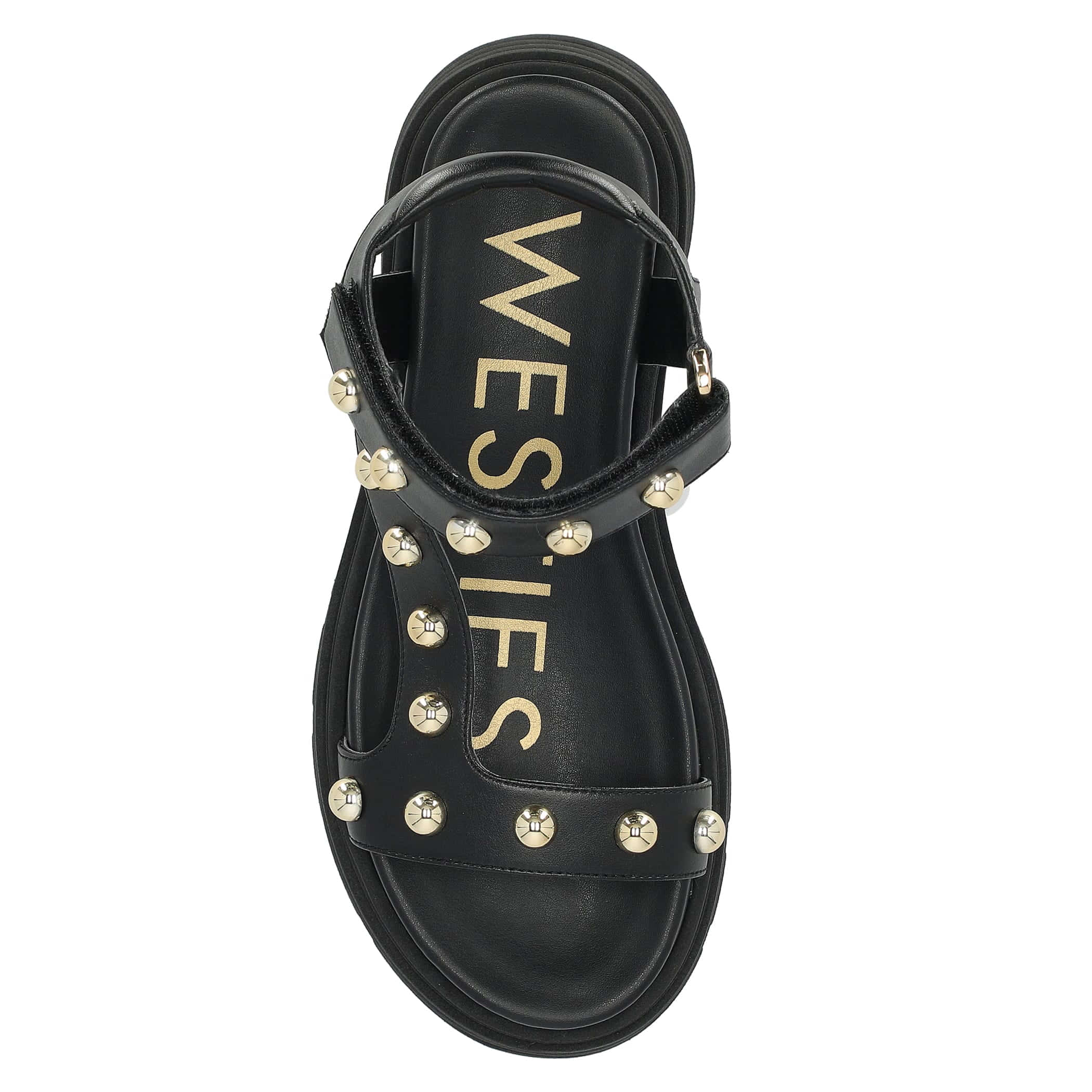 Sandalia con plataforma Westies para mujer elaborado en material sintético con aplicación estoperol, estampado liso, forro sintético, suela de inyección, fijación velcro, punta redonda, textura lisa, con una altura de tacón 6 cm.