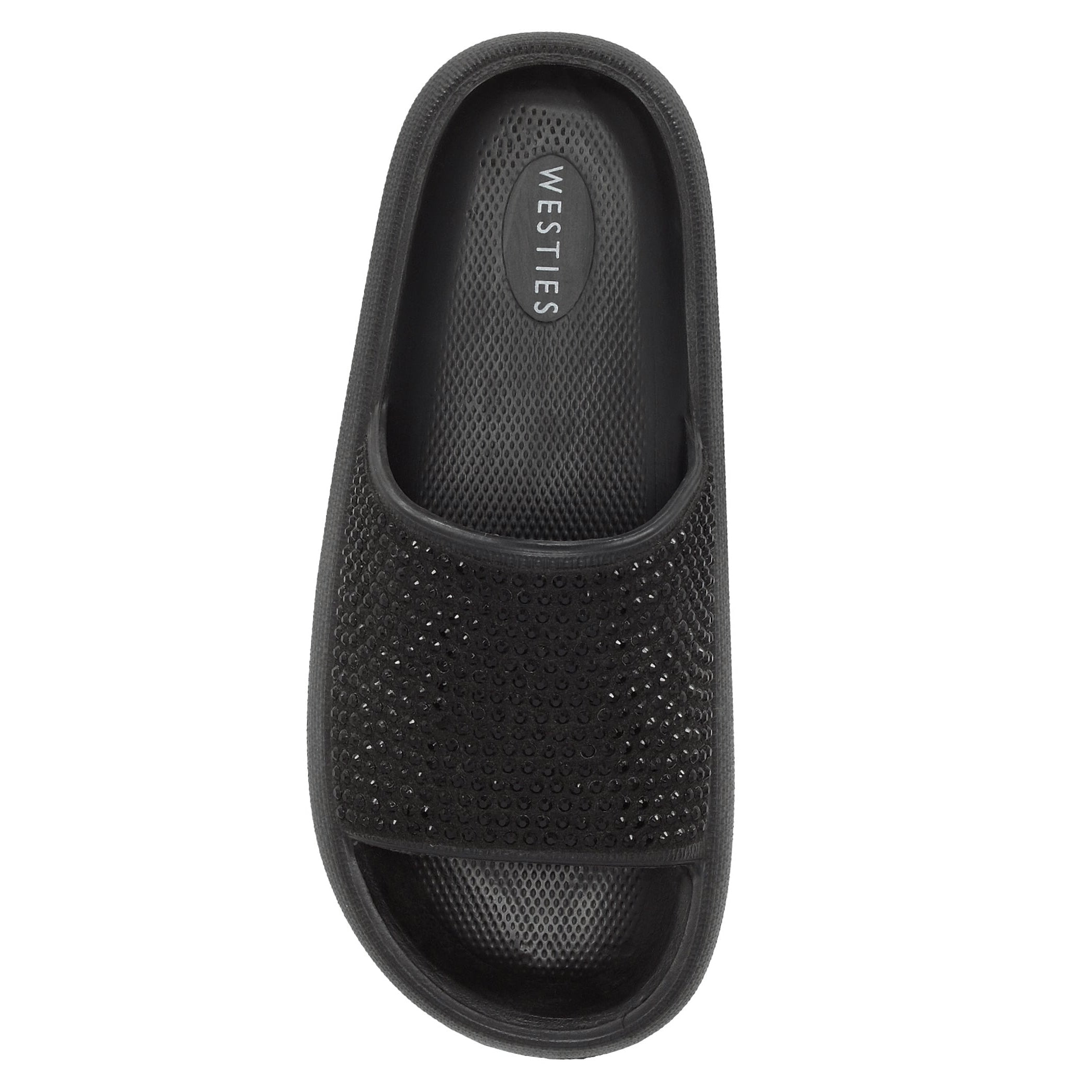 Estas sandalias Westies, confeccionadas en material sintético con estampado y textura lisa, son ideales para quienes buscan un estilo casual con un toque de glamour. Con una altura de tacón de 3 cm y una cuña baja, ofrecen comodidad para el uso diario. La aplicación de pedrería les da un toque distintivo, mientras que la fijación abierta y la punta redonda las hacen prácticas y fáciles de llevar.