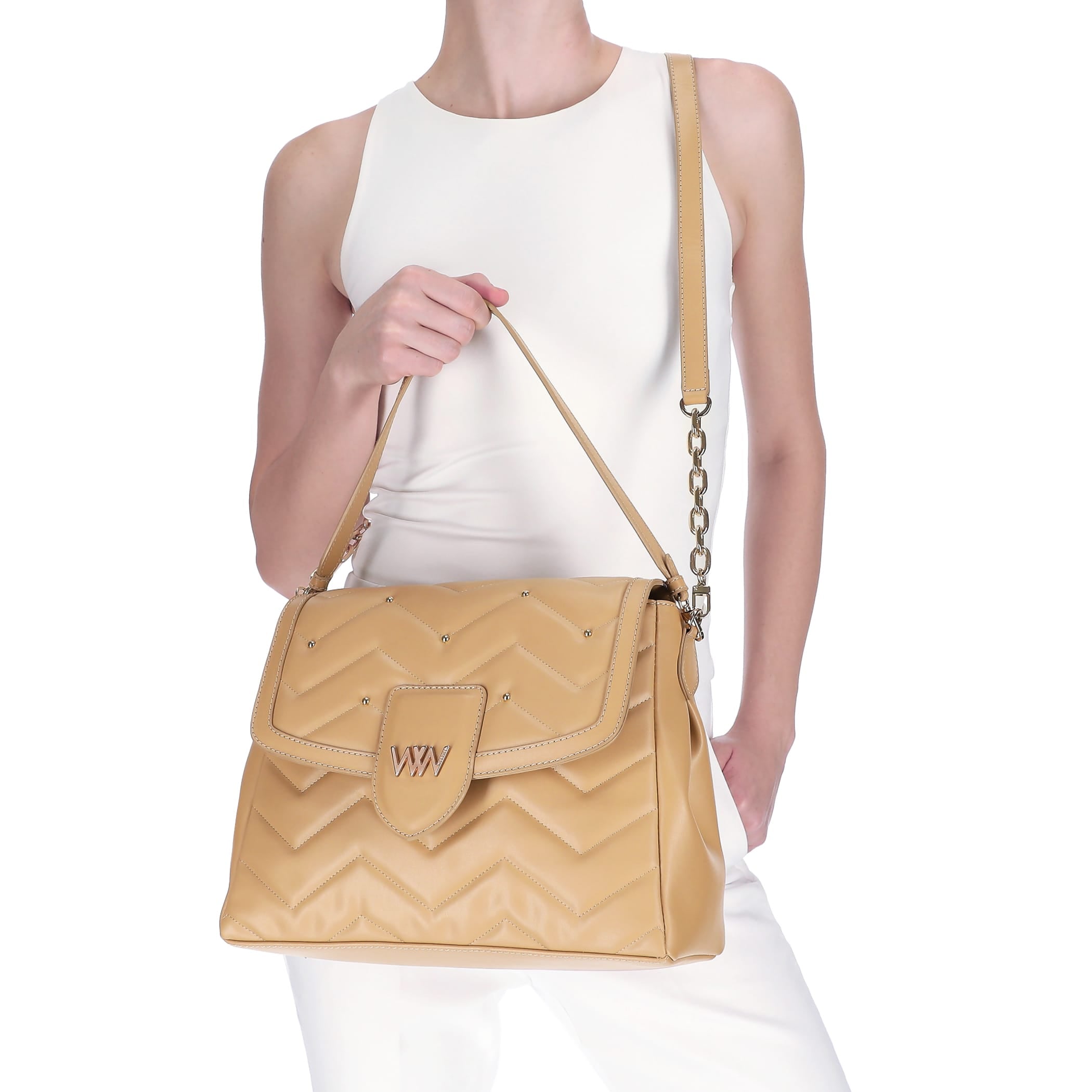 Bolsa de mano Westies para mujer elaborado en material sintético con aplicación de bordado, asa ajustable desprendible, 3 compartimentos, estampado liso, forro textil, fijación de imán y textura lisa.