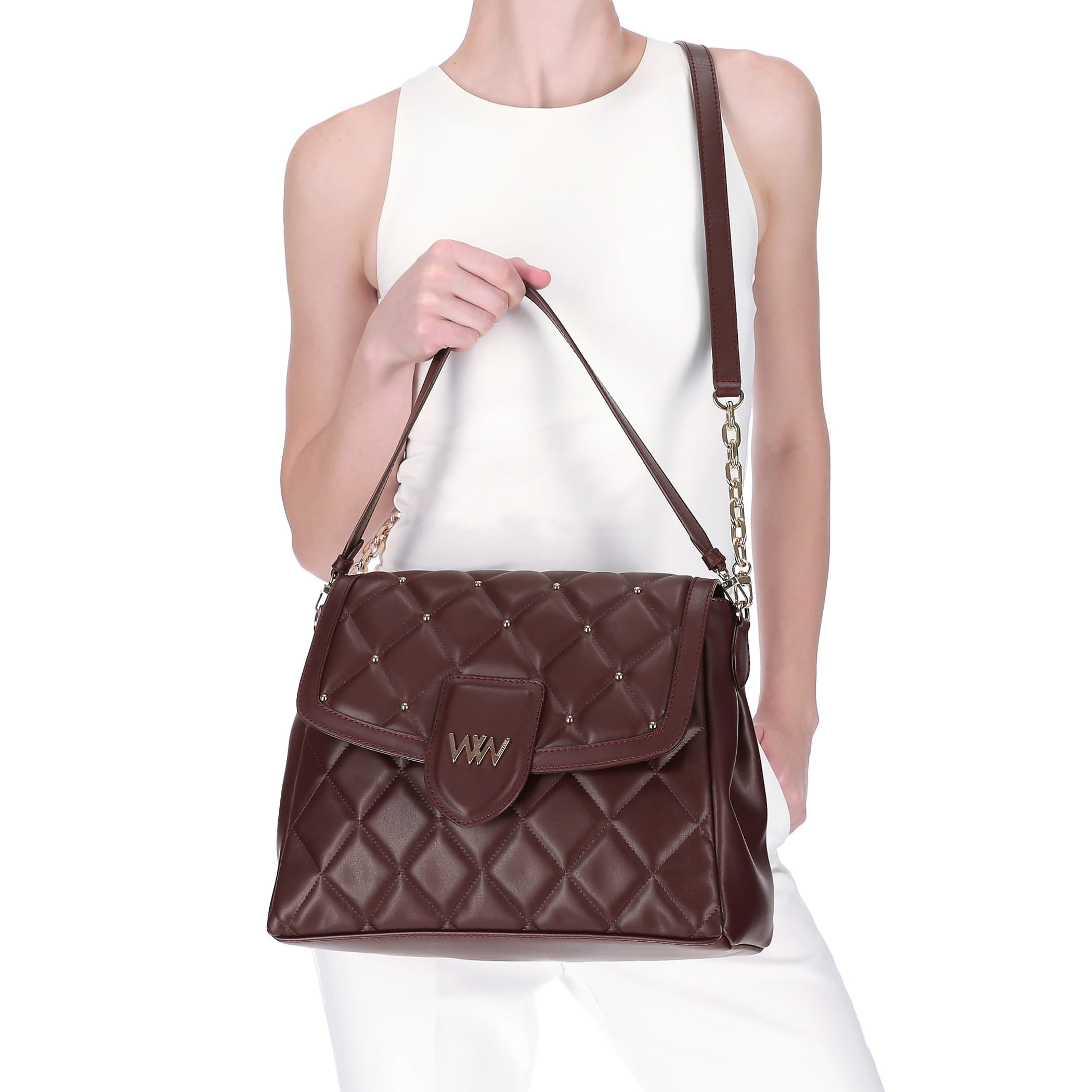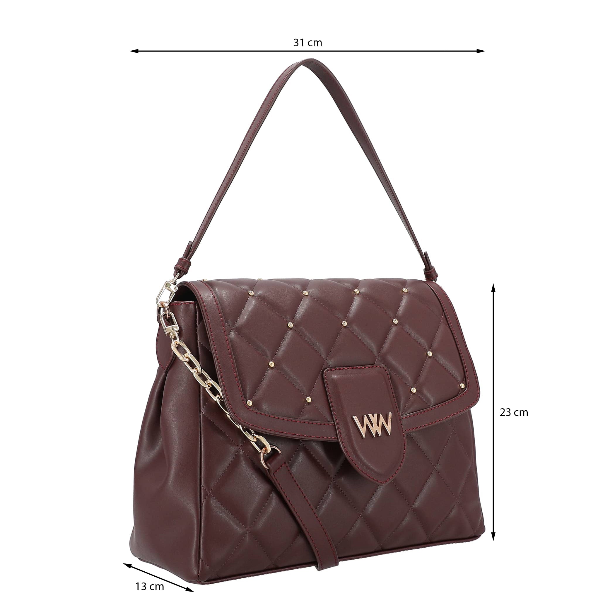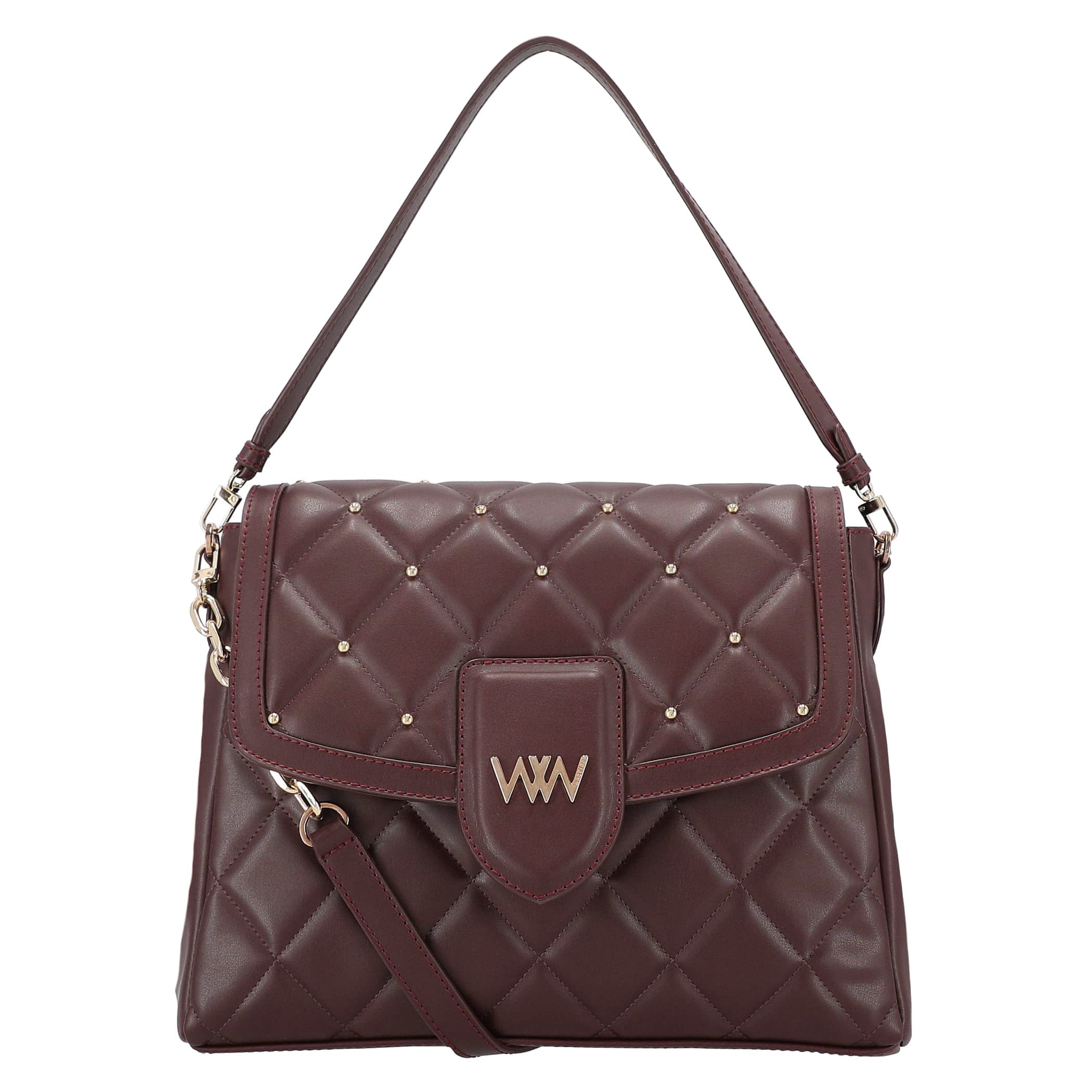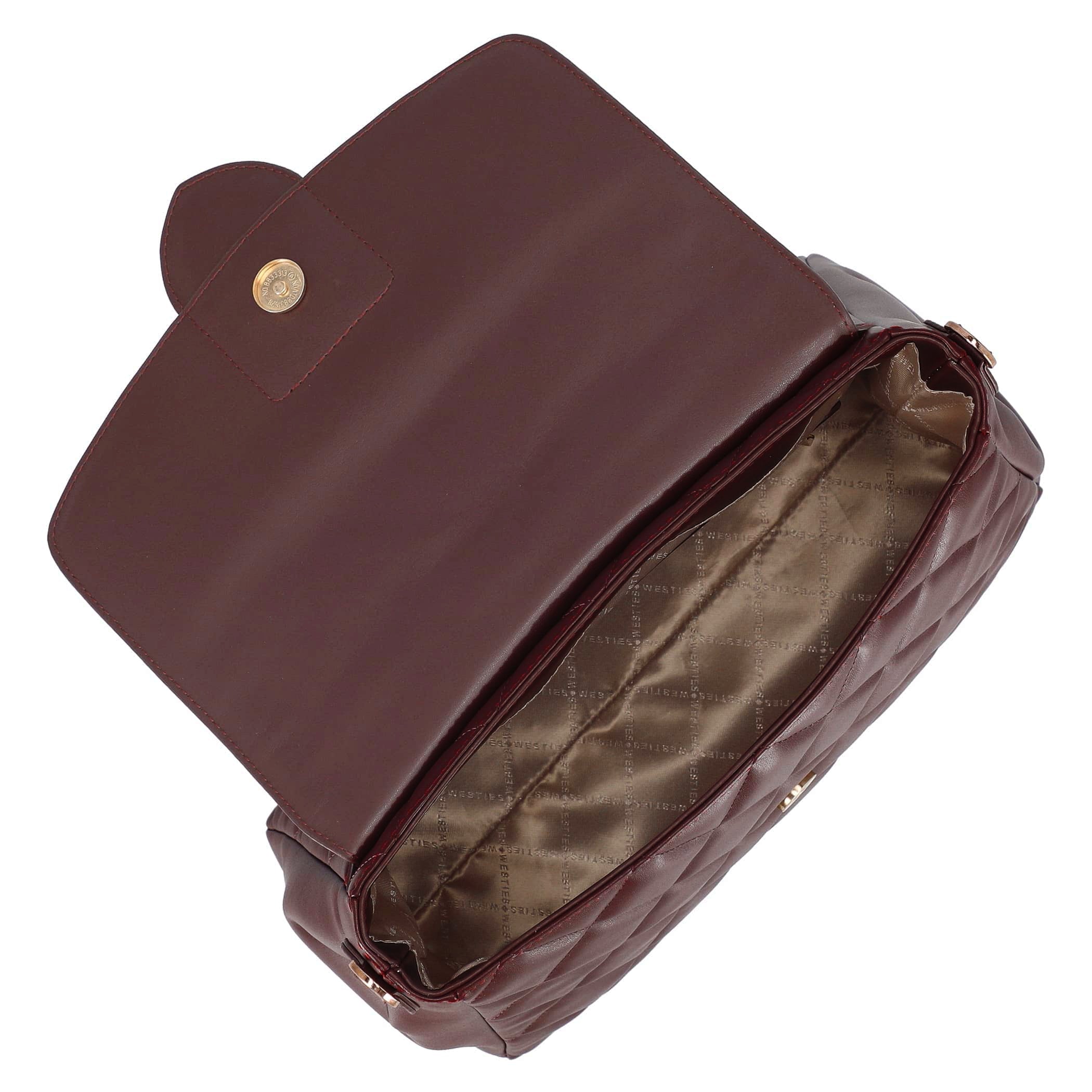Bolsa de mano Westies para mujer elaborado en material sintético con aplicación de bordado, asa ajustable desprendible, 3 compartimentos, estampado liso, forro textil, fijación de imán y textura lisa.