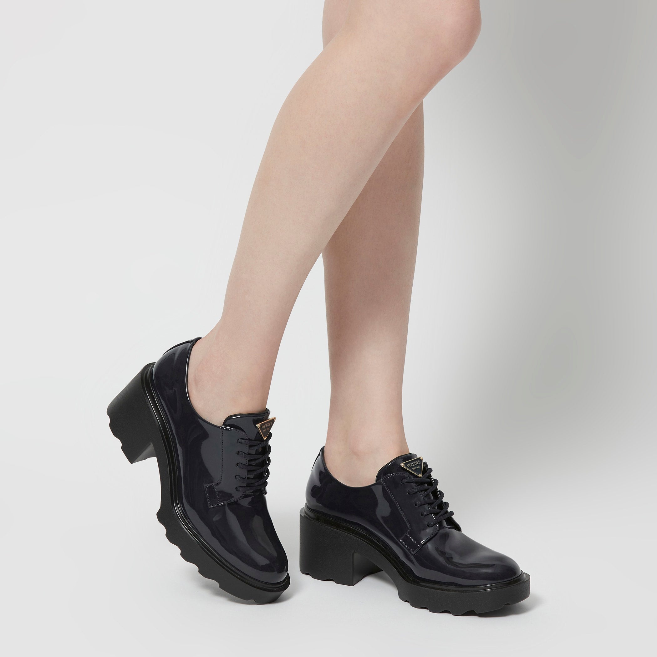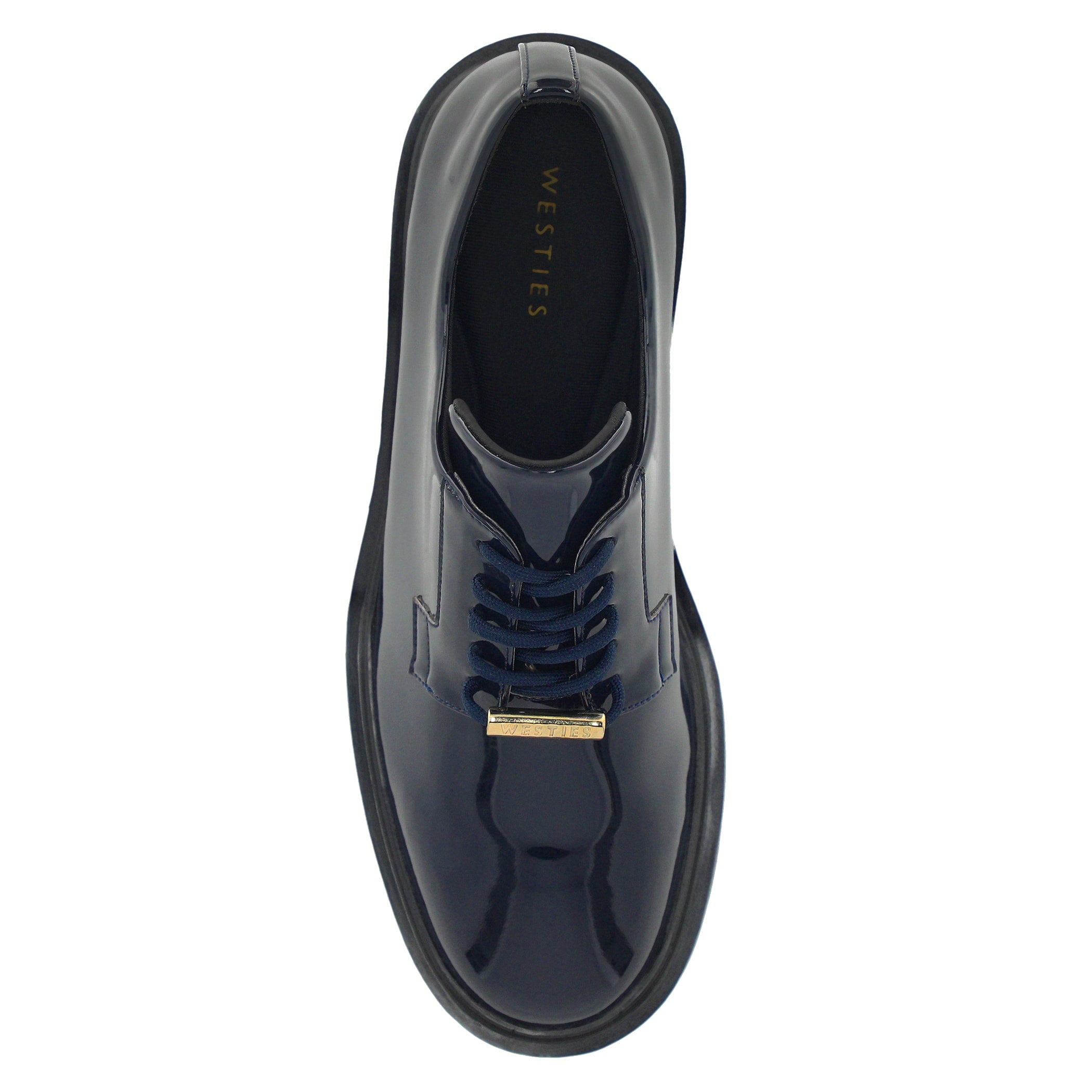 Zapato Westies tipo Oxford para mujer elaborado en material sintético acabado en charol con estampado liso, fijación de agujeta, forro textil, punta redonda, cuña flat, suela de inyección y textura lisa.
