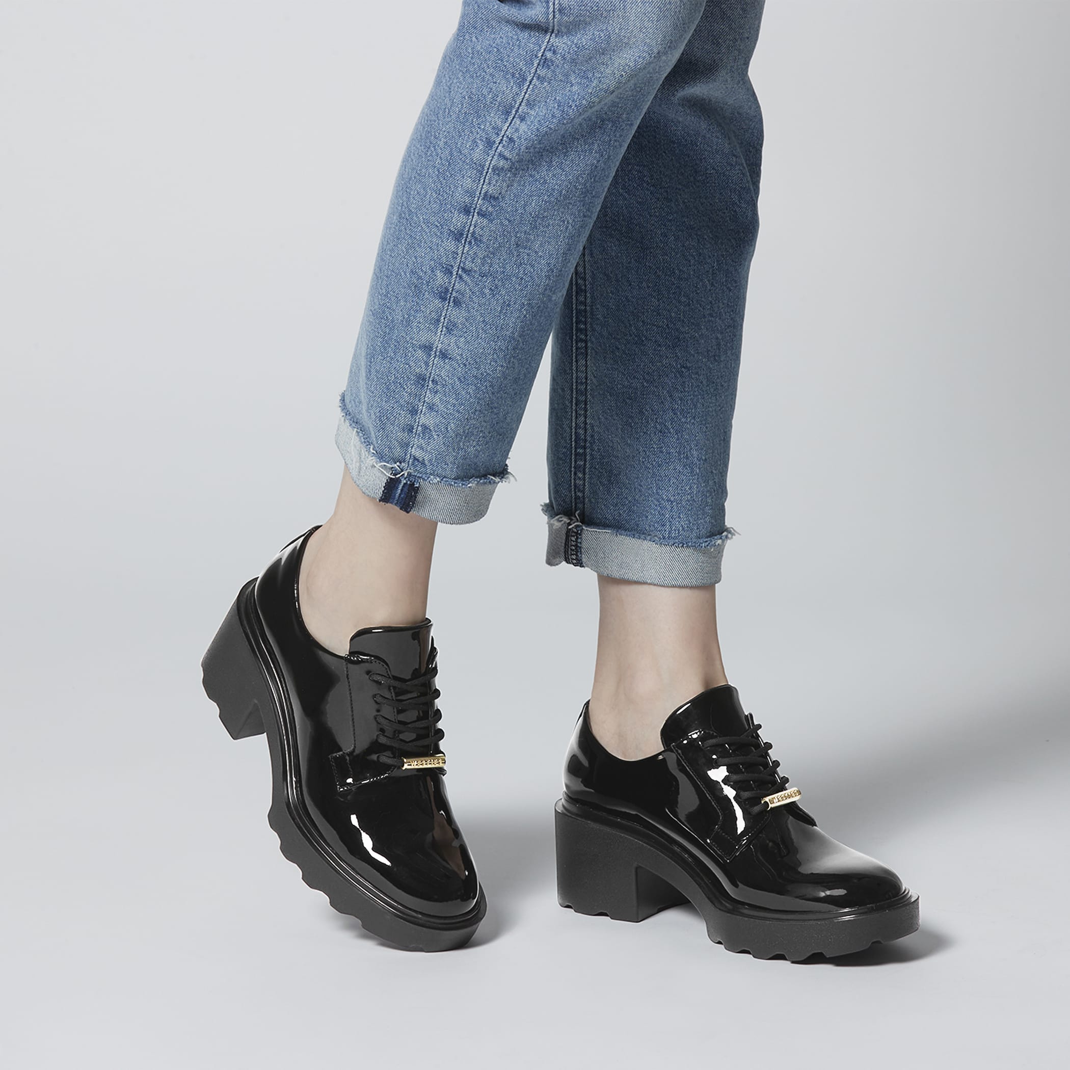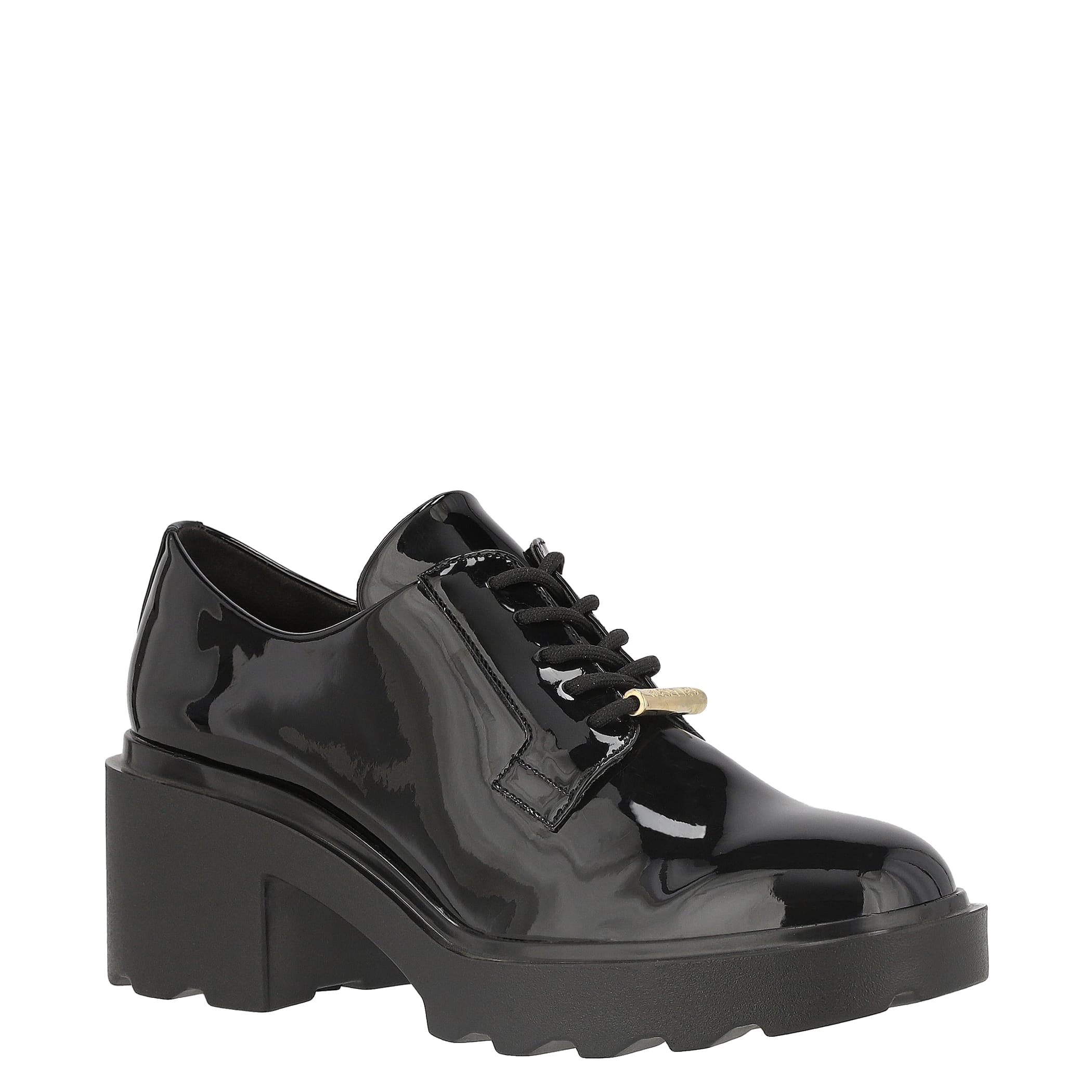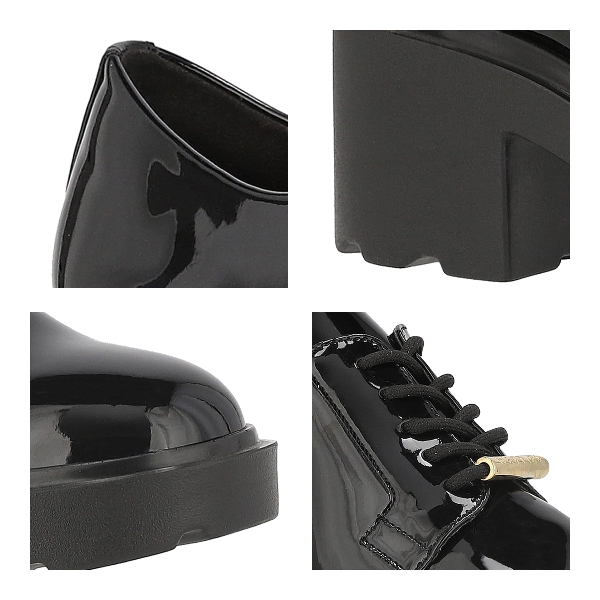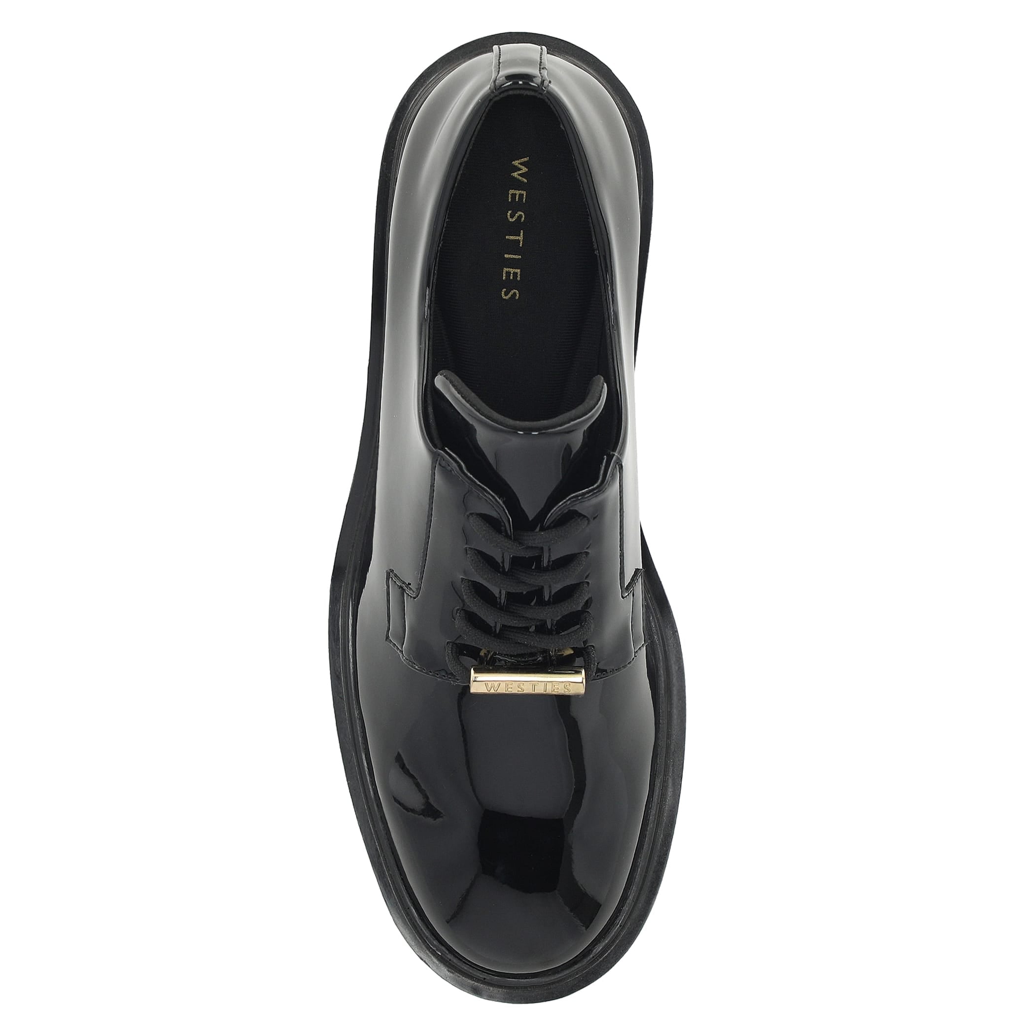 Zapato Westies tipo Oxford para mujer elaborado en material sintético acabado en charol con estampado liso, fijación de agujeta, forro textil, punta redonda, cuña flat, suela de inyección y textura lisa.