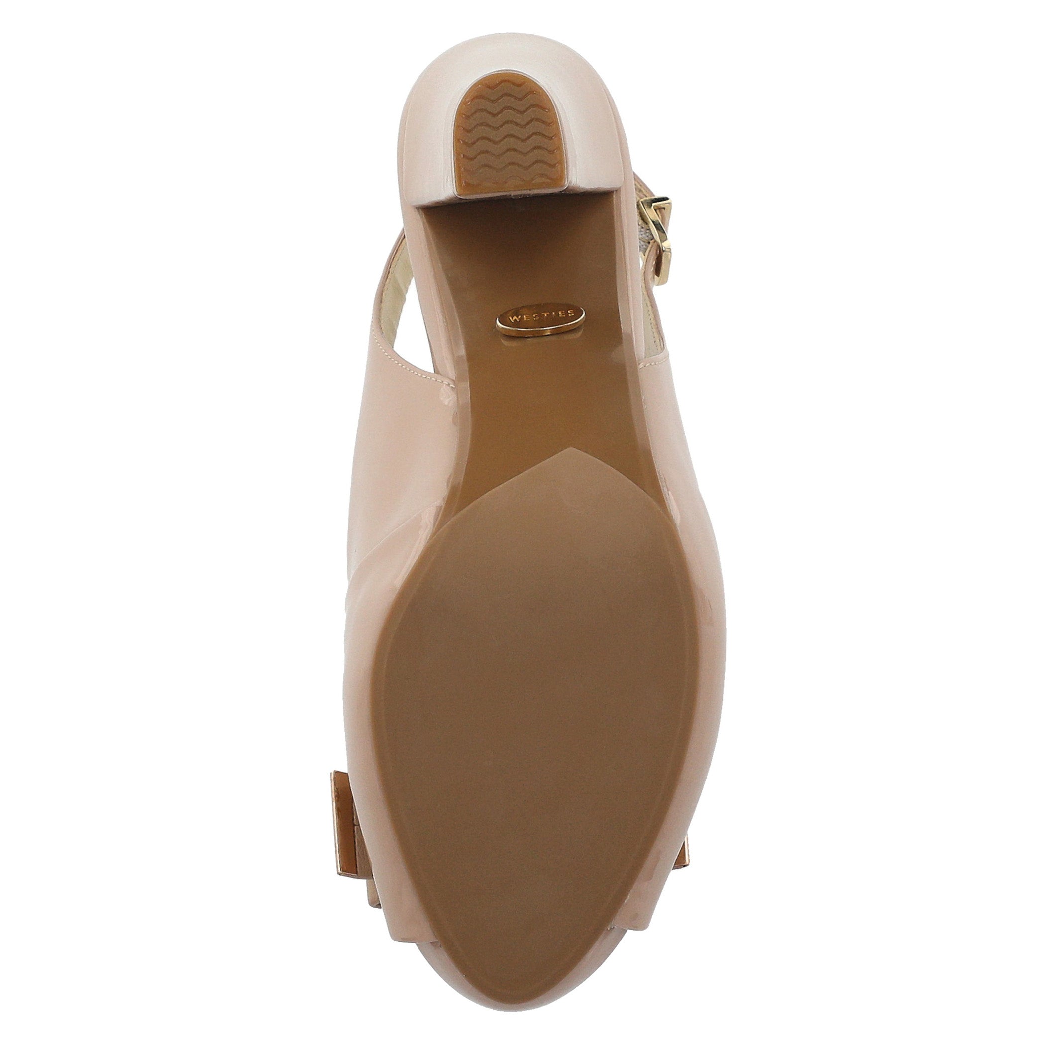 Estas sandalias Westies destacan por su diseño elegante y femenino que las convierte en un imprescindible dentro de cualquier guardarropa. Elaboradas en material sintético con acabado tipo charol, su brillo sutil aporta un toque sofisticado y moderno. El detalle de moño al frente añade un acento delicado y distintivo, mientras que las aberturas en talón y punta brindan frescura y comodidad. Su tacón alto estiliza la figura y la plantilla de piel proporciona mayor confort, haciéndolas ideales para complementar looks formales o elevar atuendos casuales con un aire refinado.