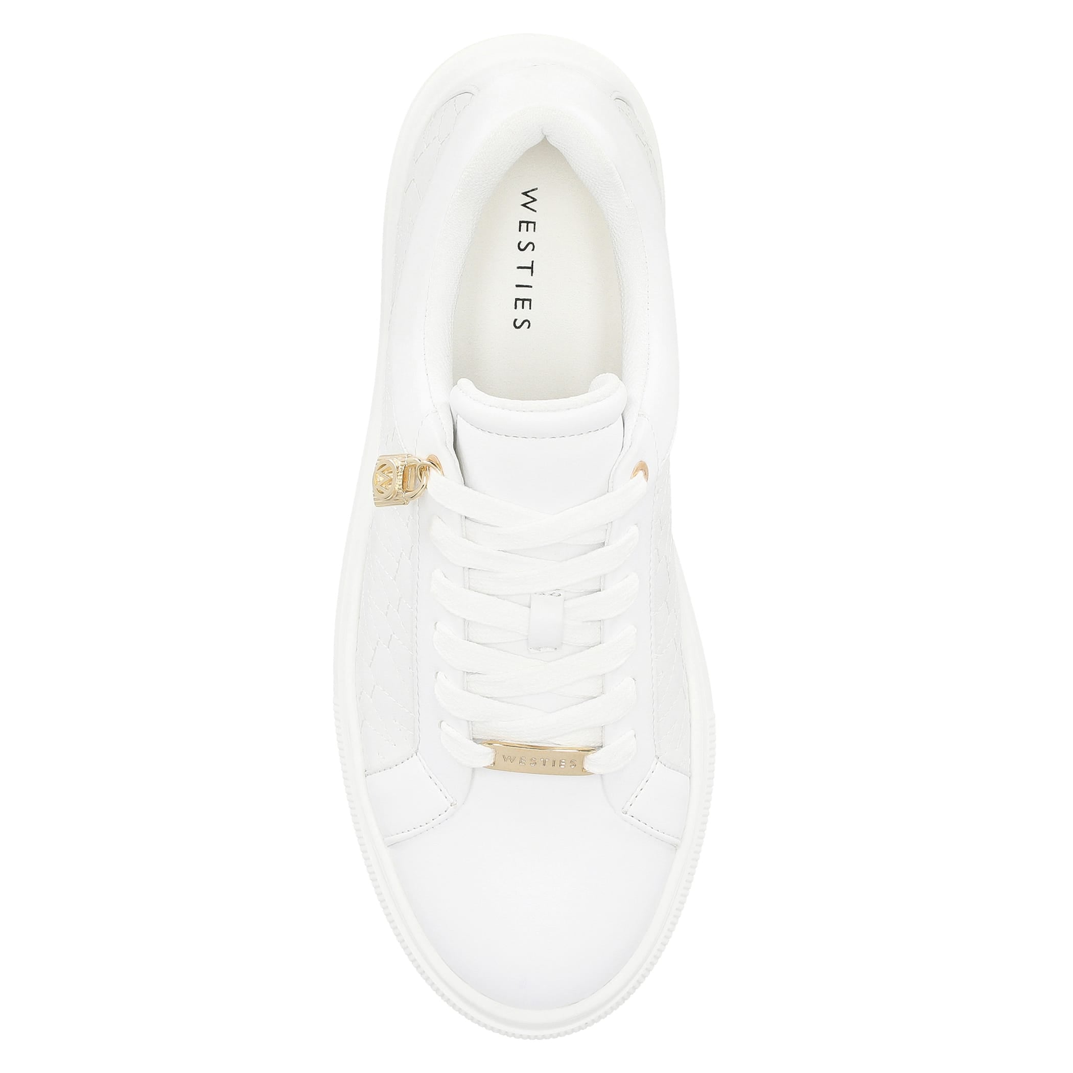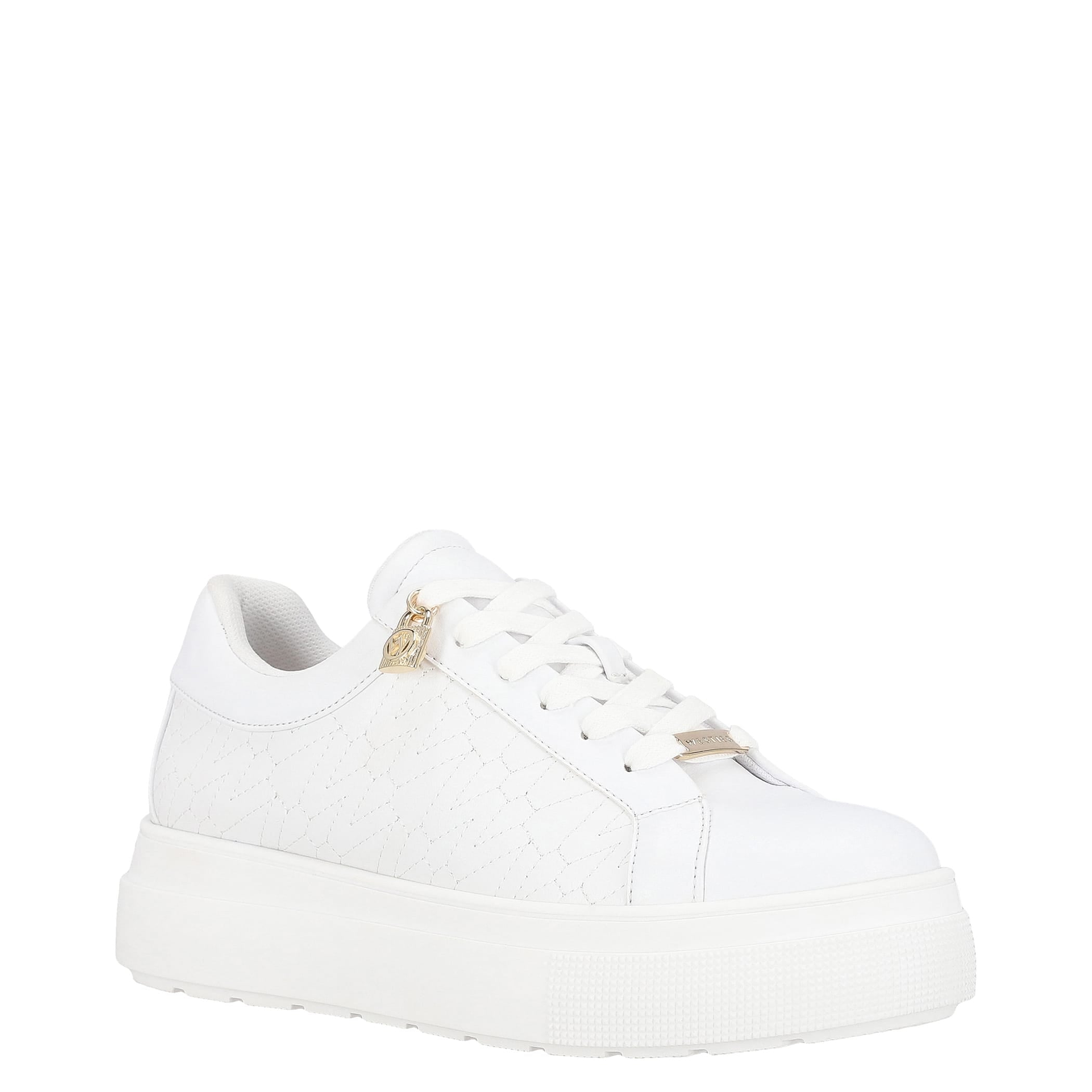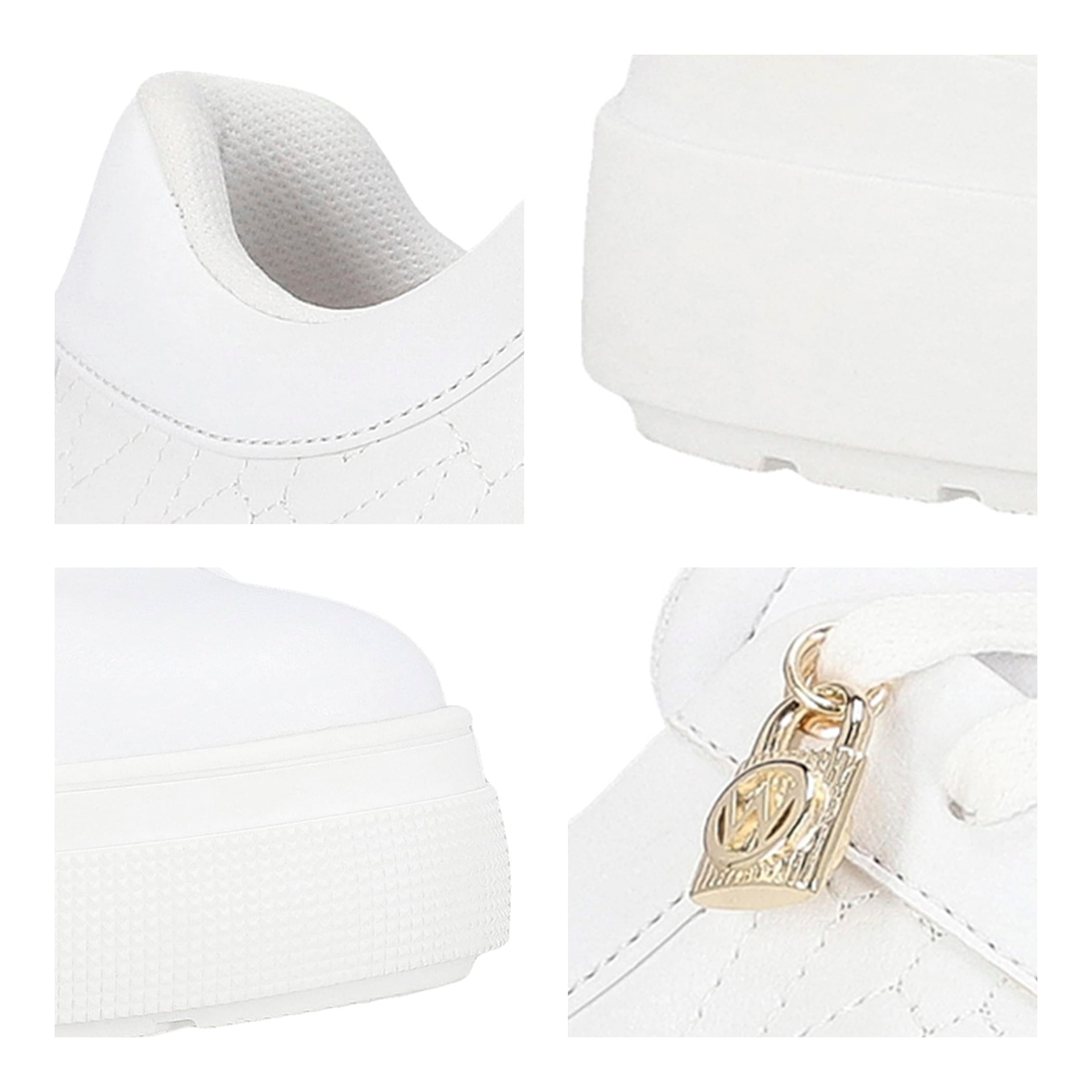 Estos tenis Westies para mujer elaborados en material sintético monogram, ofrecen un diseño moderno y en tendencia, con un estampado liso que añade un toque de sofisticación. La fijación de agujeta y la punta redonda garantizan un ajuste cómodo, mientras que su plataforma de 3 cm brinda altura adicional sin sacrificar la comodidad. Con una textura lisa y cuña flat, son ideales para complementar cualquier look casual.