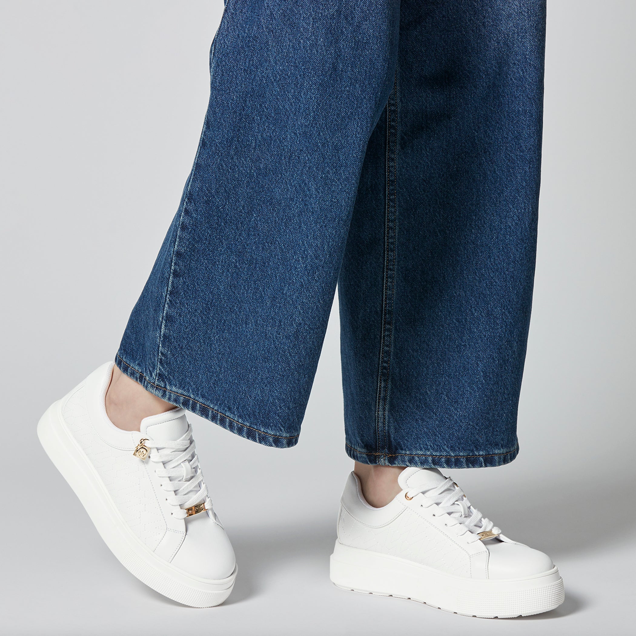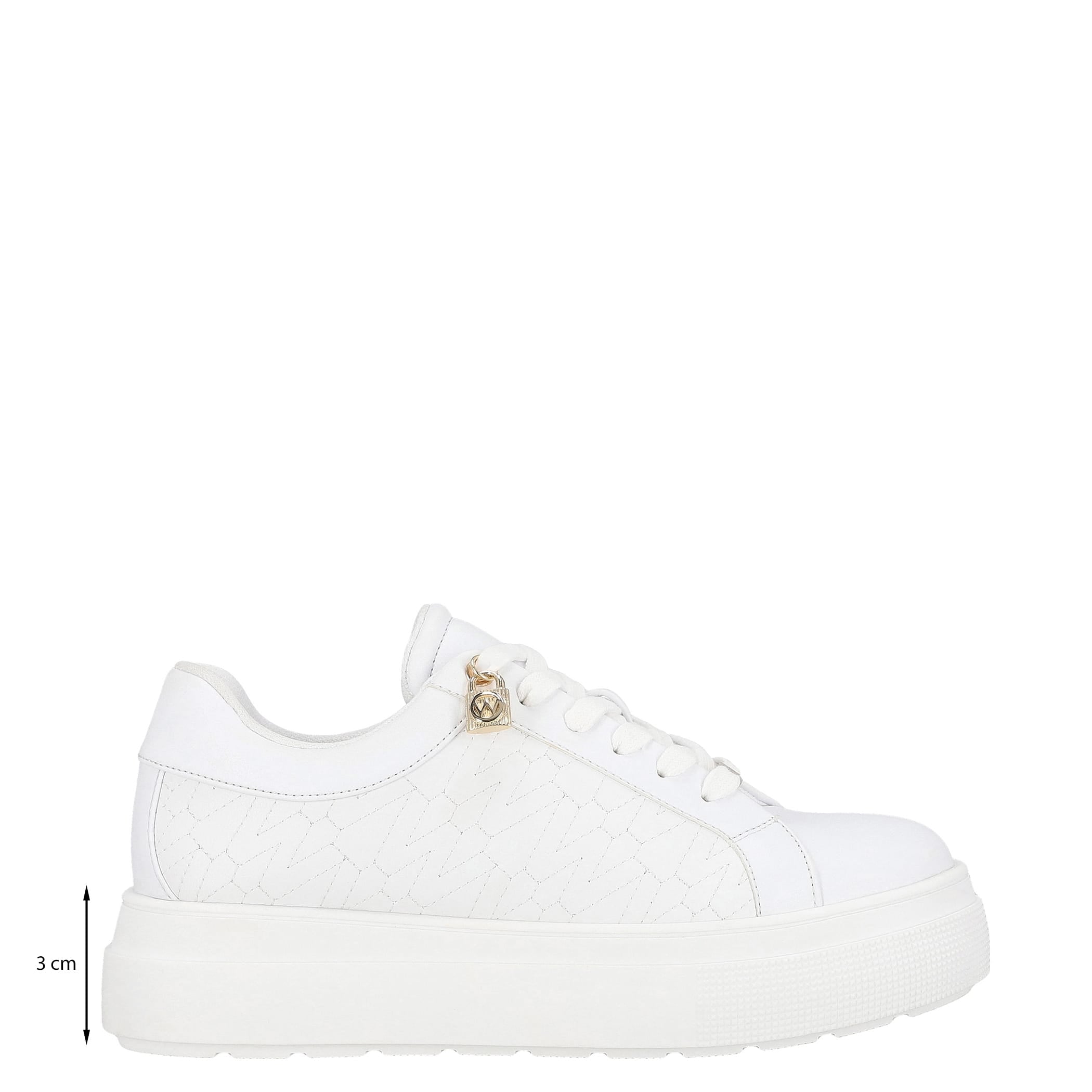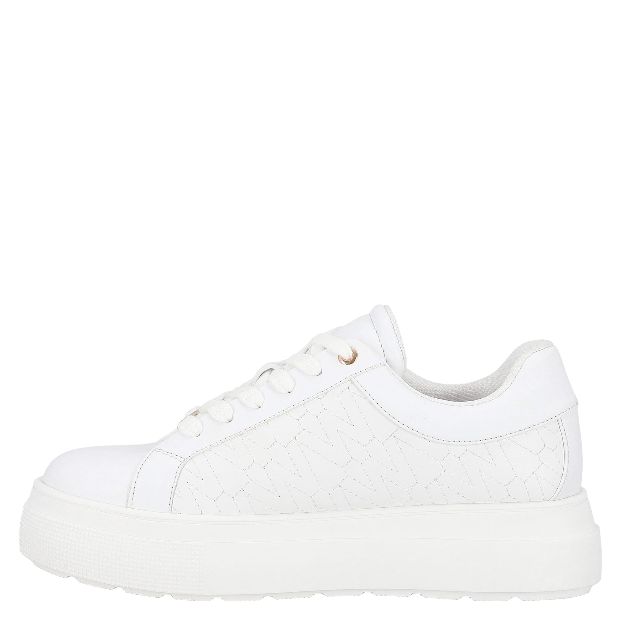 Estos tenis Westies para mujer elaborados en material sintético monogram, ofrecen un diseño moderno y en tendencia, con un estampado liso que añade un toque de sofisticación. La fijación de agujeta y la punta redonda garantizan un ajuste cómodo, mientras que su plataforma de 3 cm brinda altura adicional sin sacrificar la comodidad. Con una textura lisa y cuña flat, son ideales para complementar cualquier look casual.