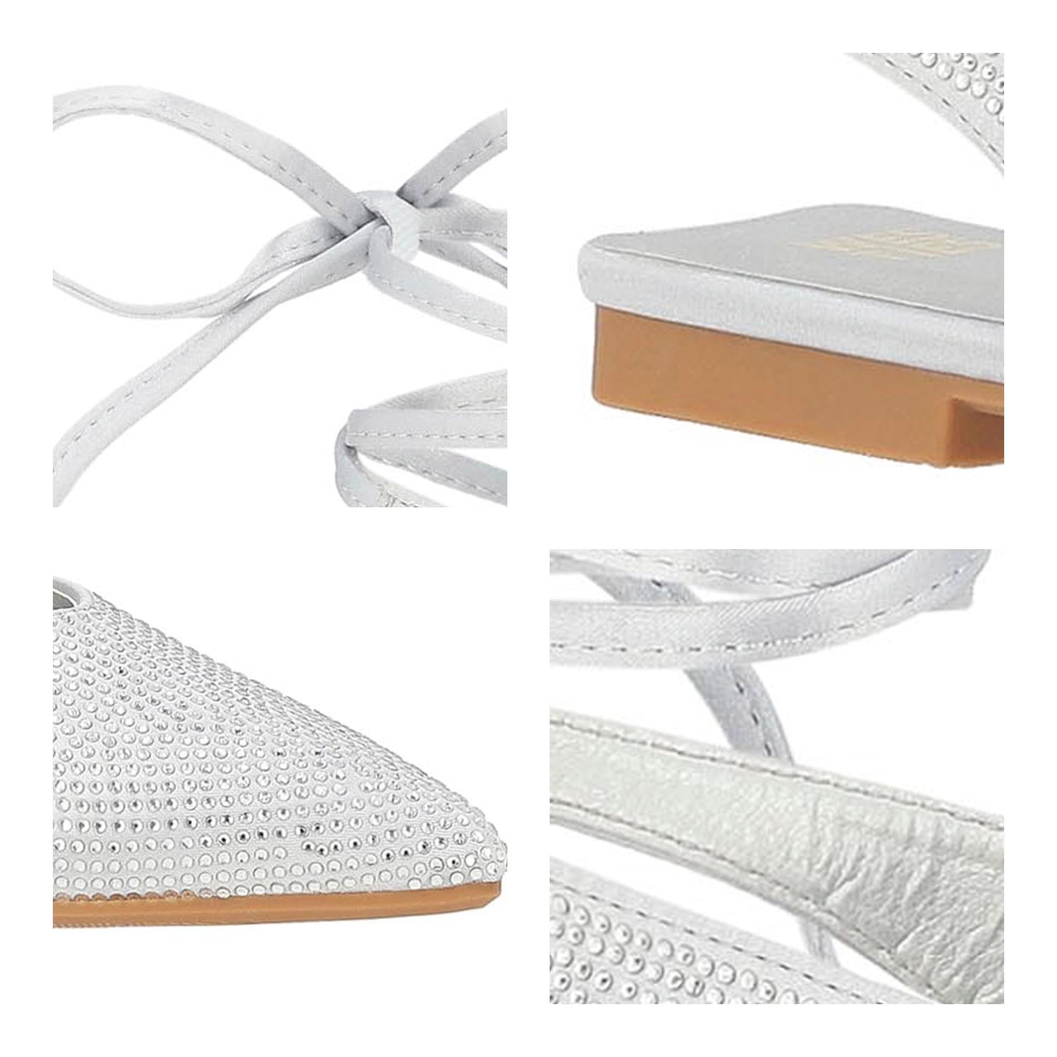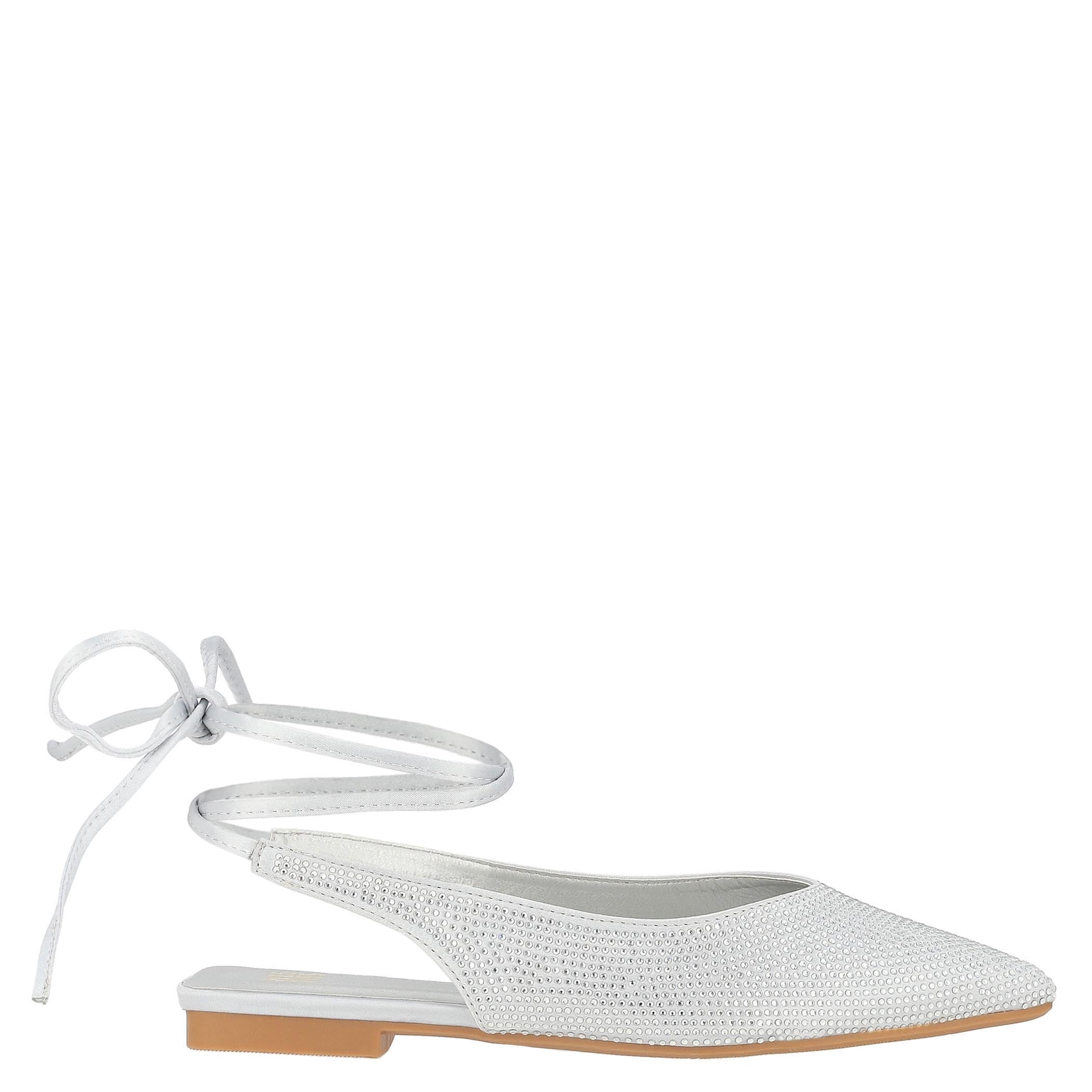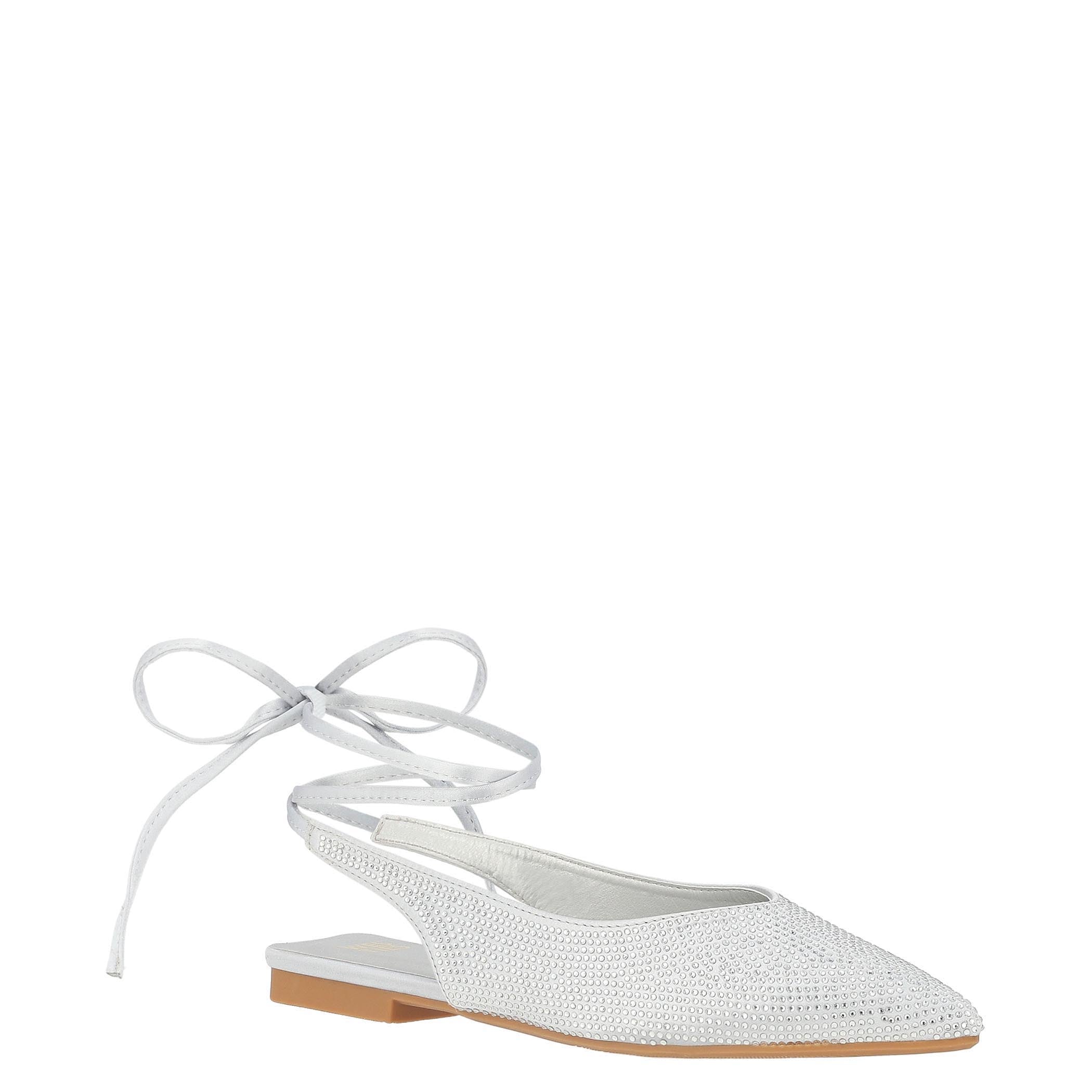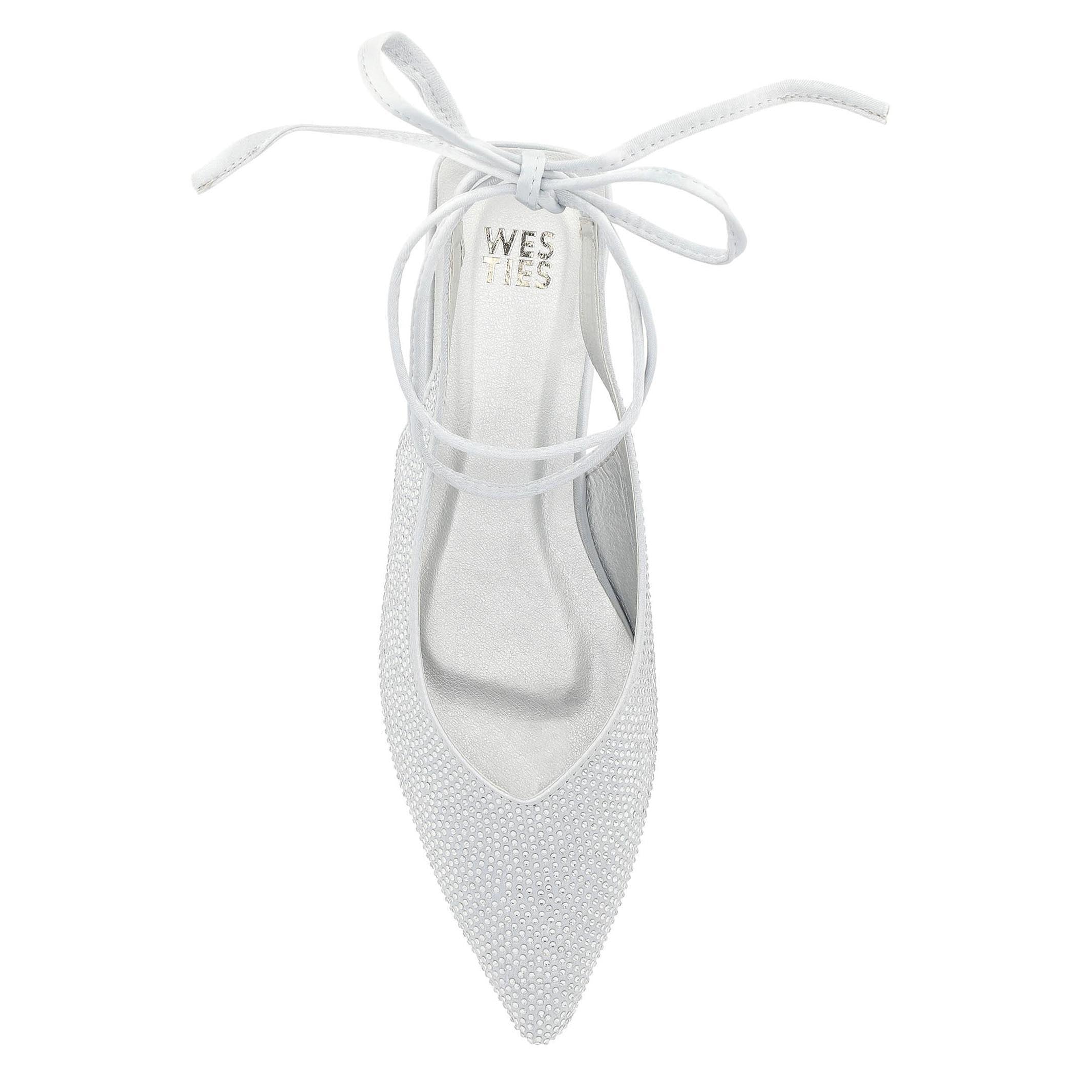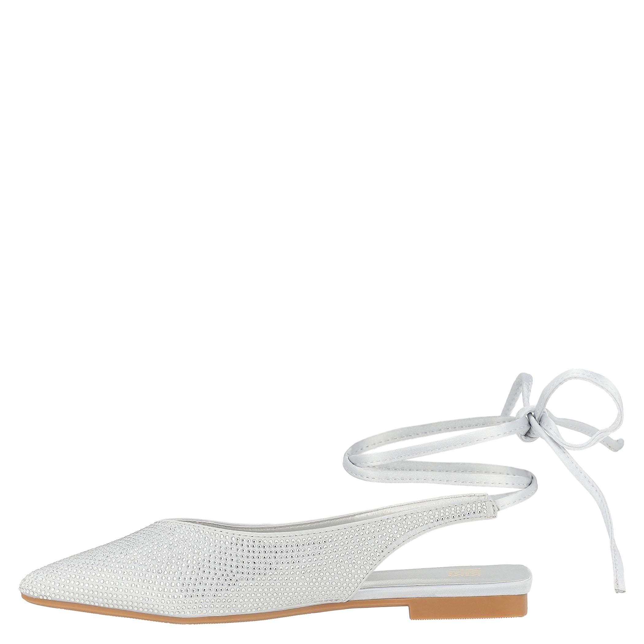 Ballerina Westies para mujer elaborado en material textil con aplicación de pedrería, estampado liso, fijación abierta, puntal, forro sintético, suela de inyección, cuña flat y textura lisa.