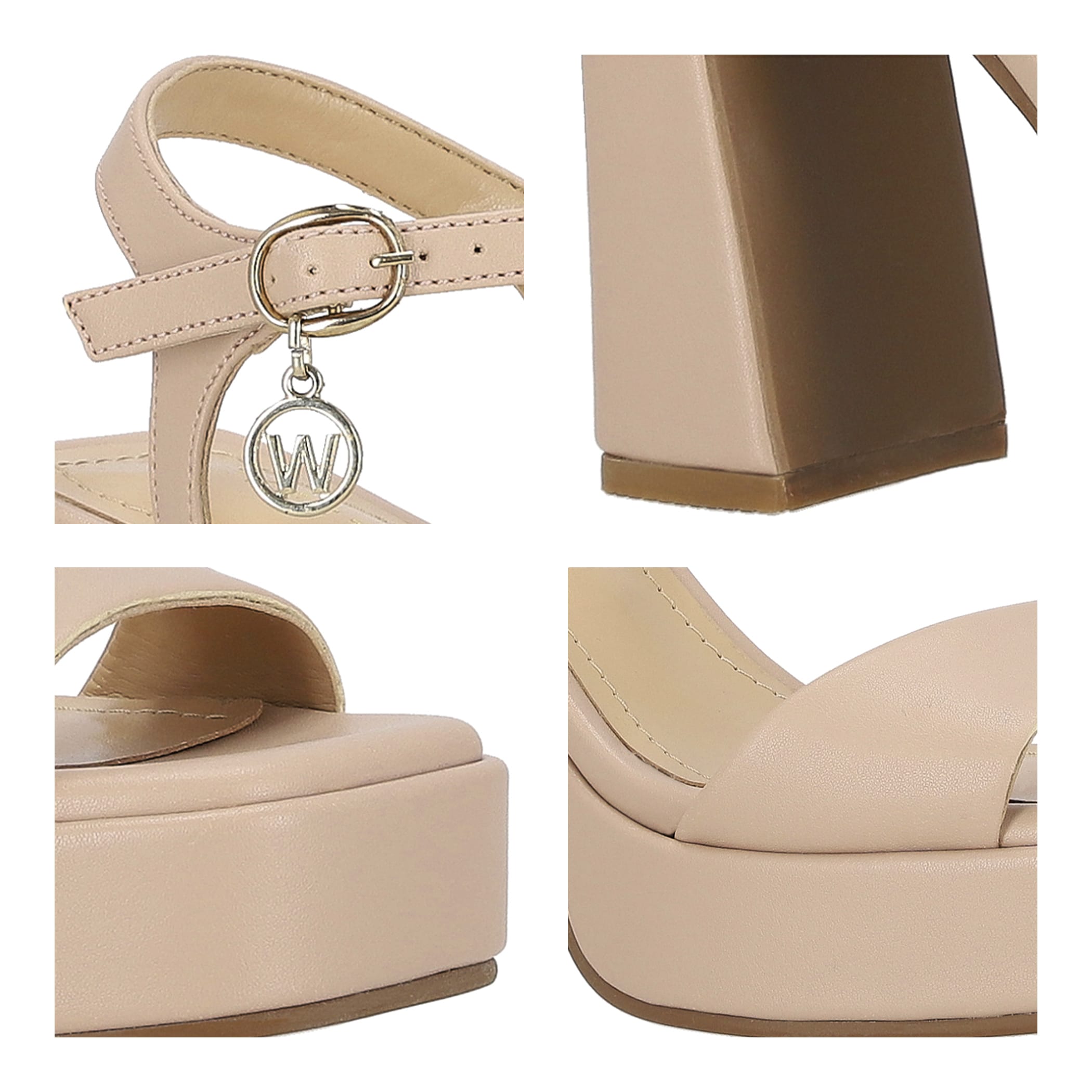 Sandalia Westies para mujer elaborado en material sintético con fijación de hebilla, punta cuadrada, textura lisa, forro sintético, cuña alta y suela sintética.