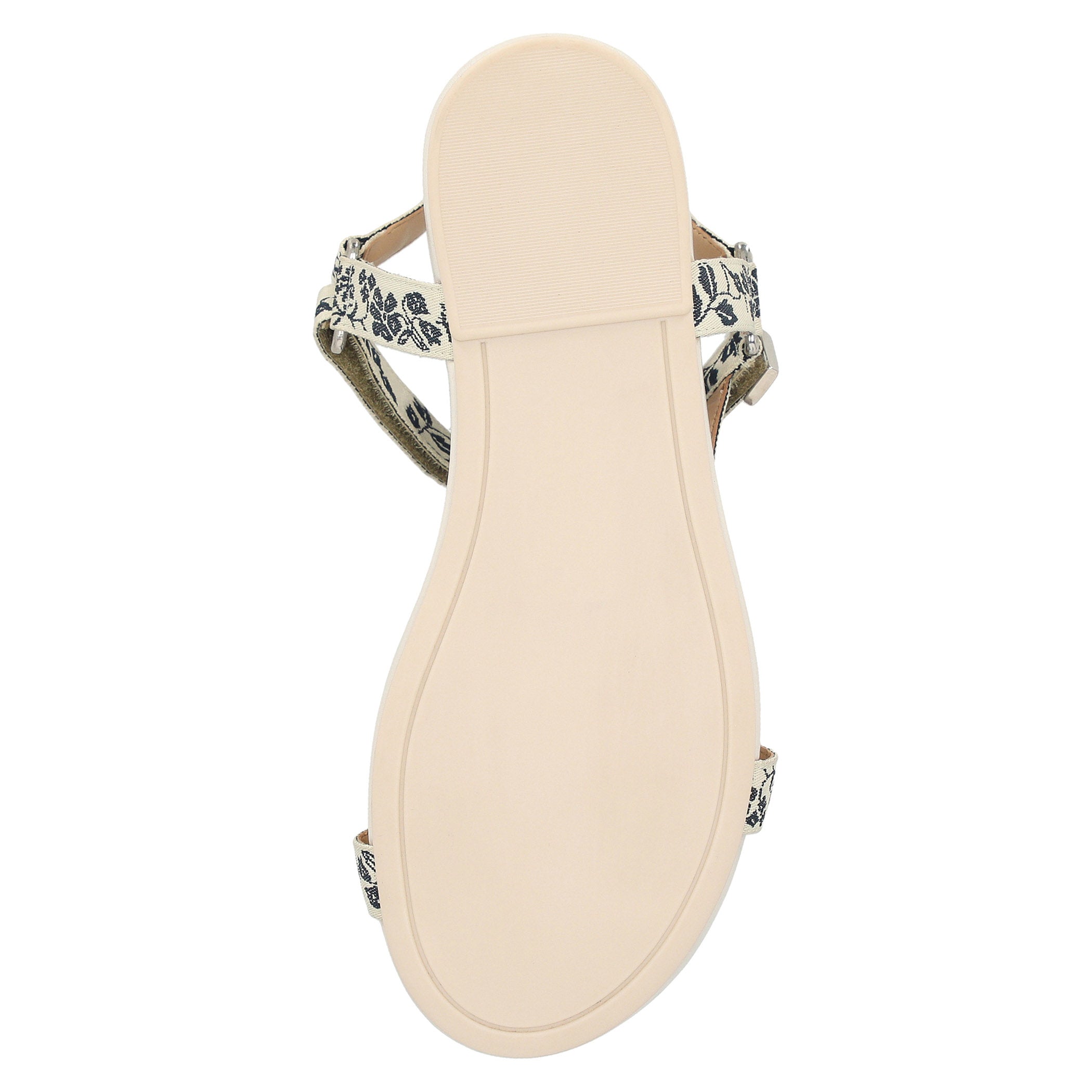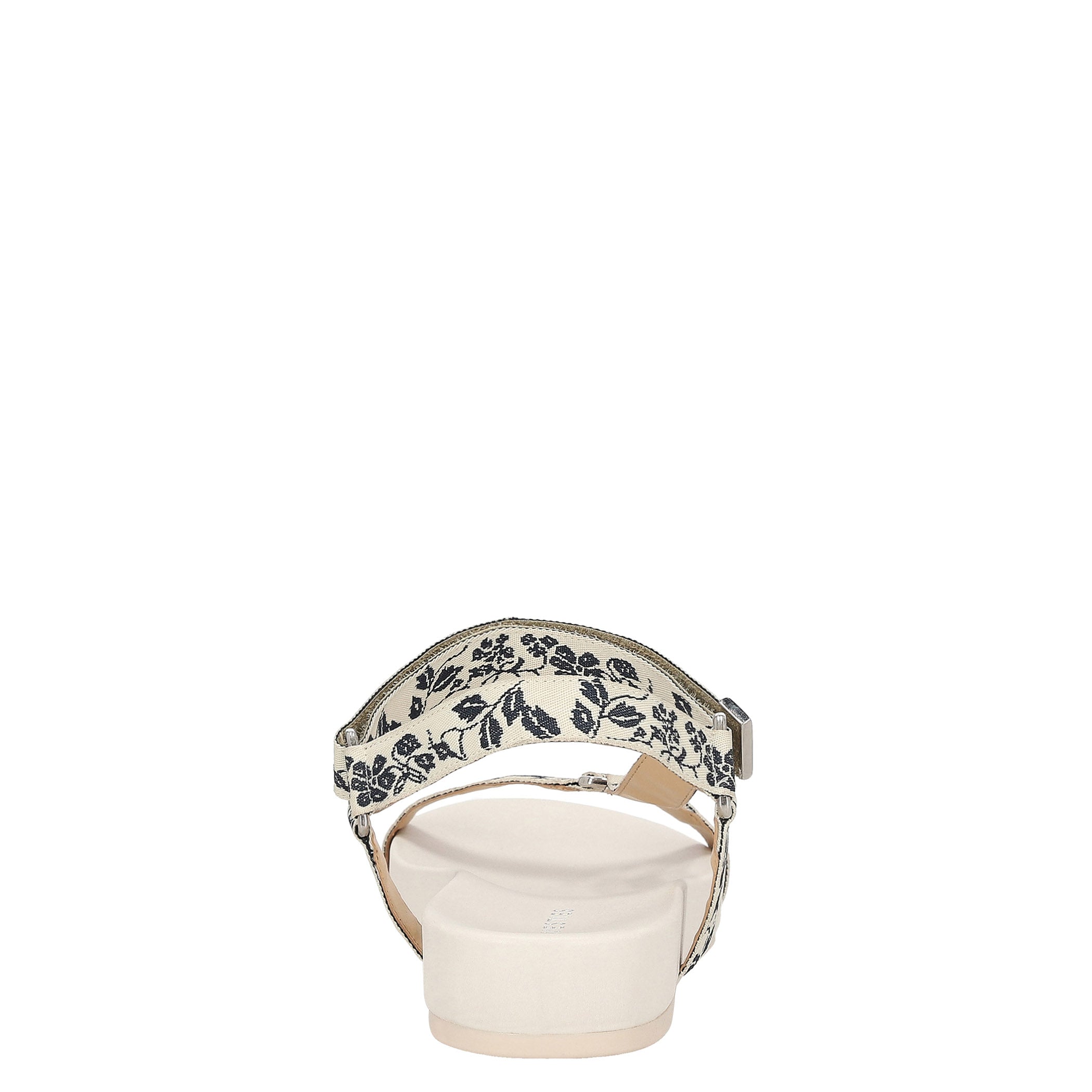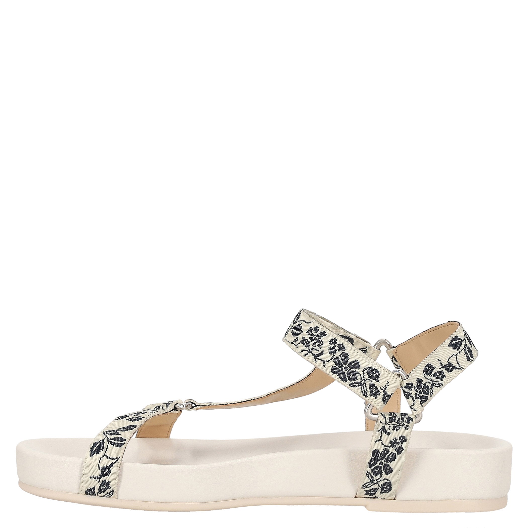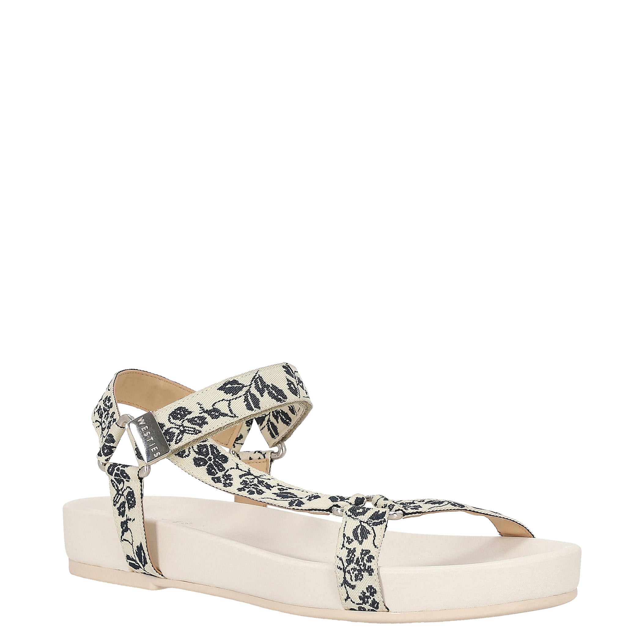 Sandalia Westies para mujer elaborada en material textil con estampado gráfico, fijación de velcro, cuña flat, punta redonda y textura lisa.