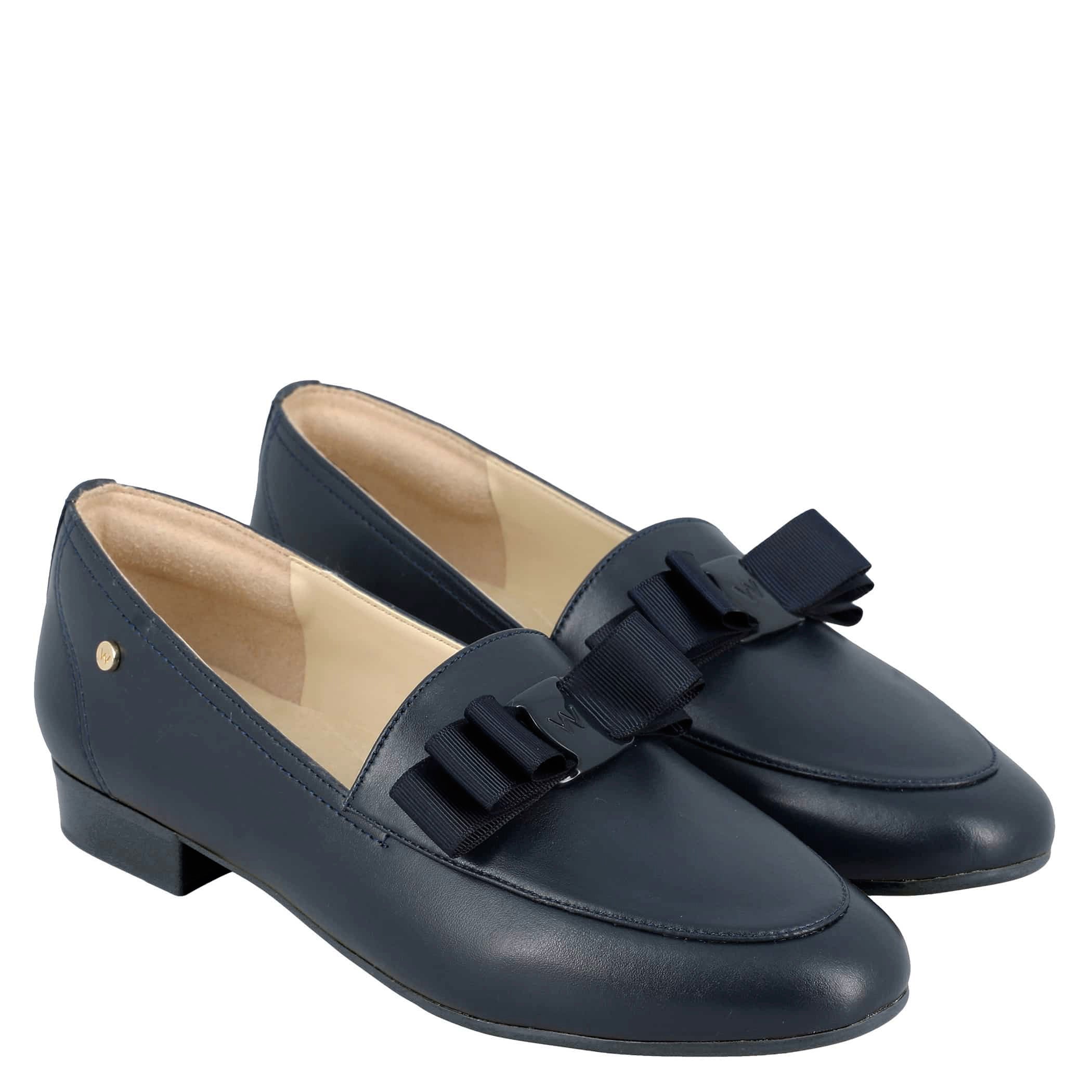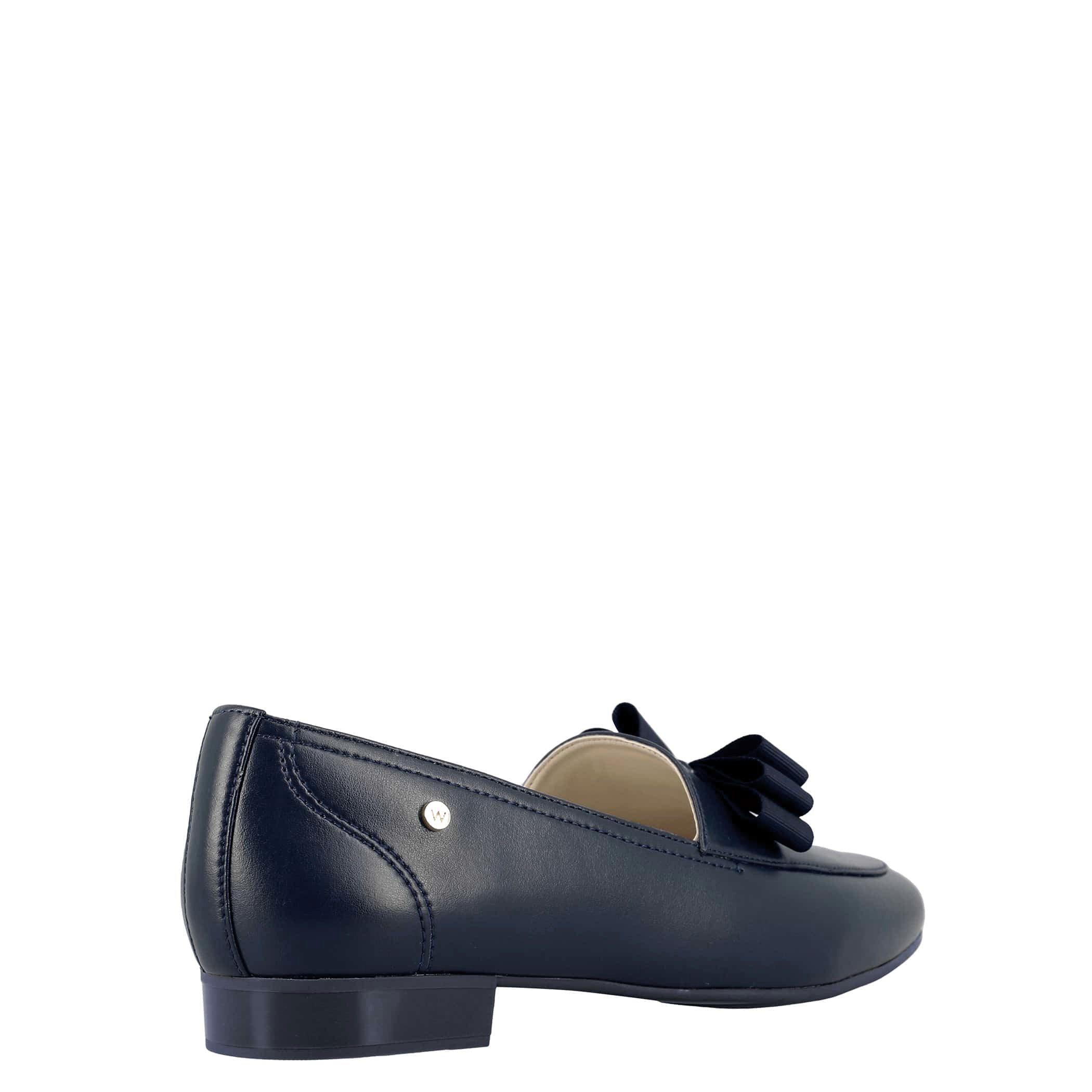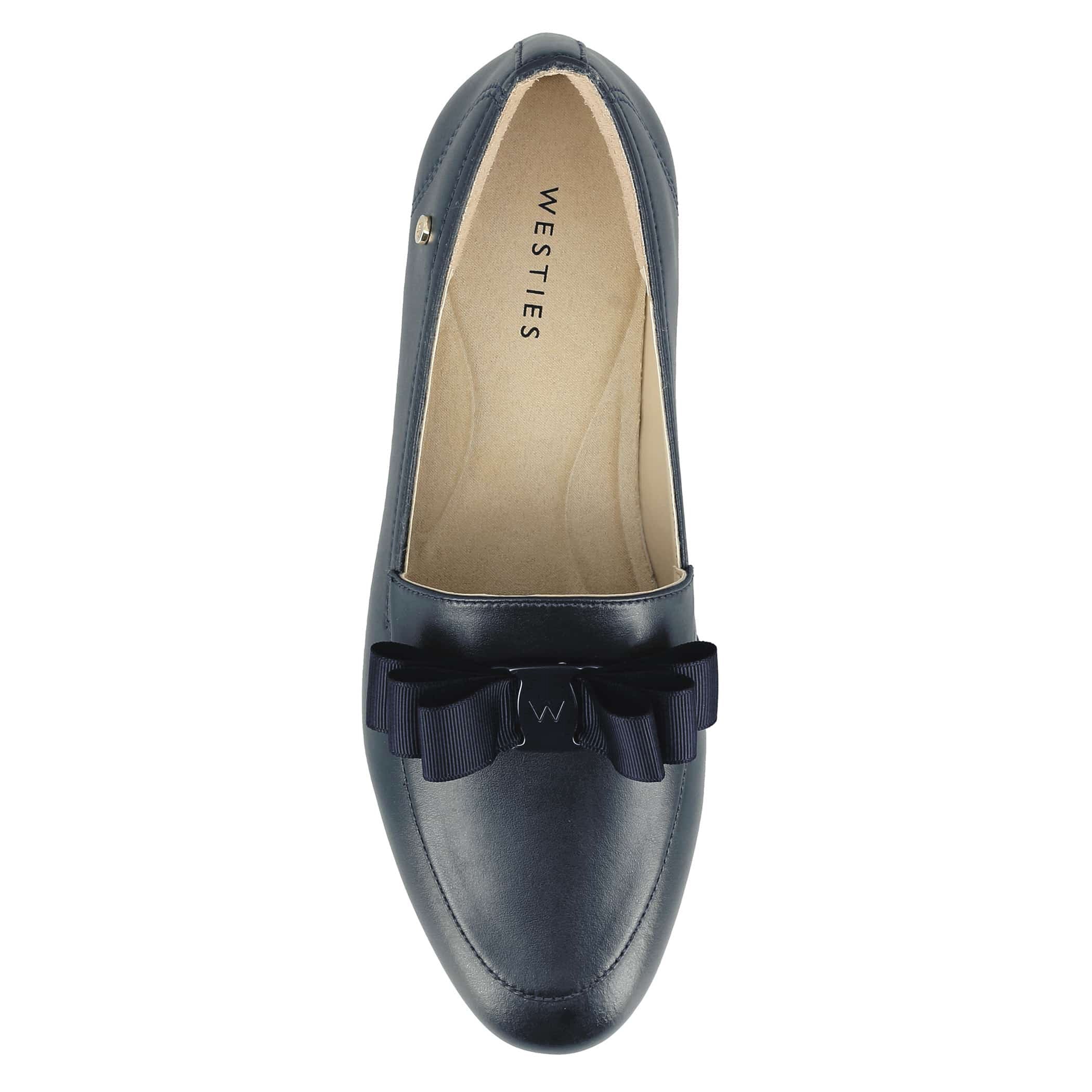 Zapato tipo mocasin Westies para mujer elaborado en material sintético con aplicación de moño, estampado liso, fijación 1 tiempo, punta medio puntal, forro de piel, textura lisa y altura de tacón 1.5 cm