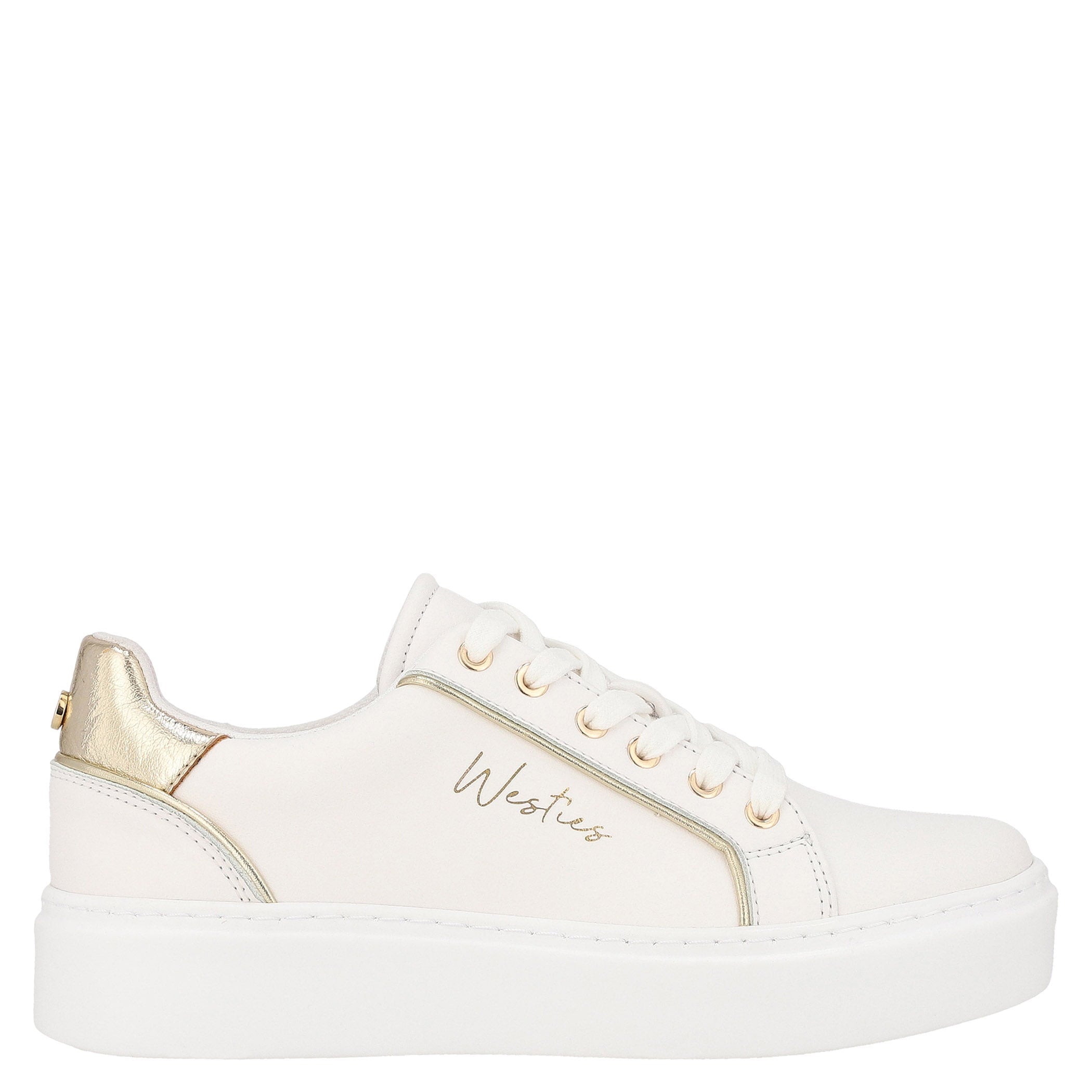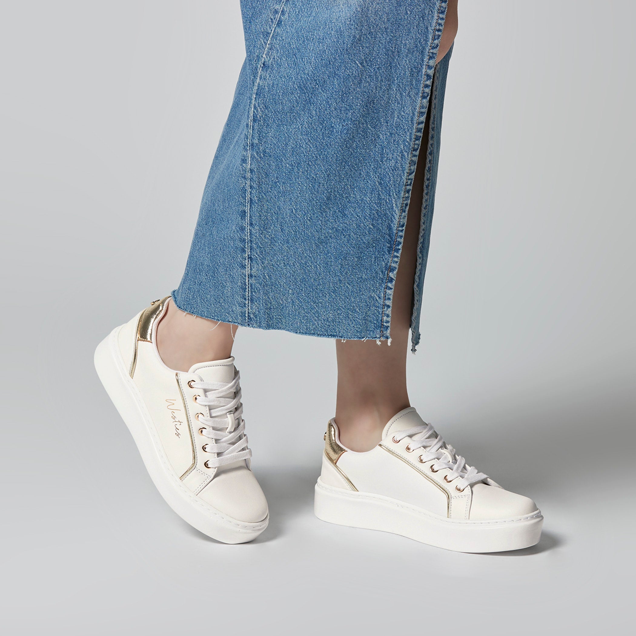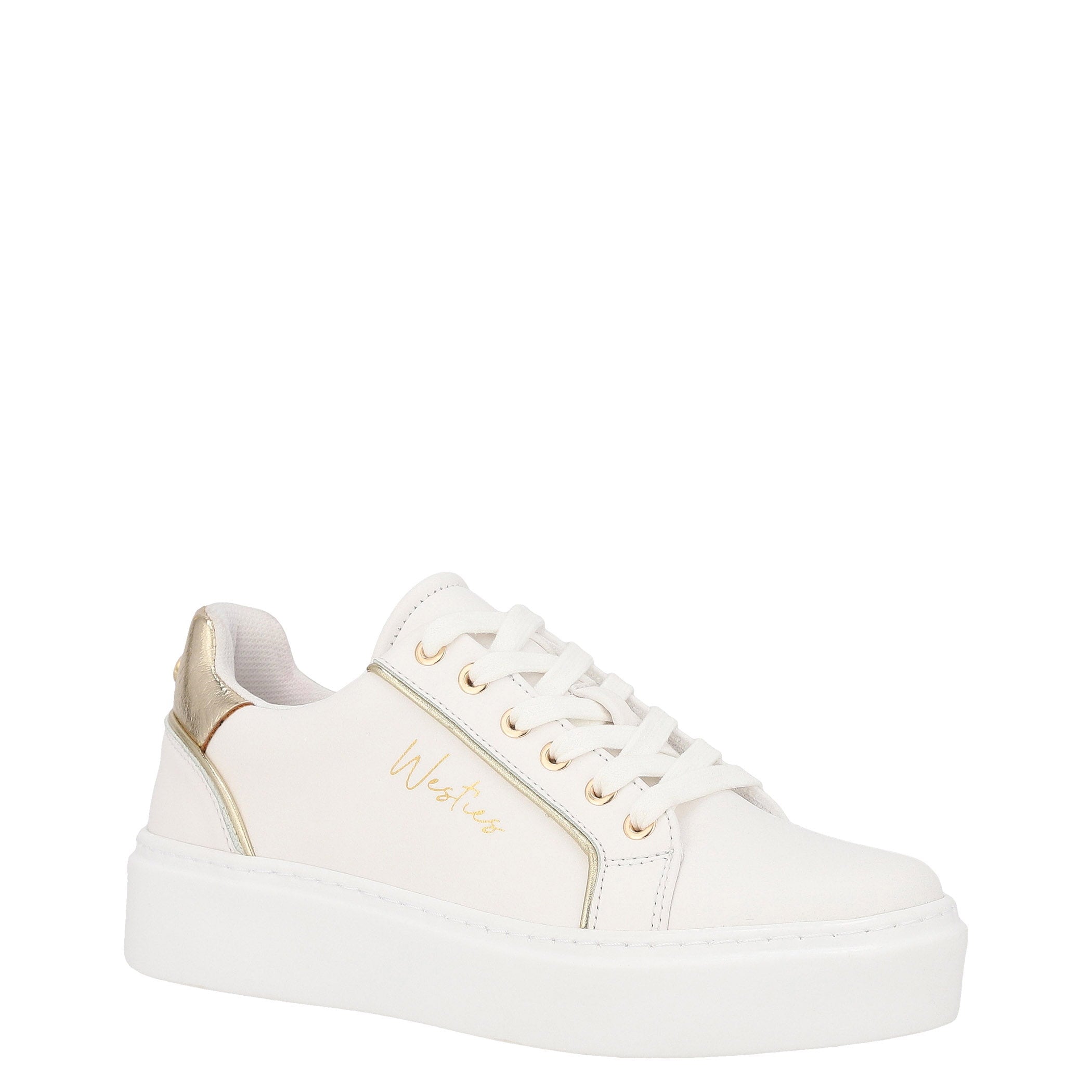 Tenis Westies para mujer elaborado en material sintético con estampado liso, fijación de agujeta, punta redonda, textura lisa, cuña flat y suela de inyección.
