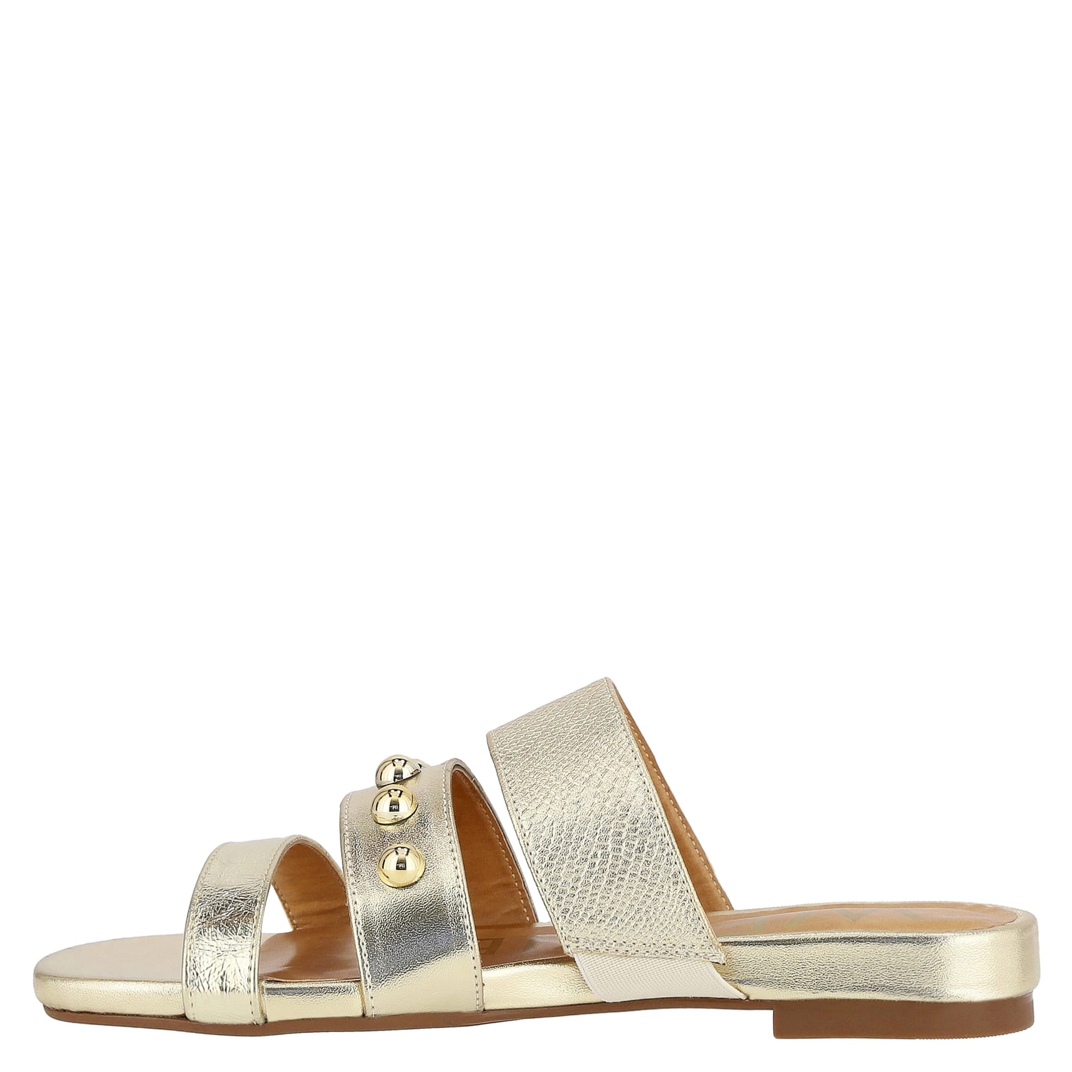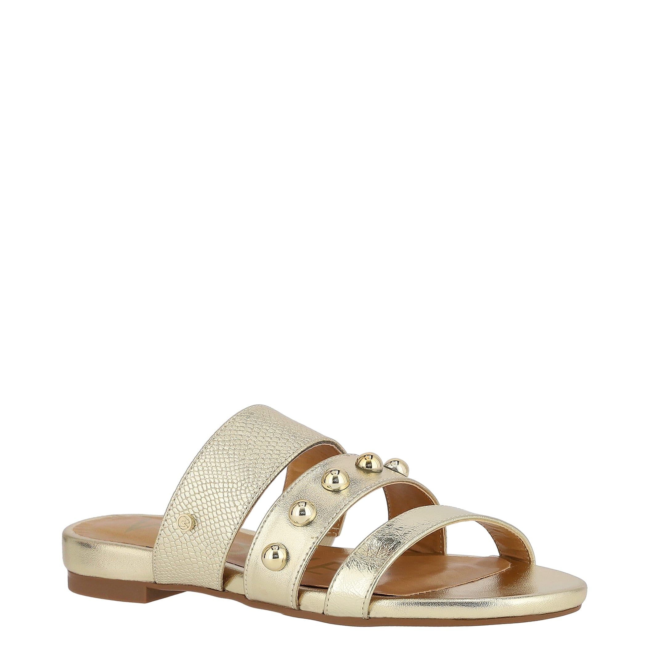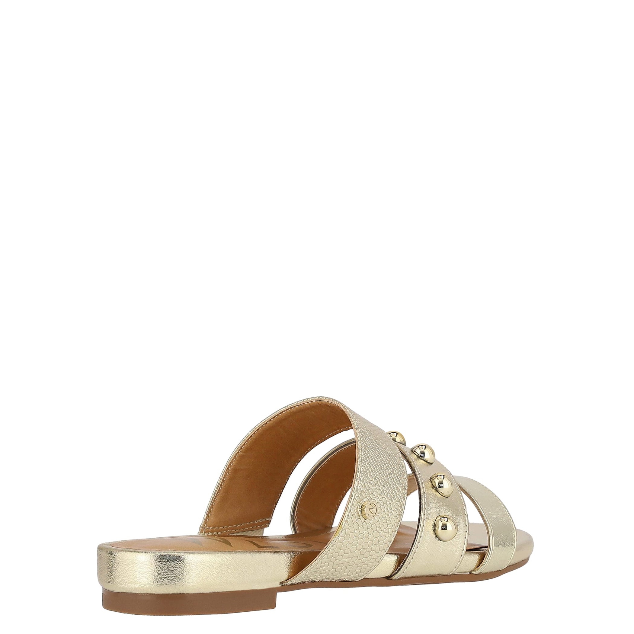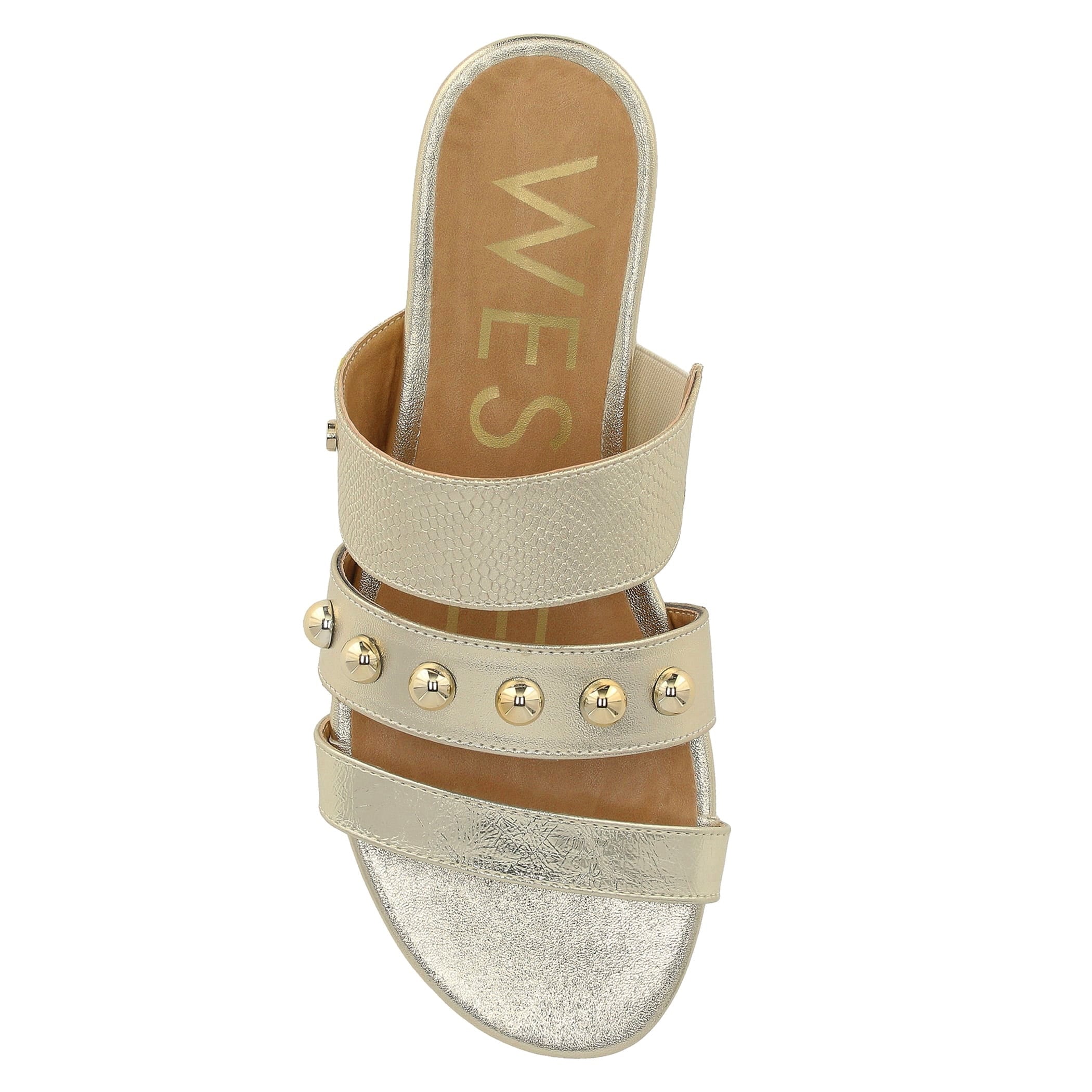 Sandalia Westies para mujer elaborado en material sintético con aplicación estoperol, estampado liso, forro sintético, suela de inyección, fijación abierto, punta redonda, textura pitón, con una altura de tacón 2 cm.