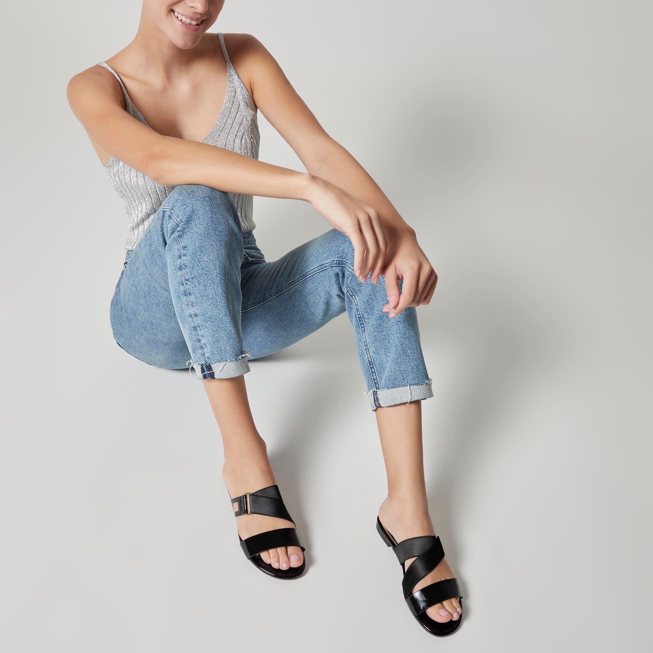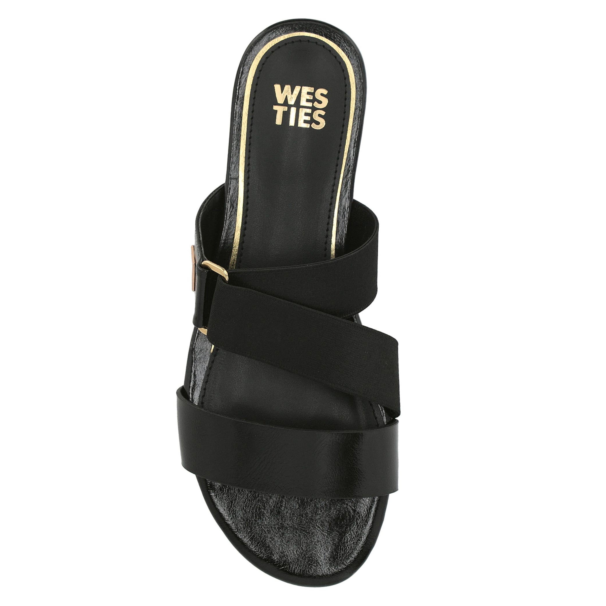 Sandalia Westies para mujer elaborada en material textil con estampado liso, fijación de elástico, punta redonda y textura lisa.
