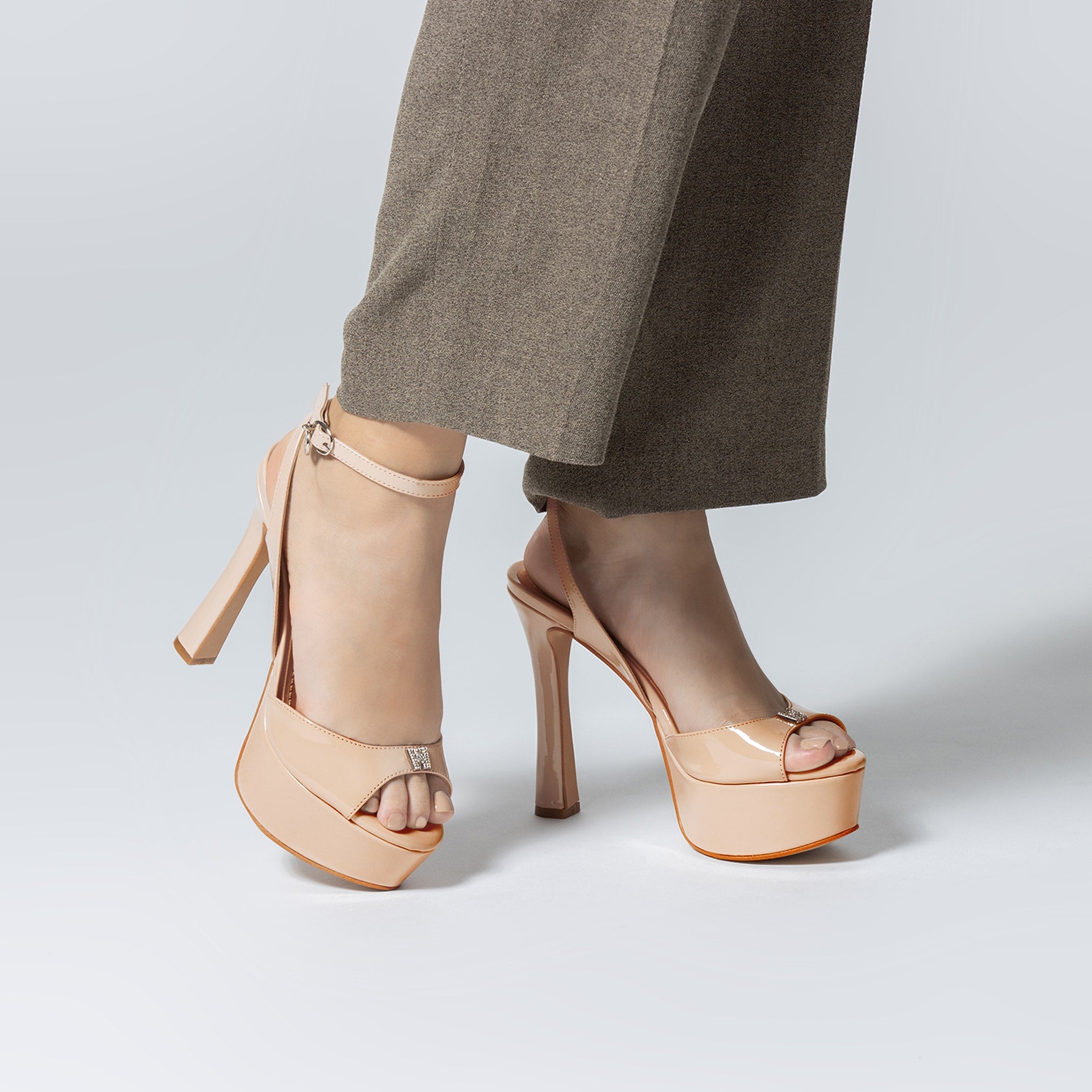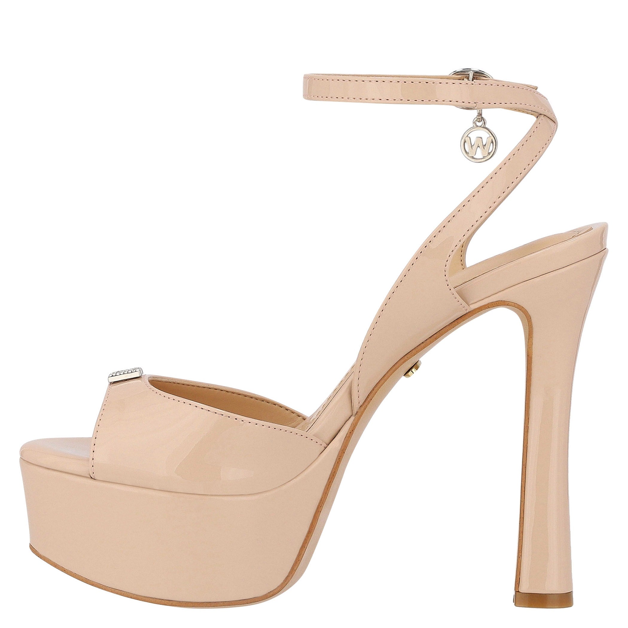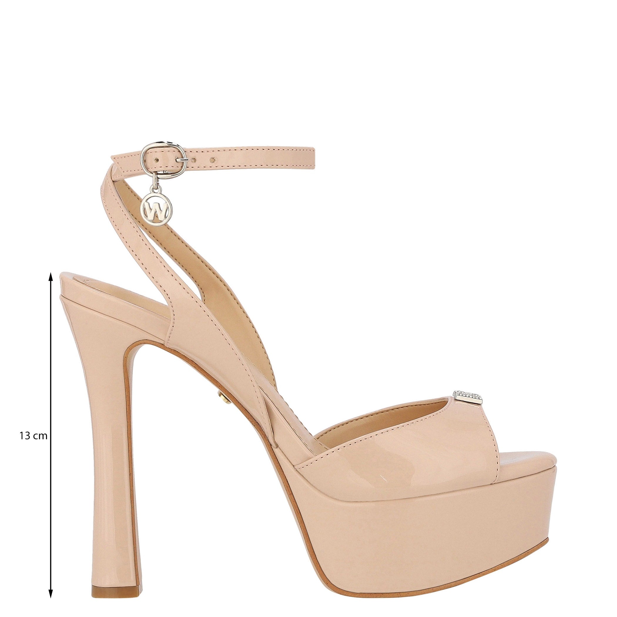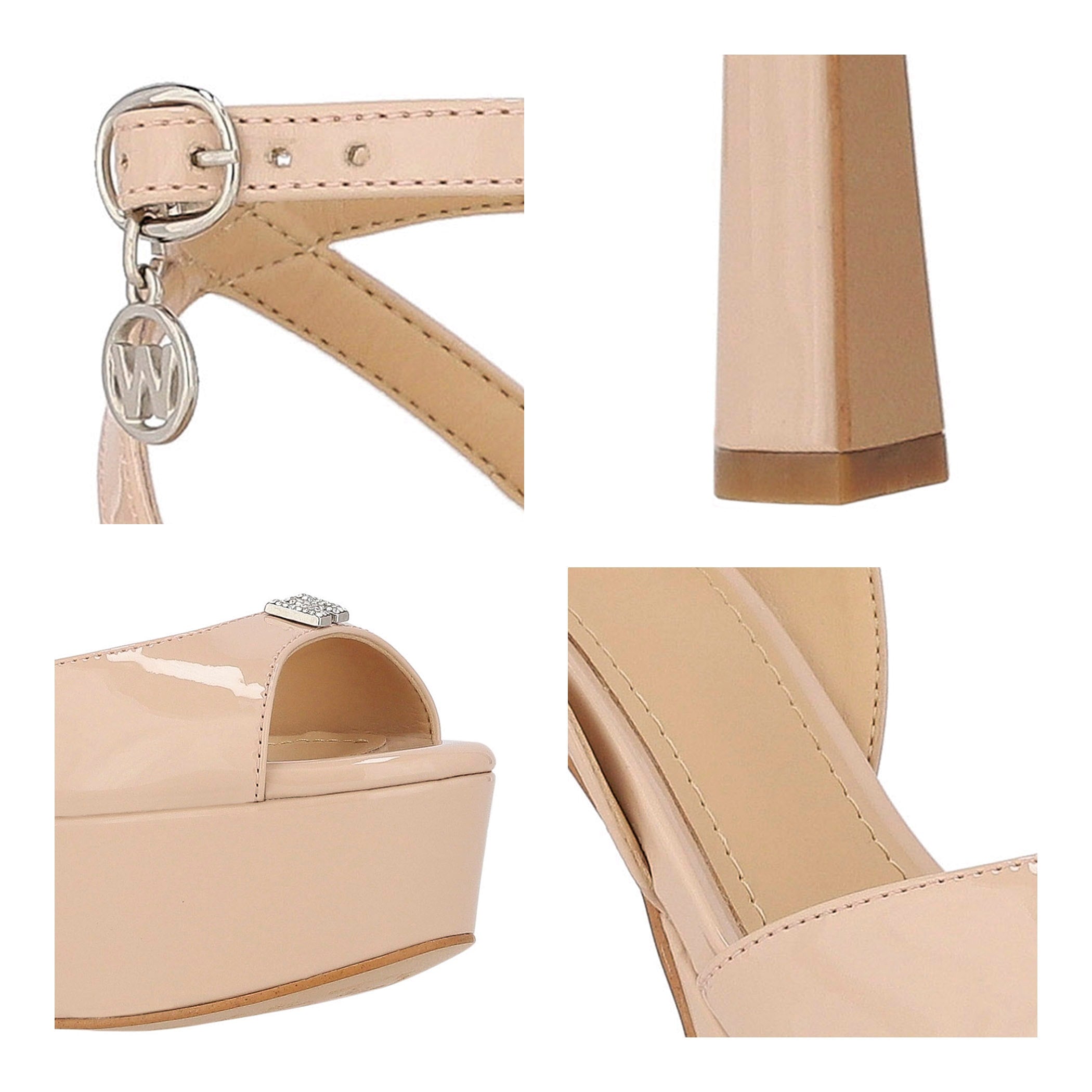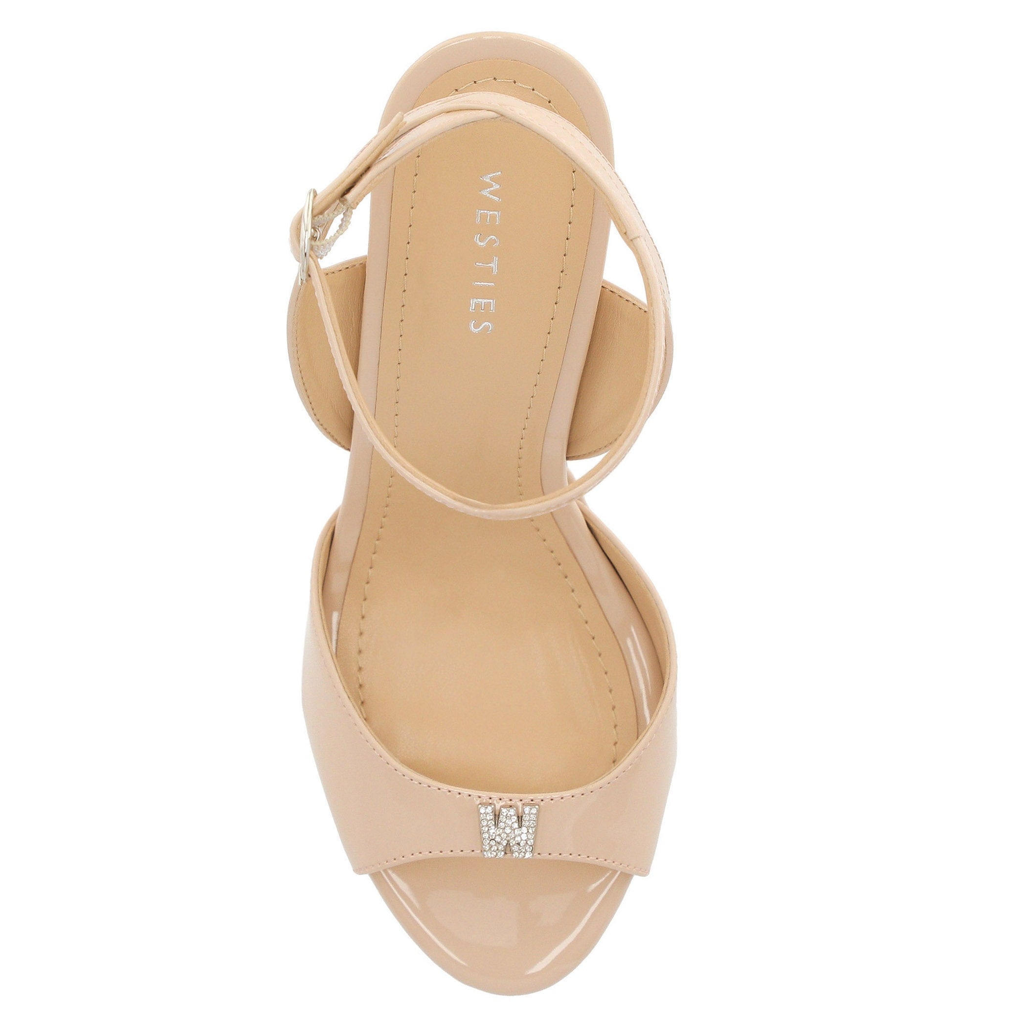 Sandalia Westies para mujer elaborado en material sintético acabado en charol con estampado liso, fijación de hebilla, punta redonda, textura lisa, cuña alta y suela pre-acabada.