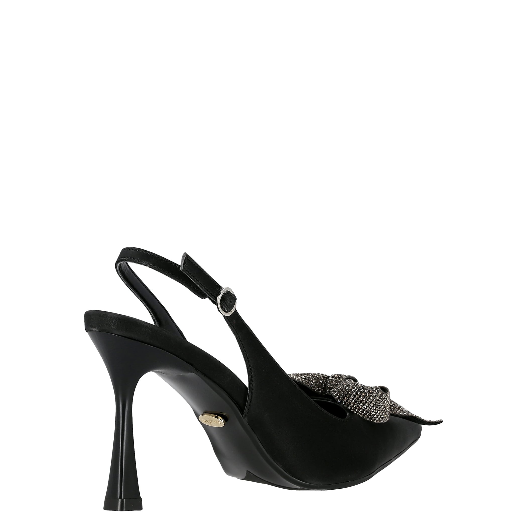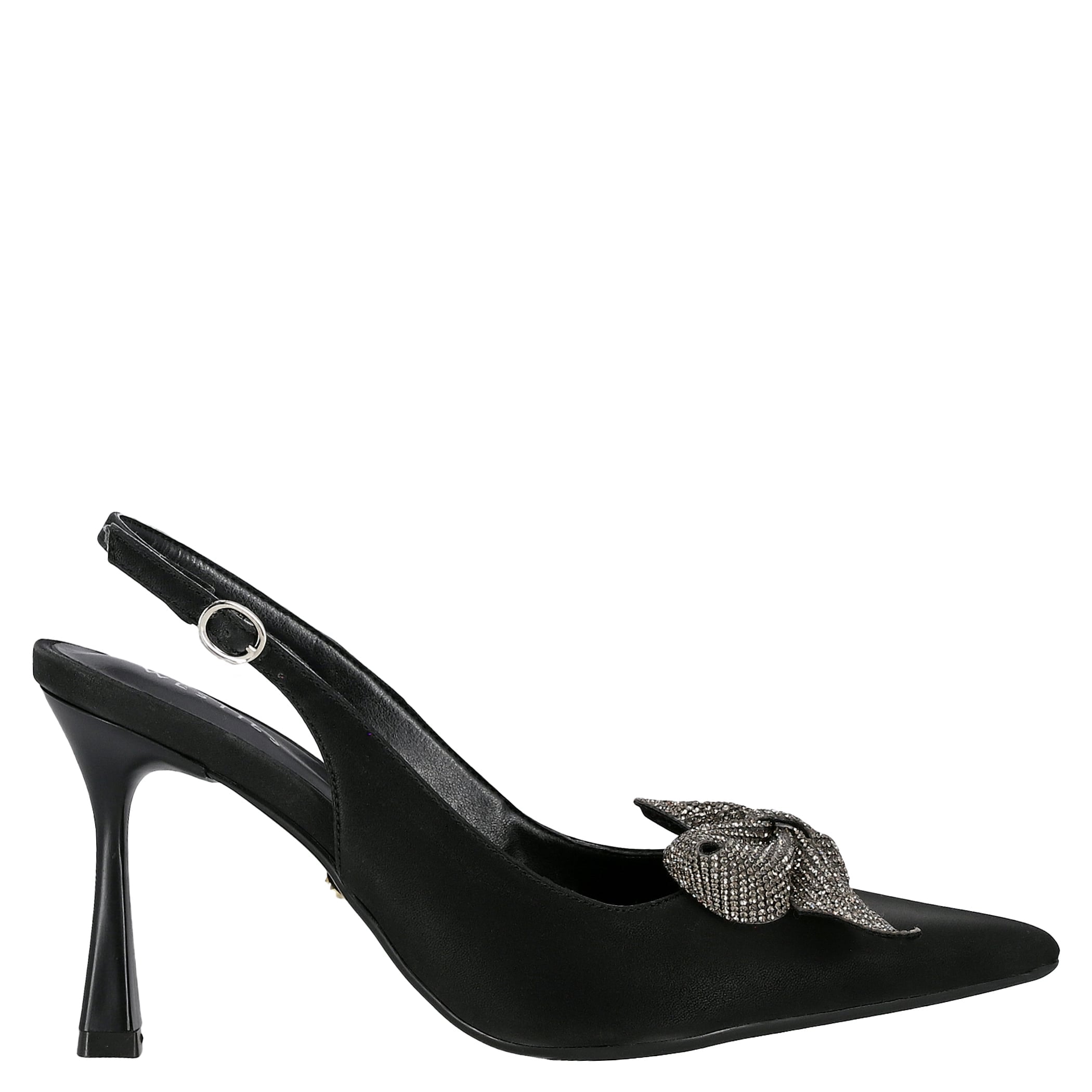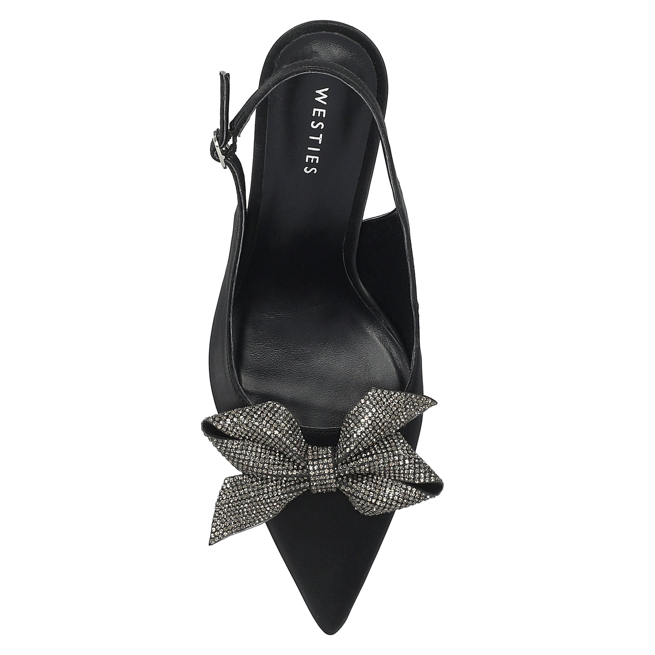 Zapatilla Westies para mujer elaborado en material sintético con aplicación de moño, fijación de hebilla, cuña baja con punta puntal, forro sintético, suela de inyección y textura lisa.