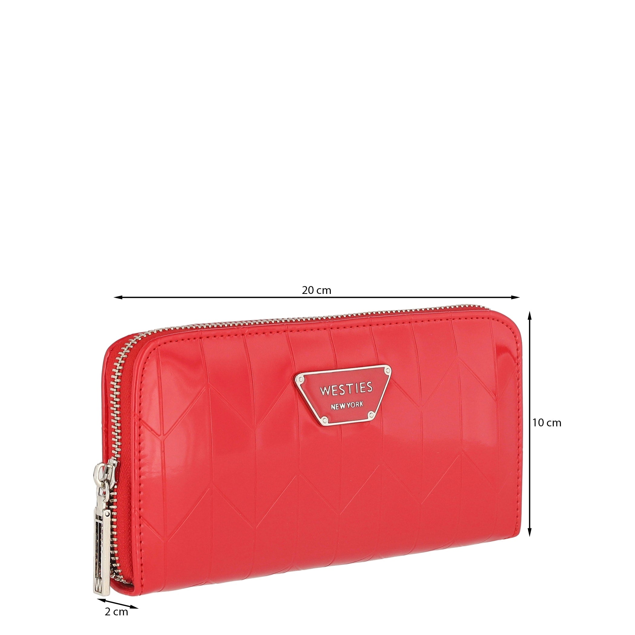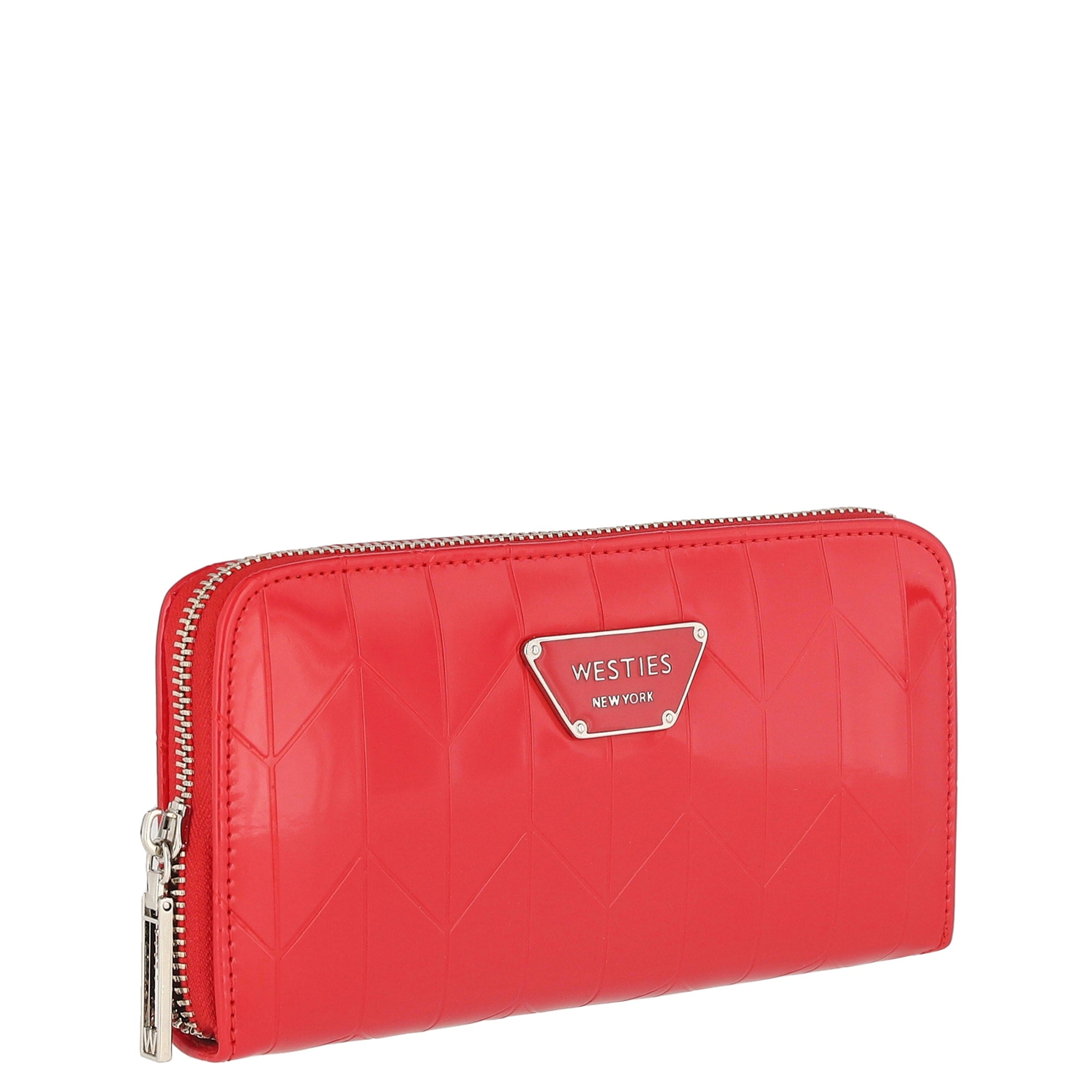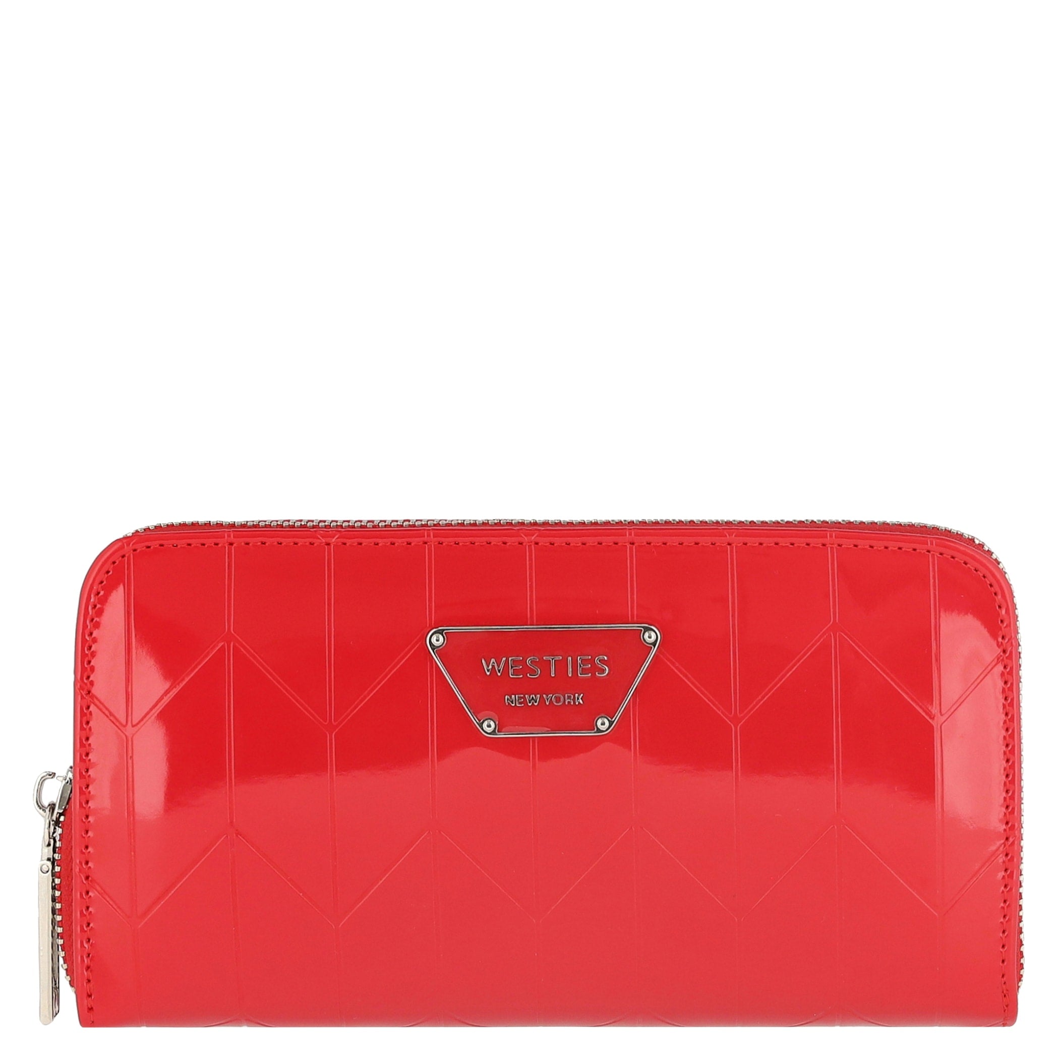 Cartera Westies para mujer elaborado en material charol con estampado liso, fijación de cierre y textura lisa.