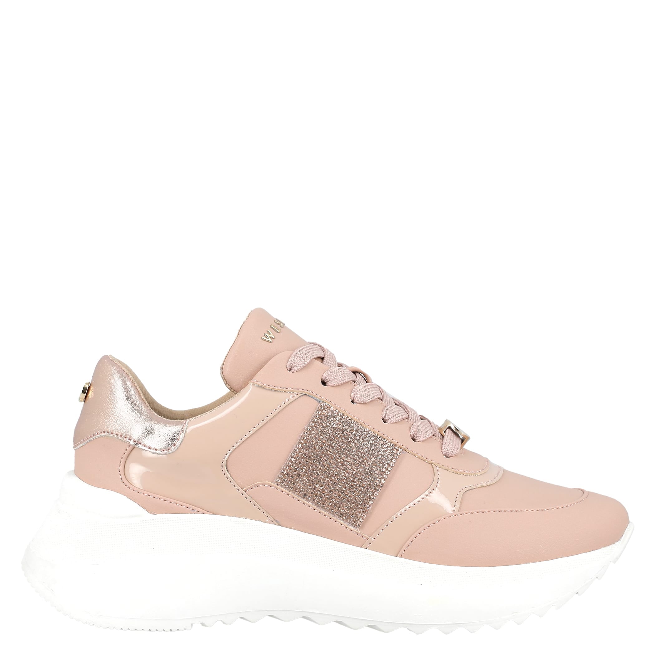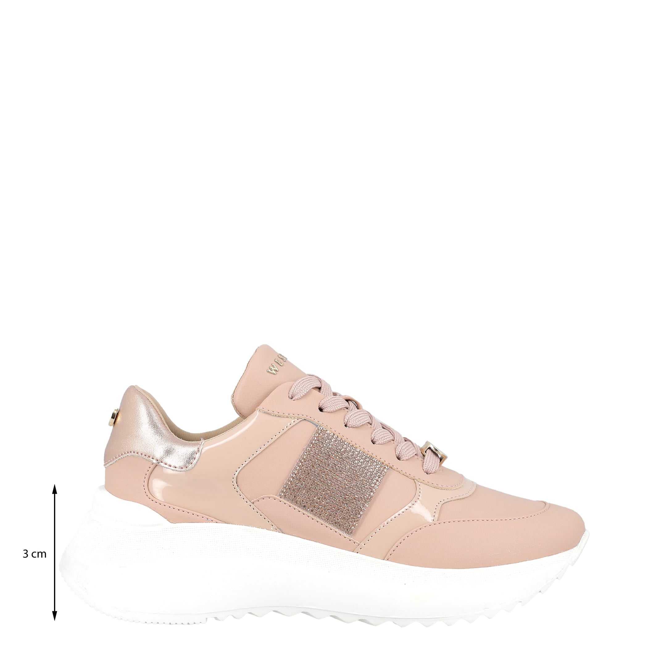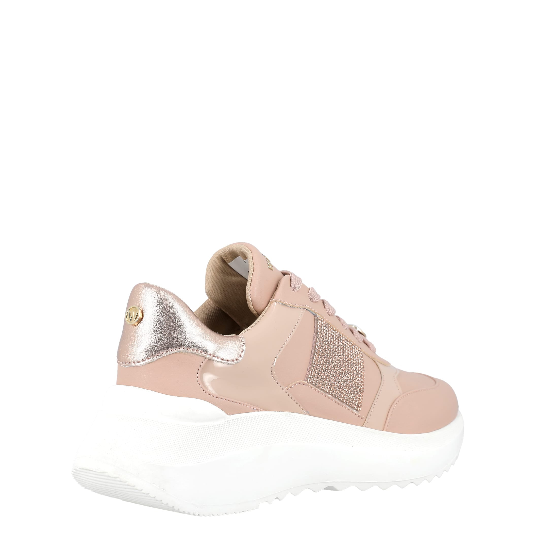 Tenis Westies para mujer elaborado en material sintético con aplicación pedrería, estampado liso, forro textil, suela de inyección, fijación agujeta, punta redonda, textura lisa, con una altura de plataforma 2.8 cm.