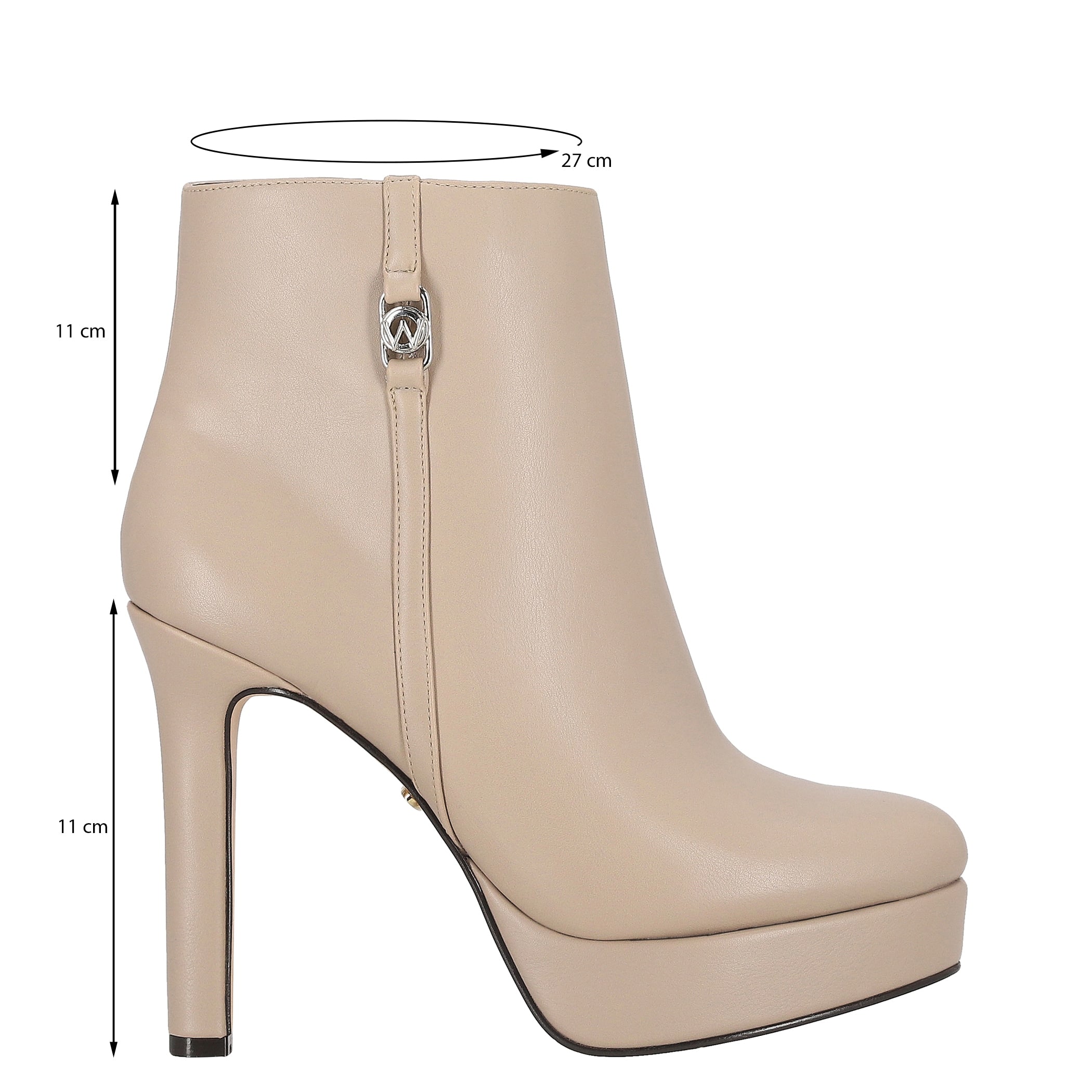 Estos botines Westies combinan estilo y comodidad en un diseño moderno y sofisticado. Confeccionados en material sintético con estampado liso y textura lisa, cuentan con una clásica punta redonda que aporta un toque versátil. La fijación de cierre permite un ajuste práctico y seguro, mientras que la cuña alta y el tacón de 11 cm estilizan la silueta.