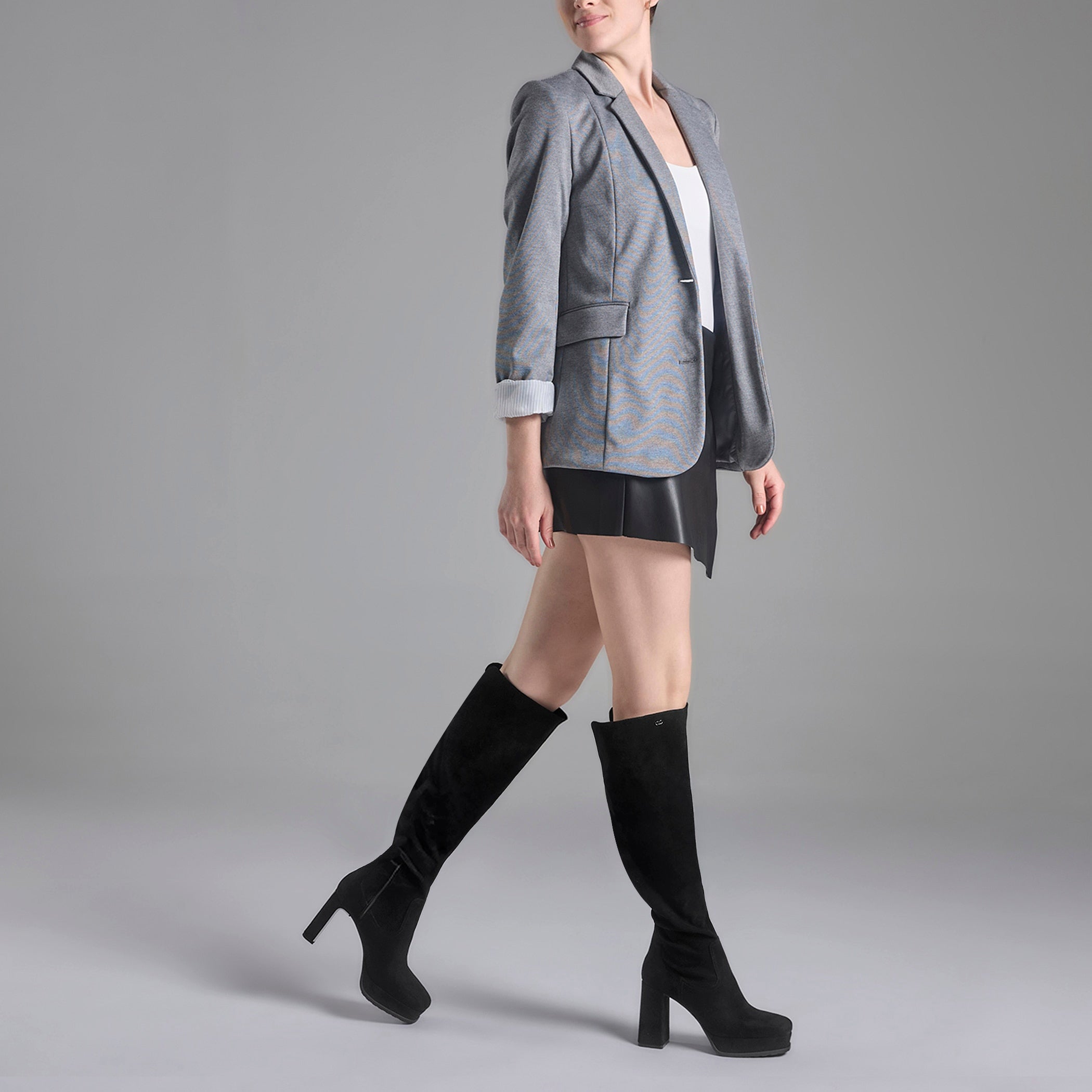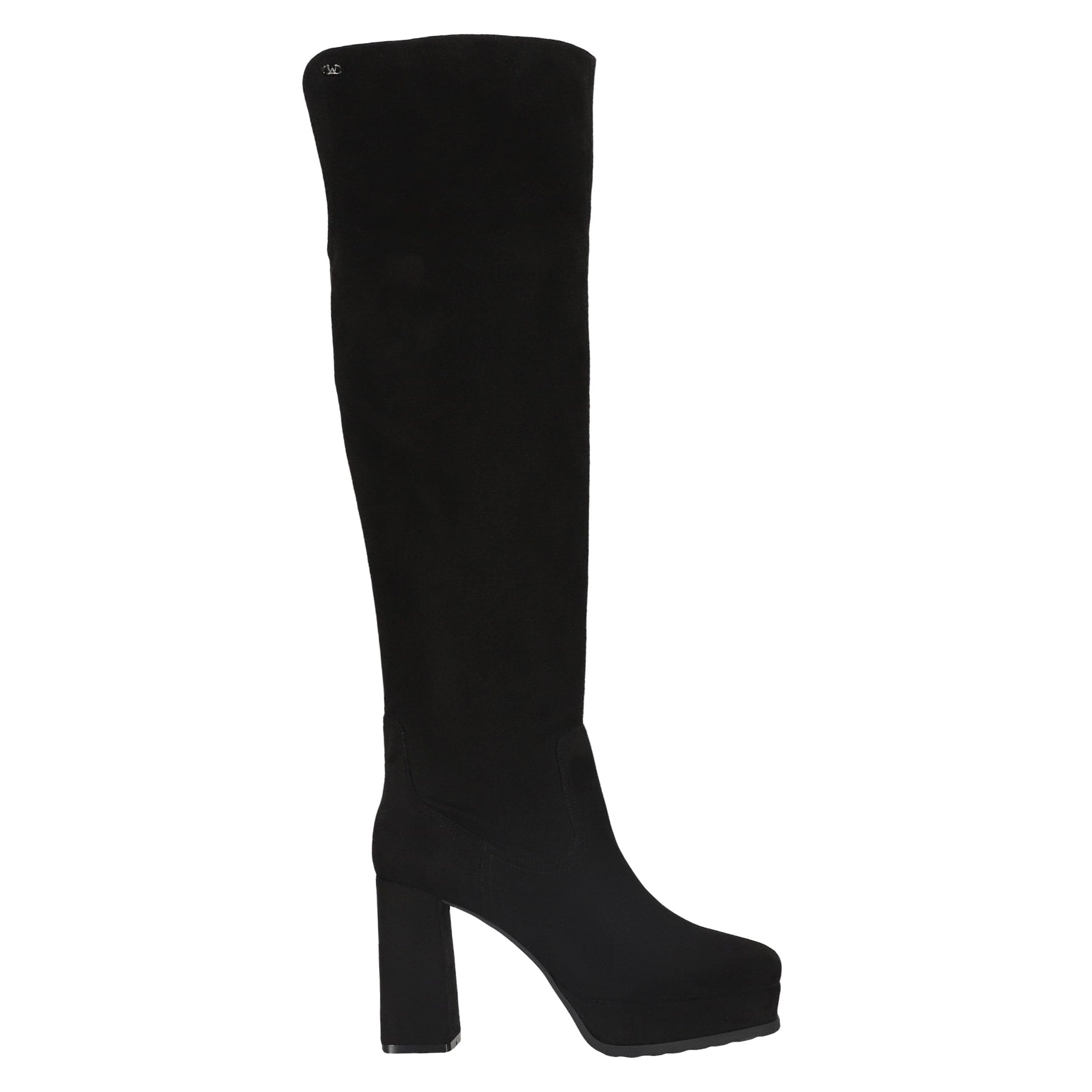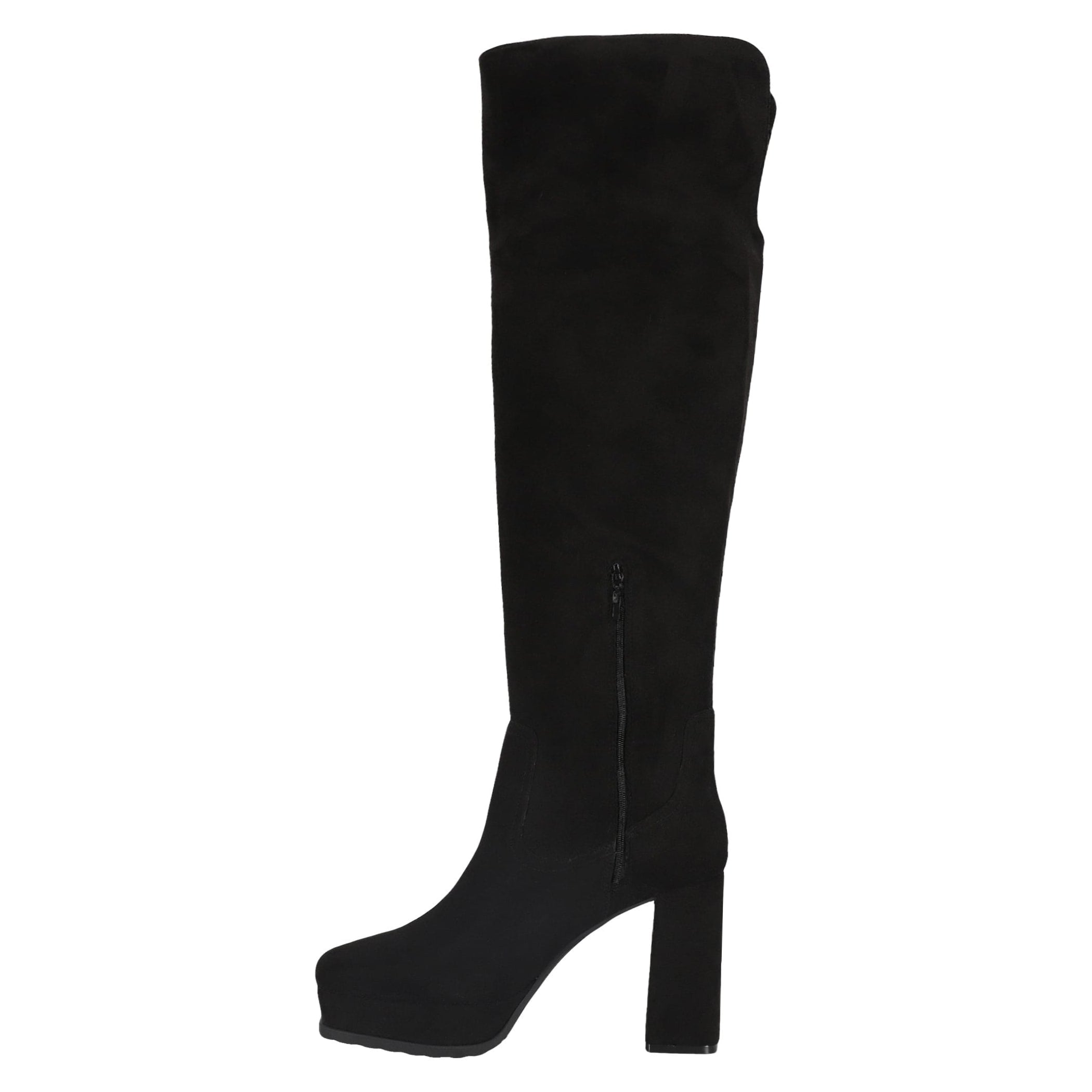 Estas botas con plataforma Westies son ideales para un look audaz y elegante. Confeccionadas en material de gamuza textil con estampado liso y textura lisa, presentan una silueta estilizada con punta cuadrada que añade un toque moderno. La fijación abierta permite un calce práctico, mientras que la cuña alta y el tacón de 10 cm elevan tu estilo con comodidad.