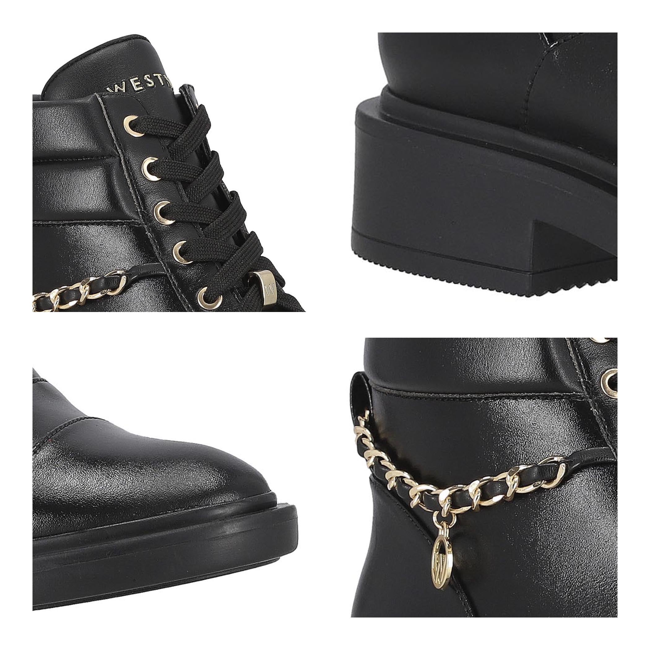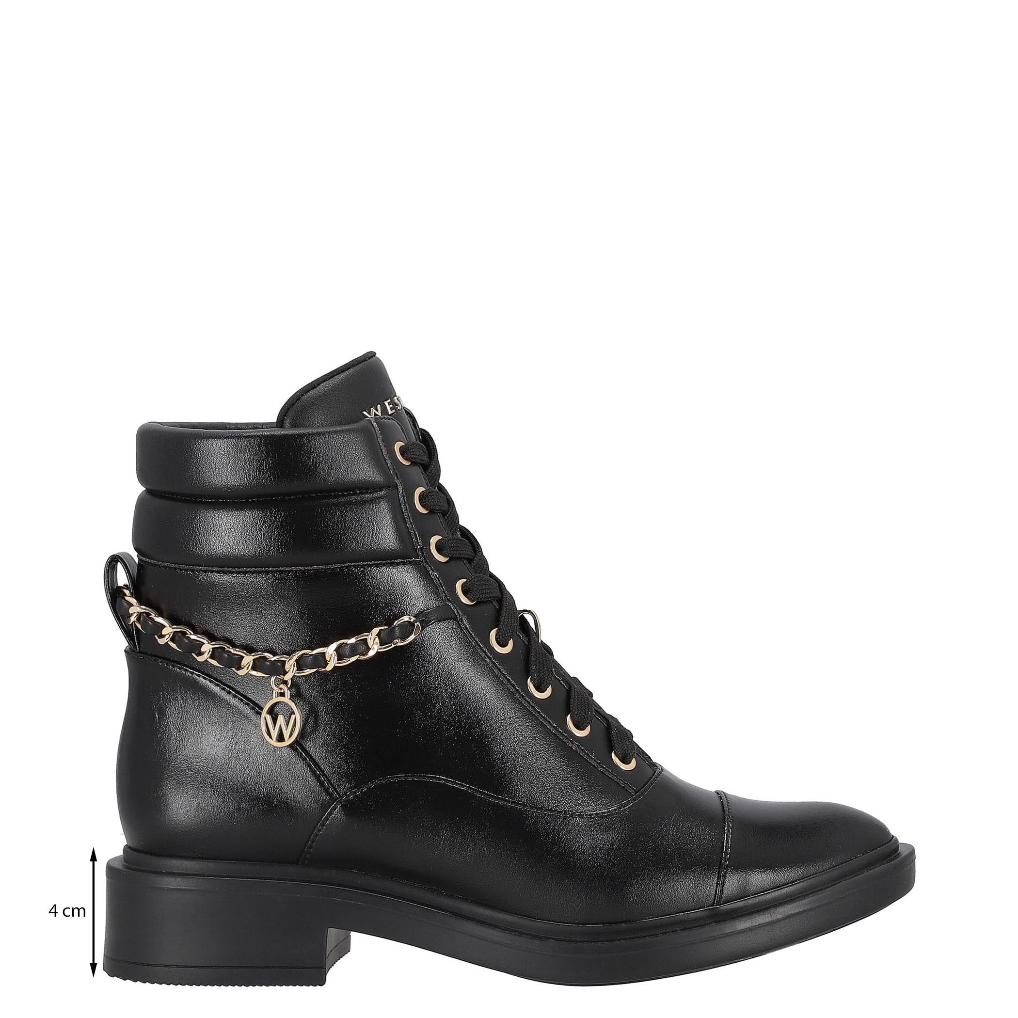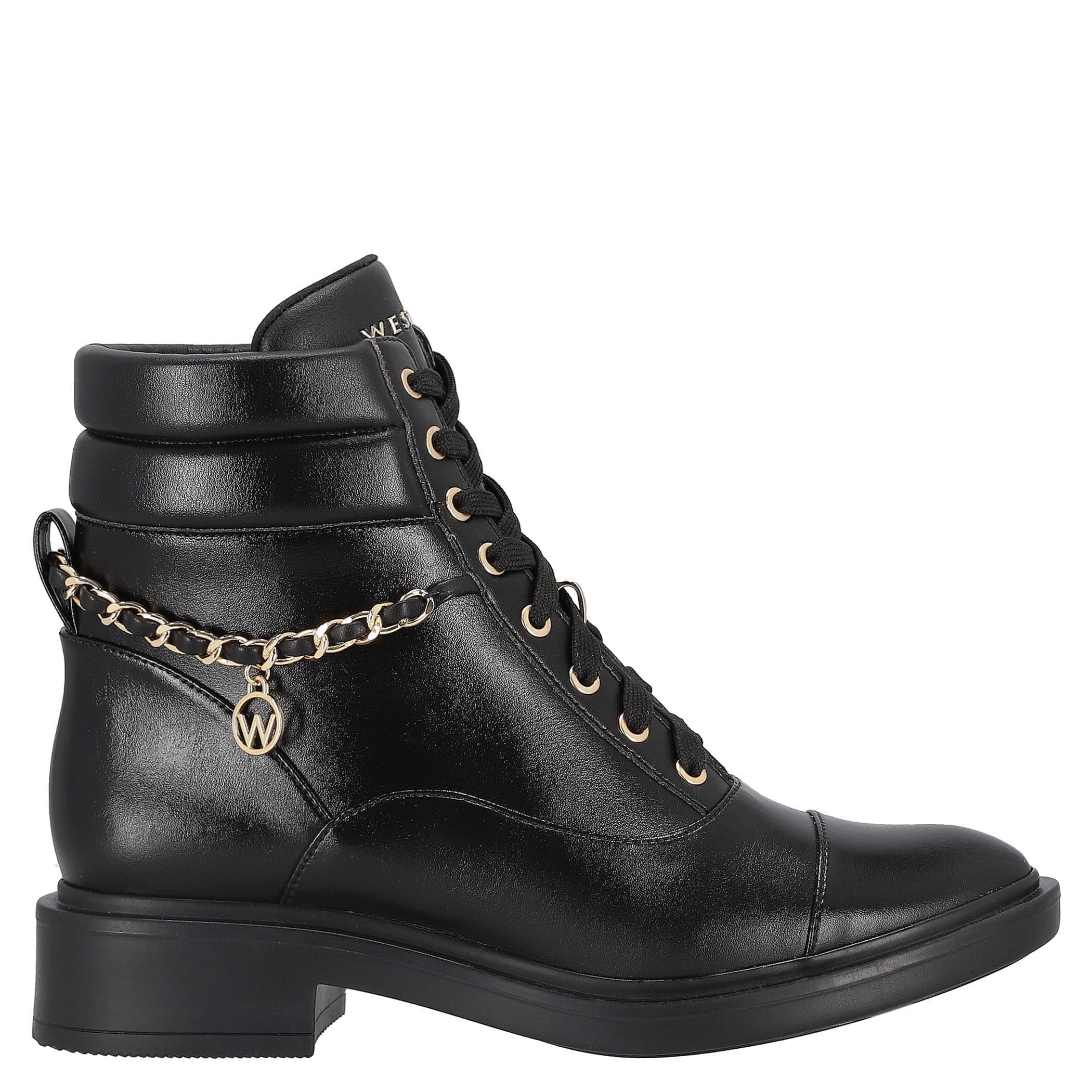 Botín Westies para mujer elaborado en material sintético con fijación de agujeta, cuña flat con punta redonda, forro textil, suela de inyección y textura lisa.