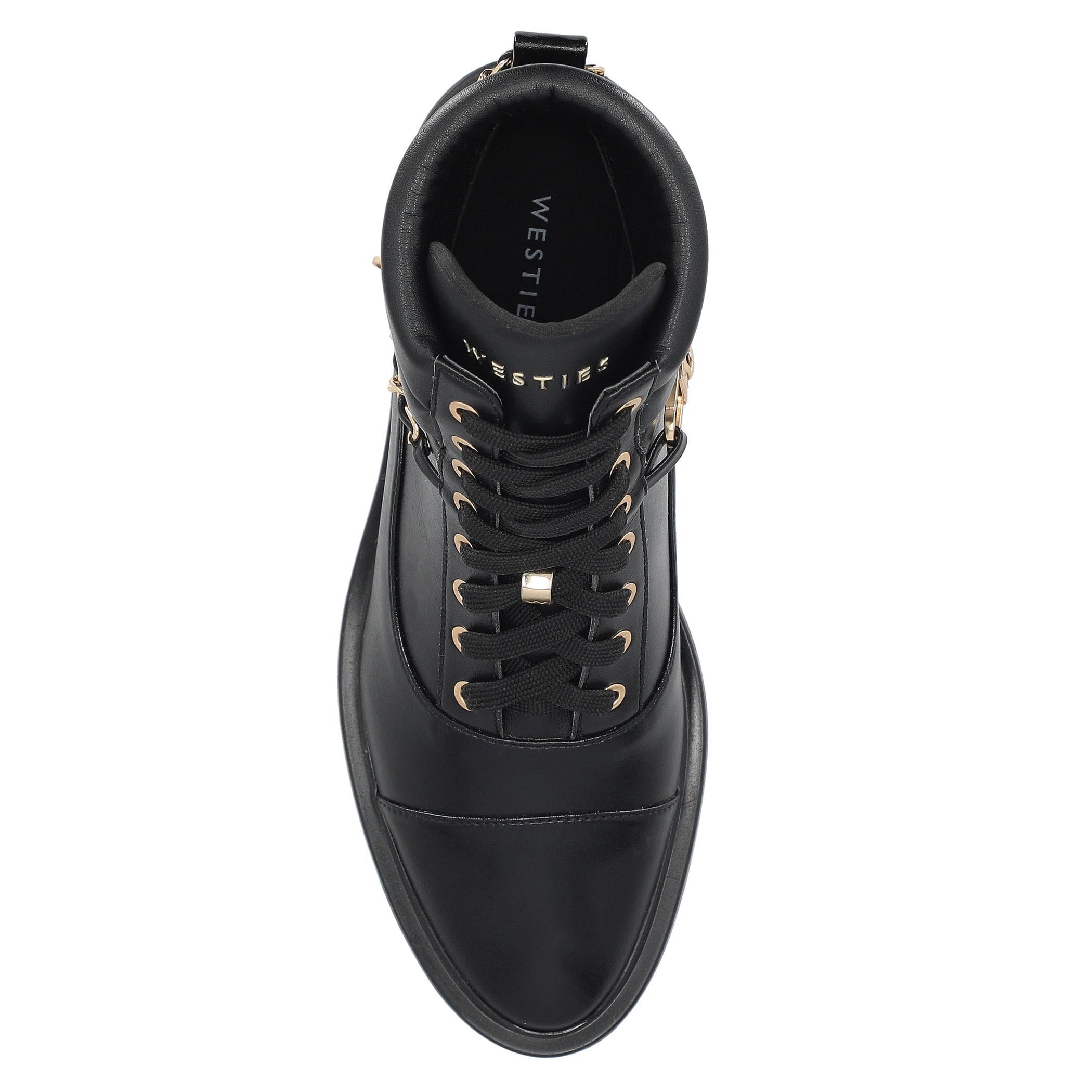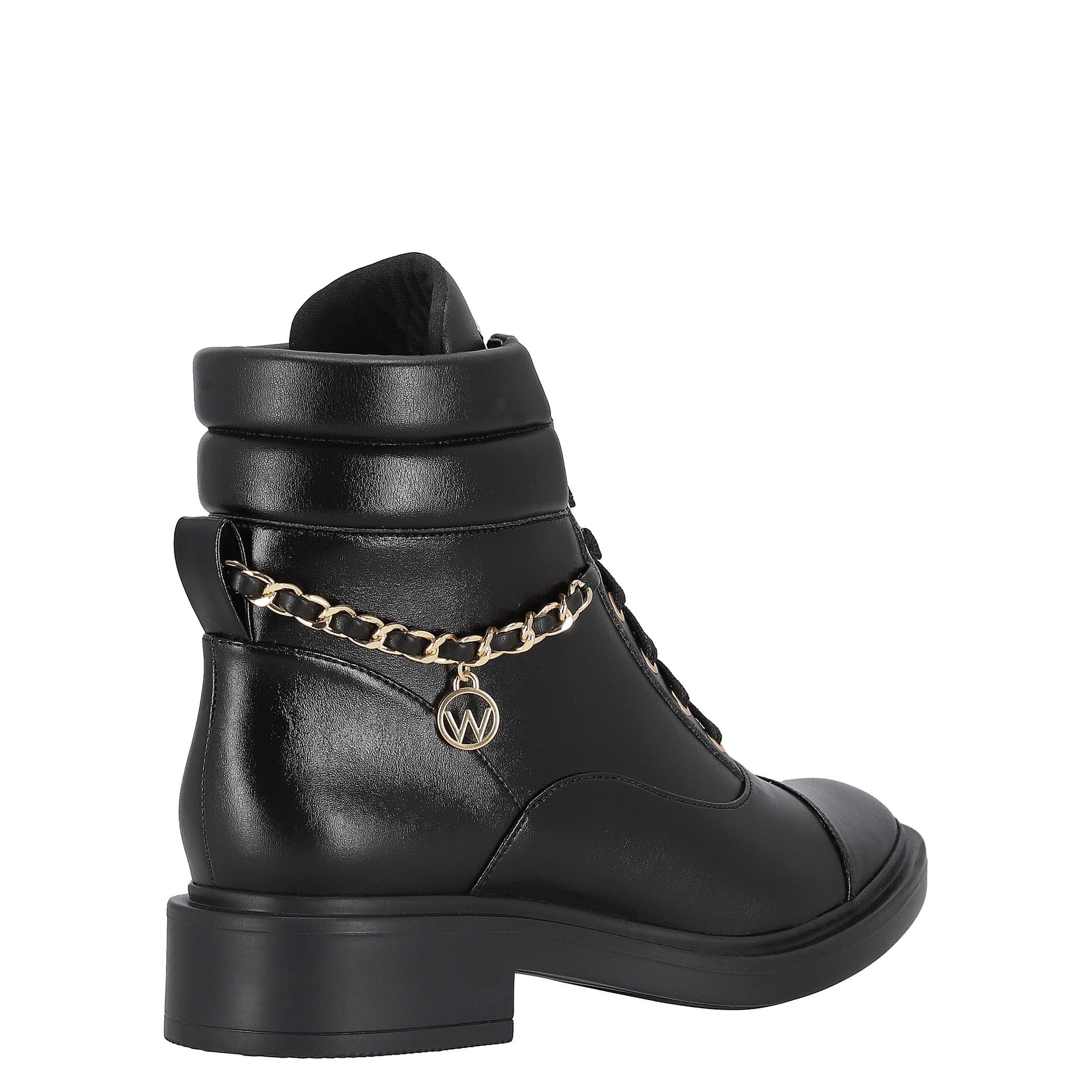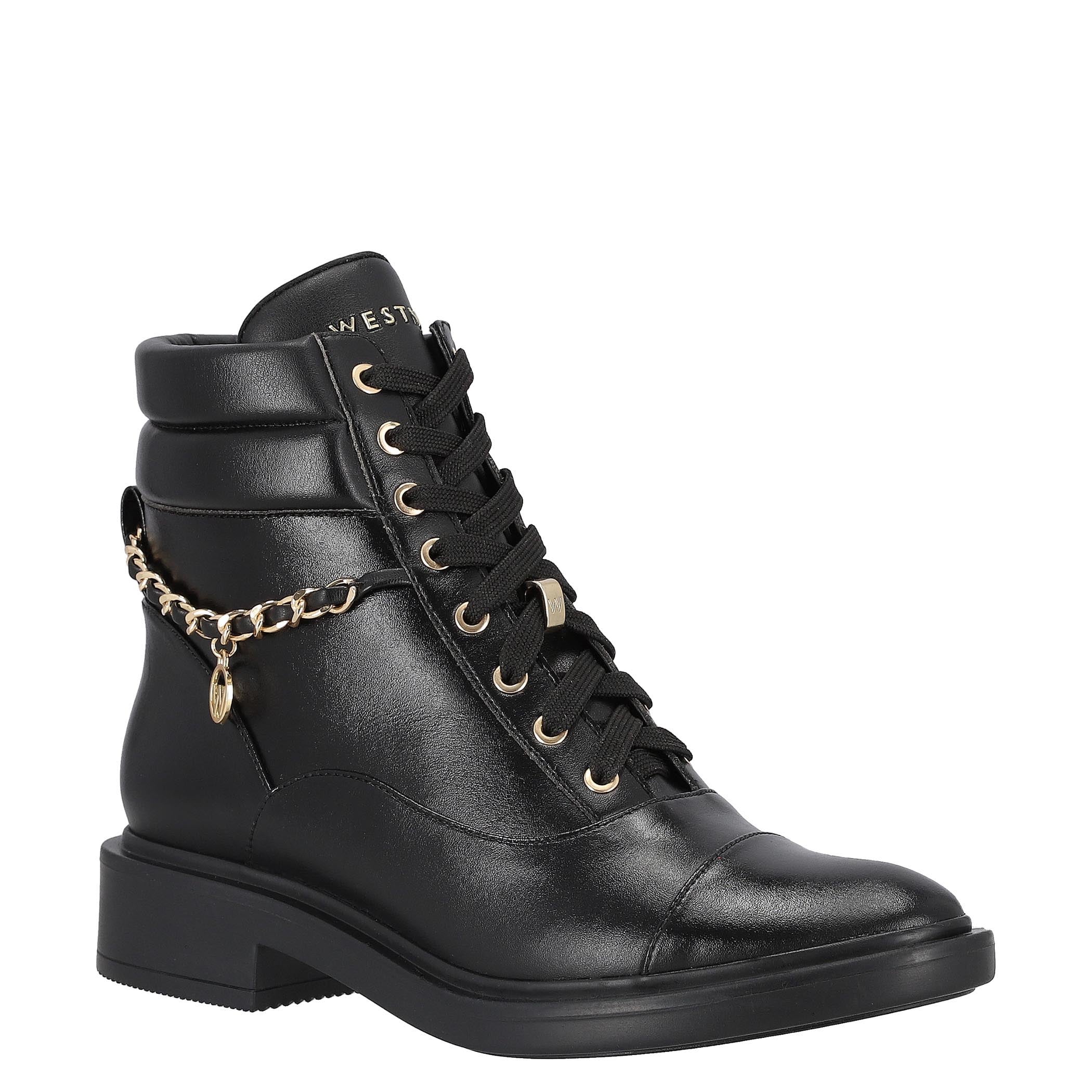 Botín Westies para mujer elaborado en material sintético con fijación de agujeta, cuña flat con punta redonda, forro textil, suela de inyección y textura lisa.