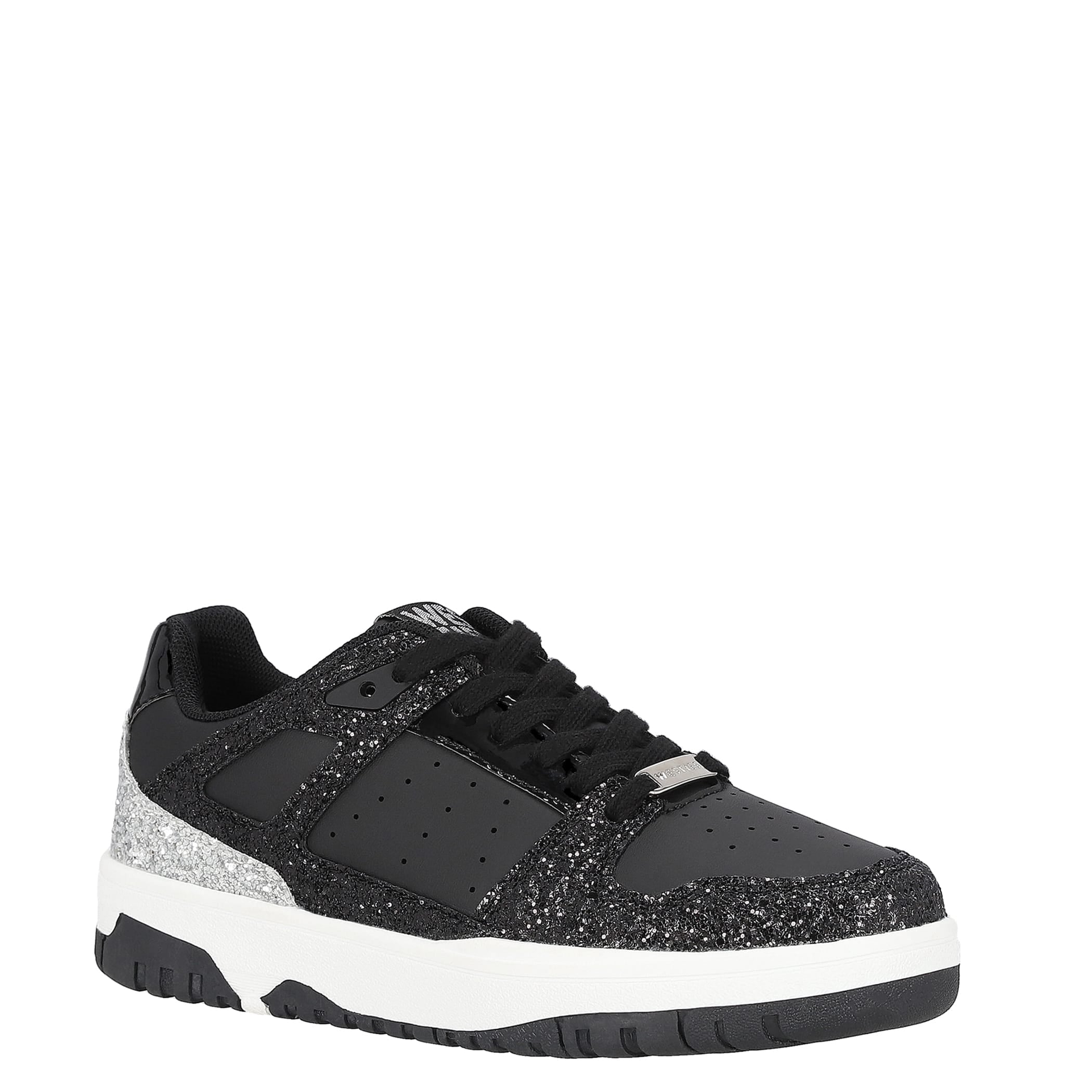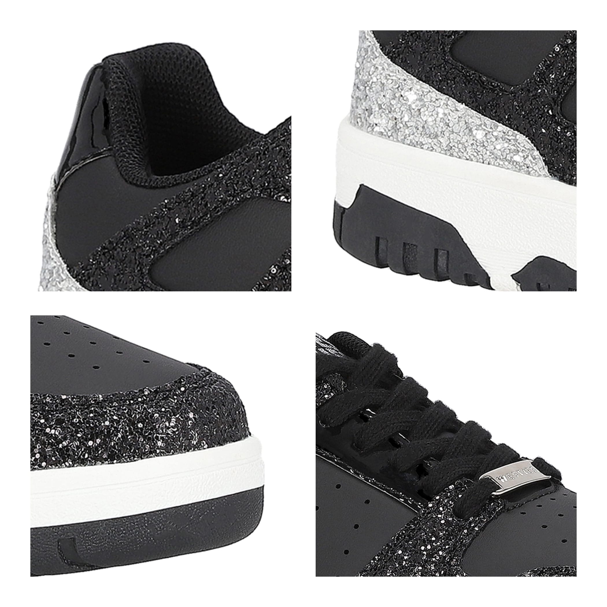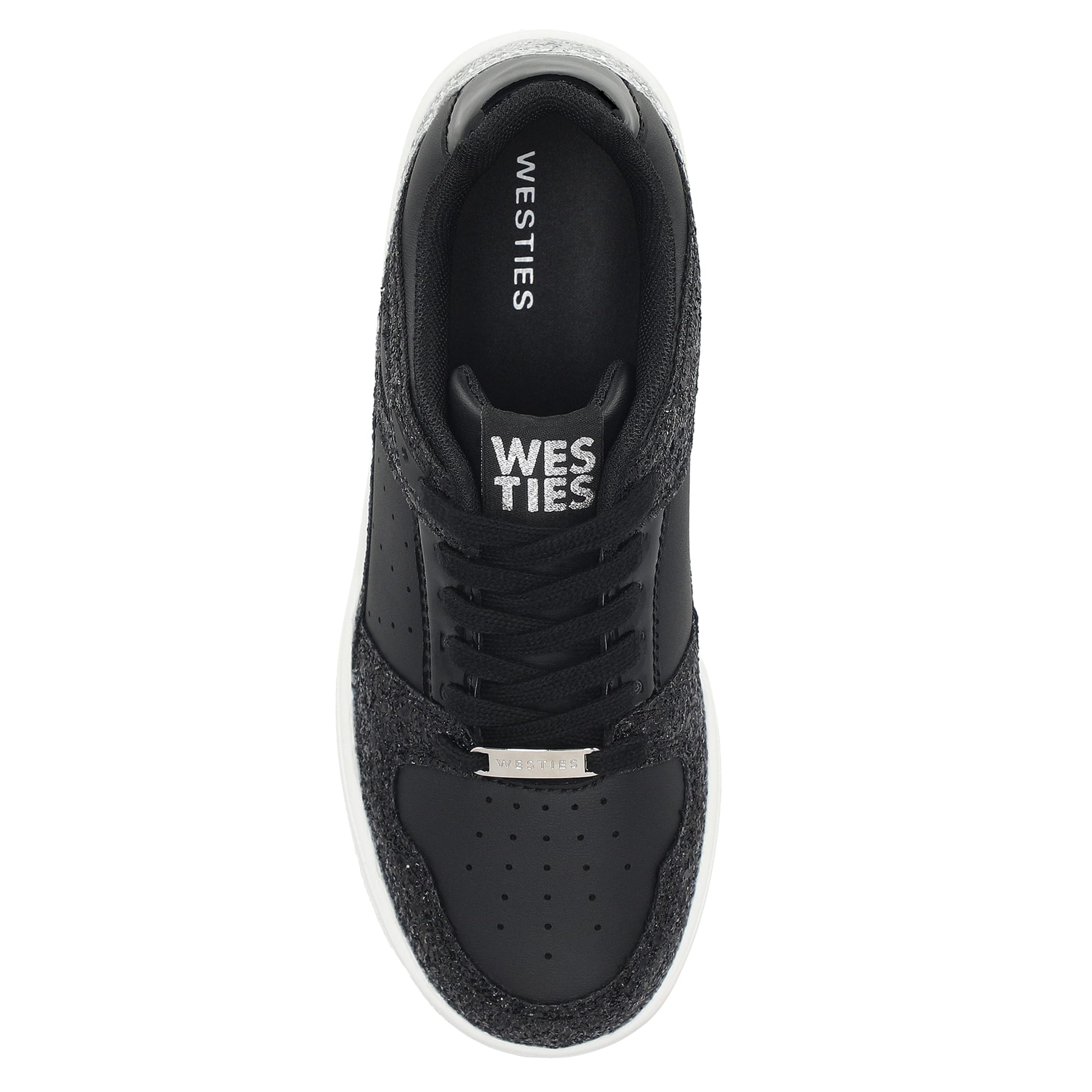 Tenis Westies para mujer elaborado en material sintético con aplicación de glitter, estampado liso, fijación de agujeta, punta redonda, textura lisa, forro textil, cuña flat y suela de inyección.