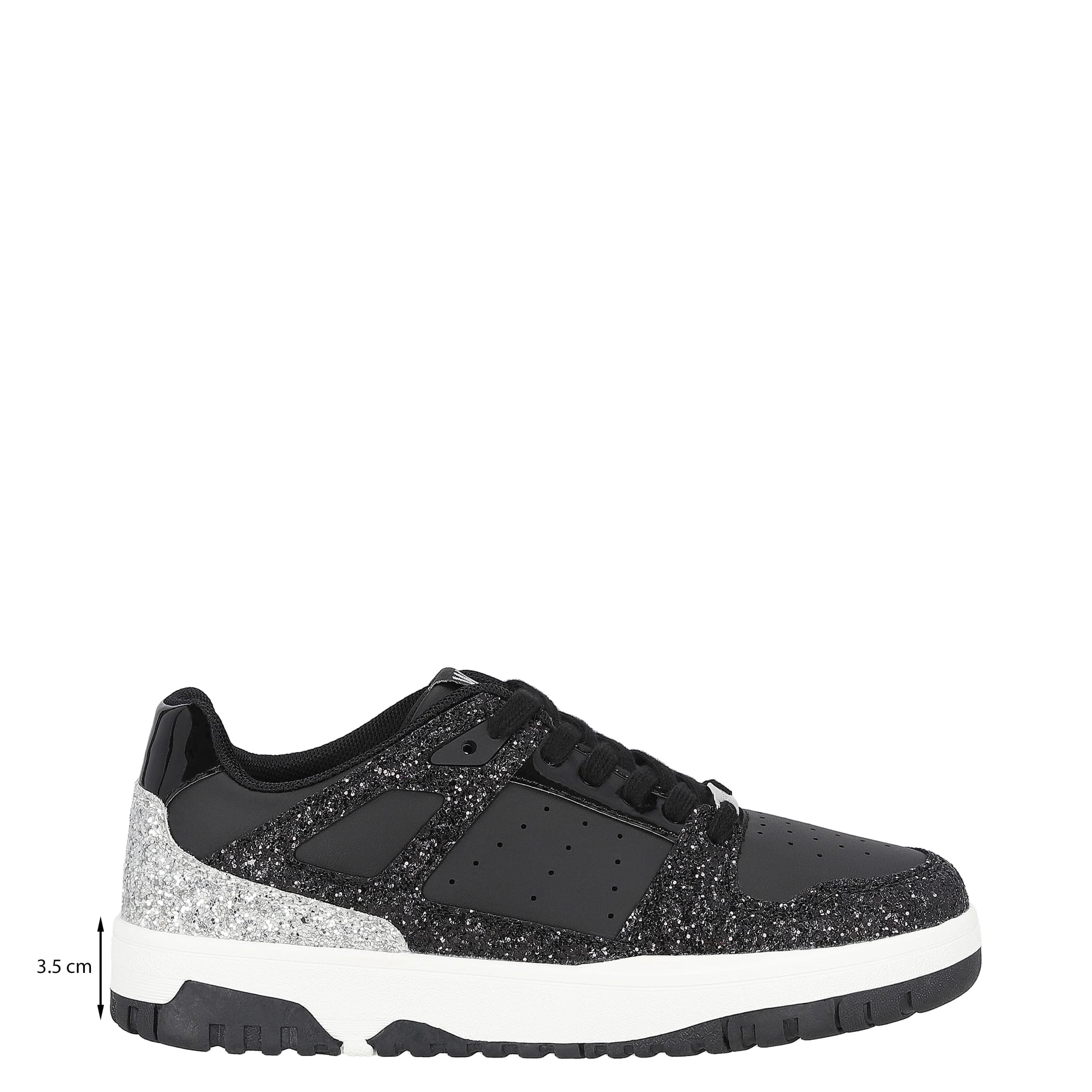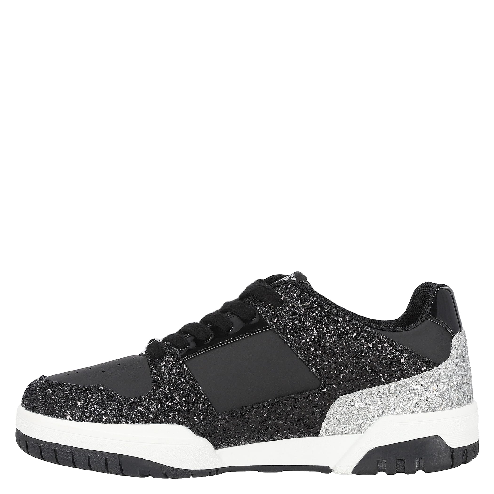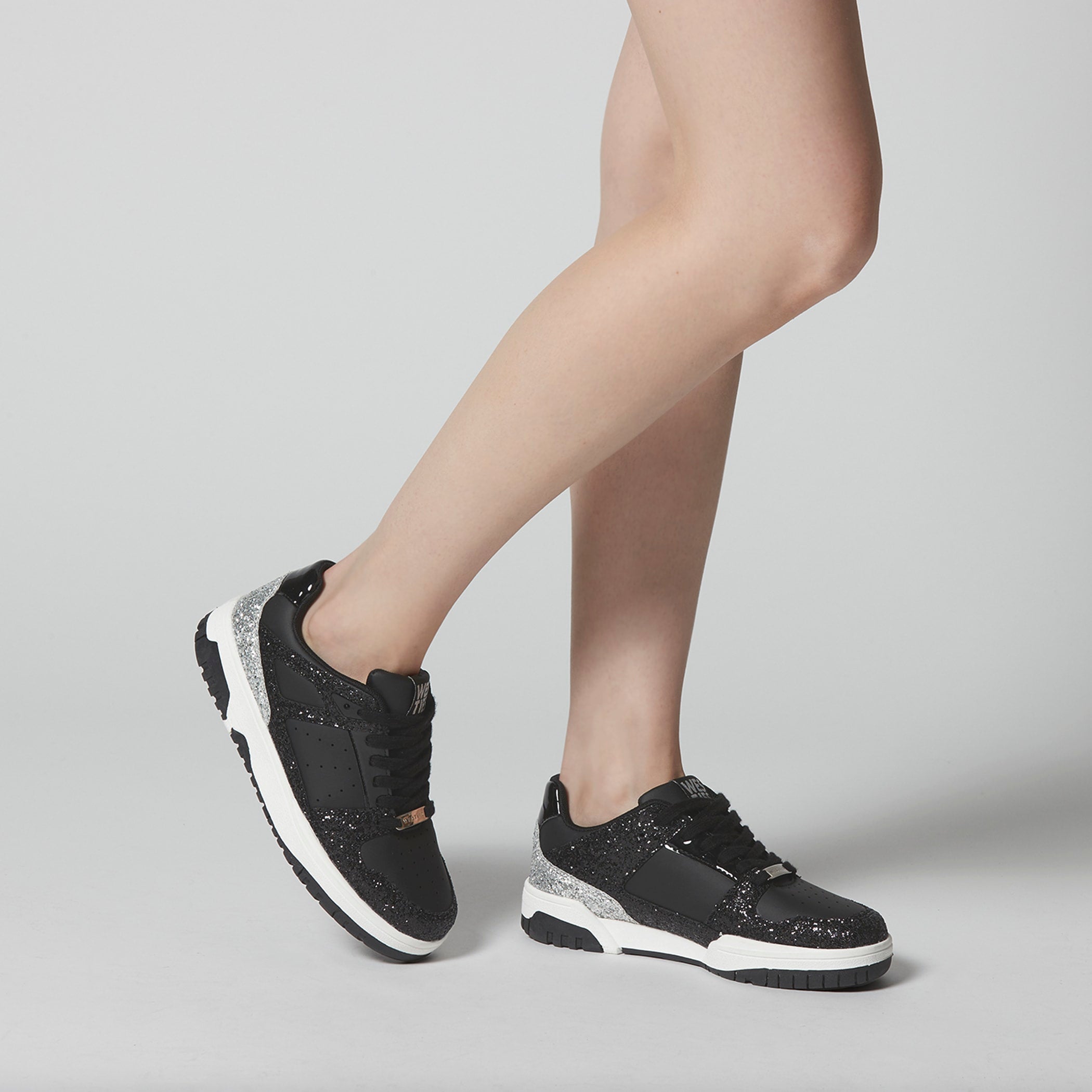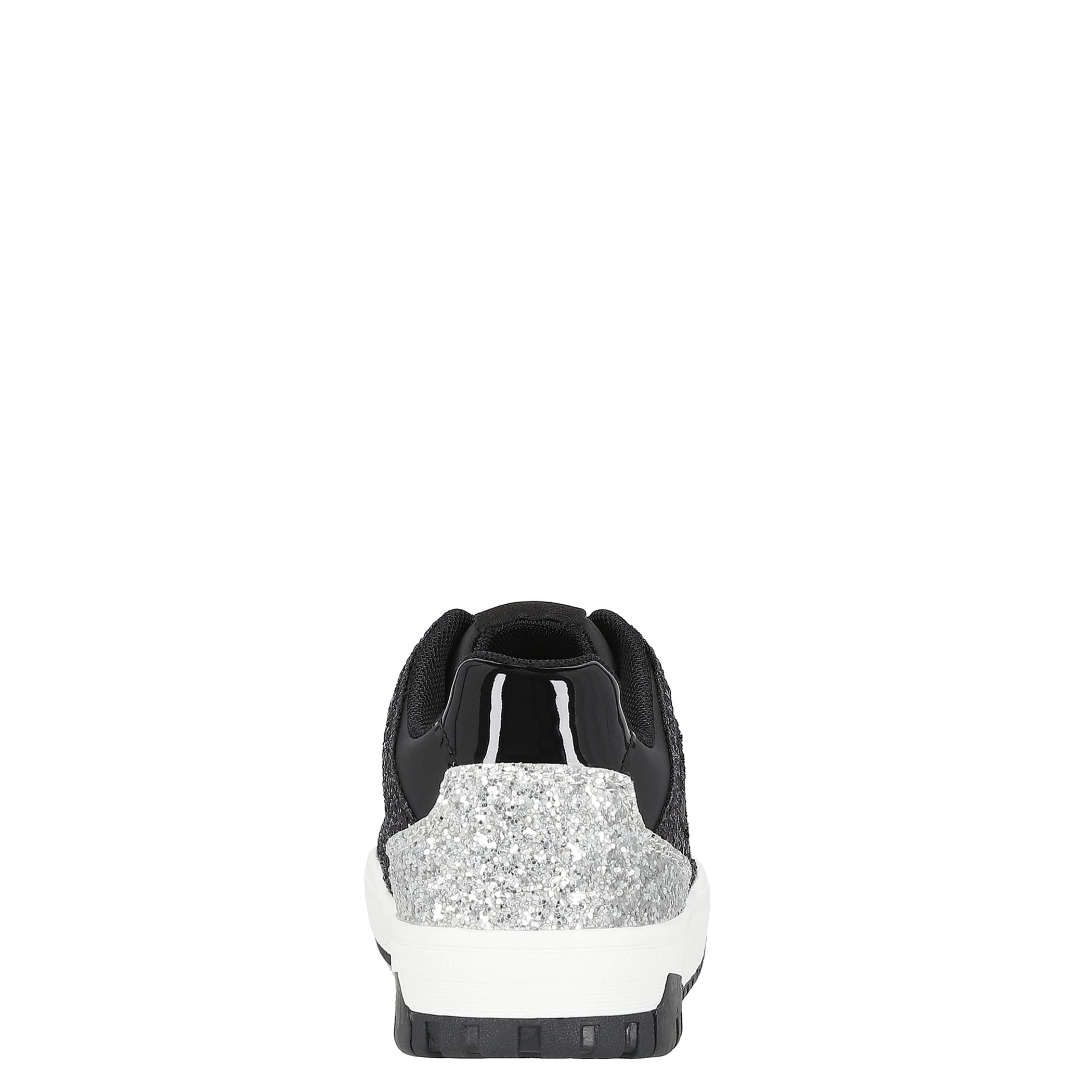 Tenis Westies para mujer elaborado en material sintético con aplicación de glitter, estampado liso, fijación de agujeta, punta redonda, textura lisa, forro textil, cuña flat y suela de inyección.
