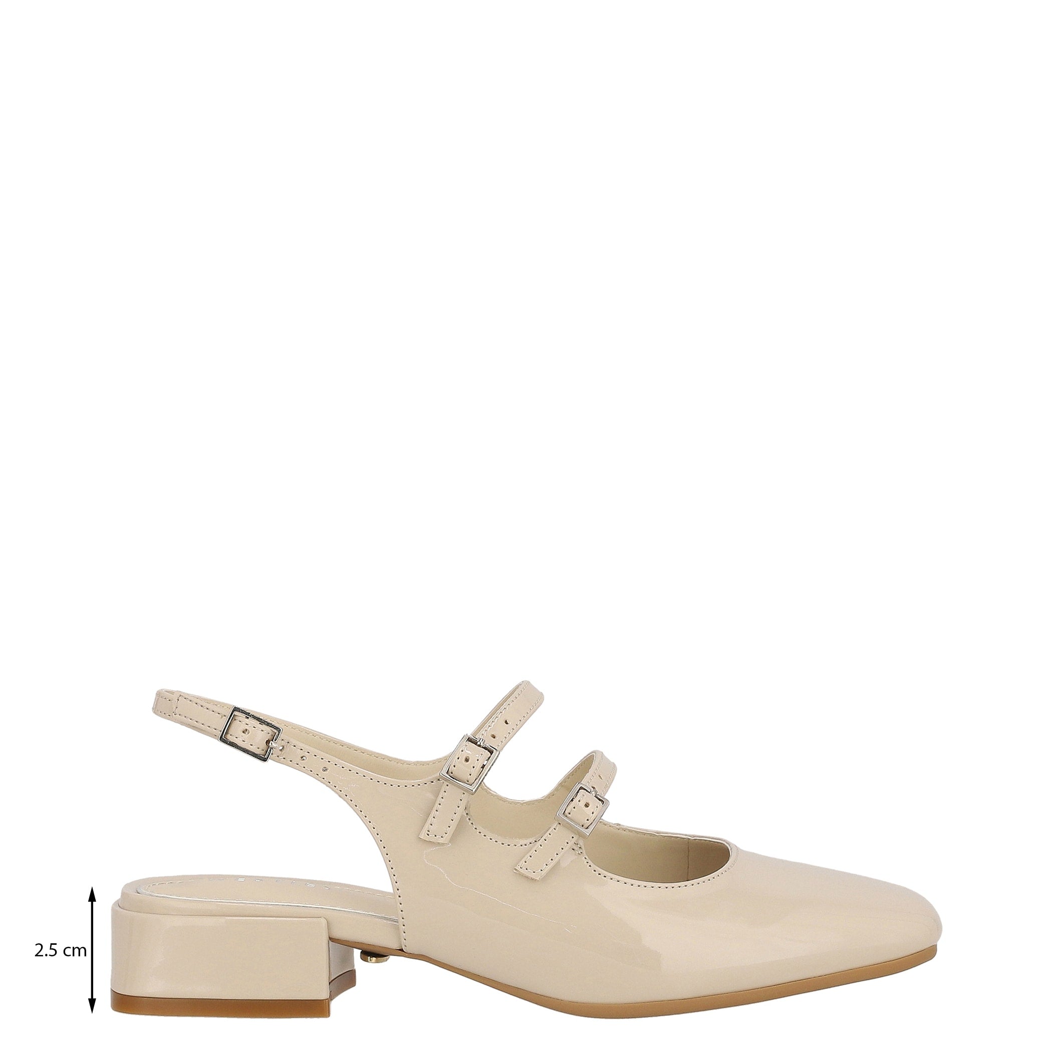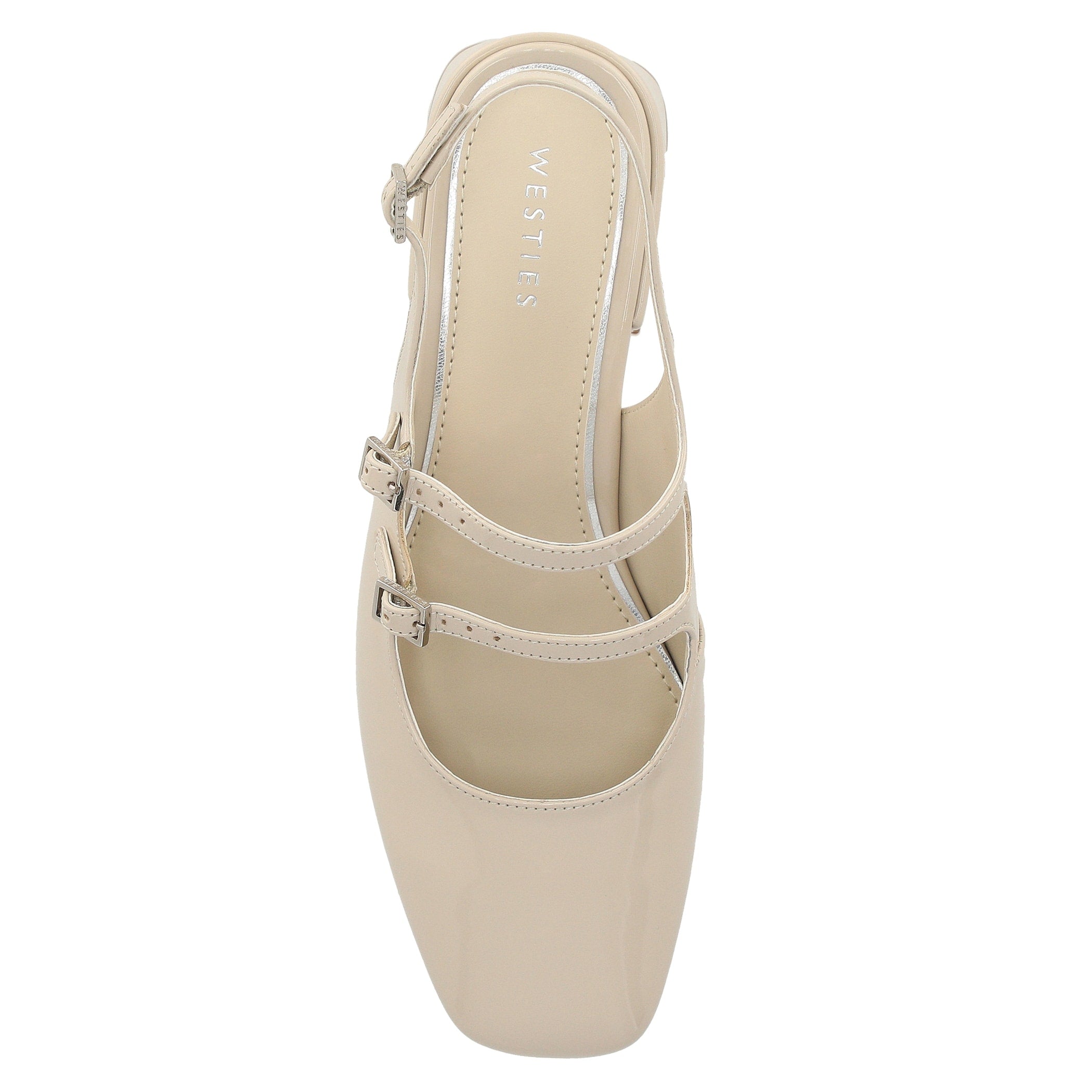 Estas ballerinas Westies combinan elegancia y practicidad en un diseño atemporal. Confeccionadas en material charol sintético con estampado liso y textura lisa, su acabado brillante aporta un toque sofisticado. La punta cuadrada y la fijación de hebilla ofrecen un ajuste seguro y cómodo, mientras que la cuña flat y el tacón de 2.5 cm brindan soporte ideal para el uso diario.