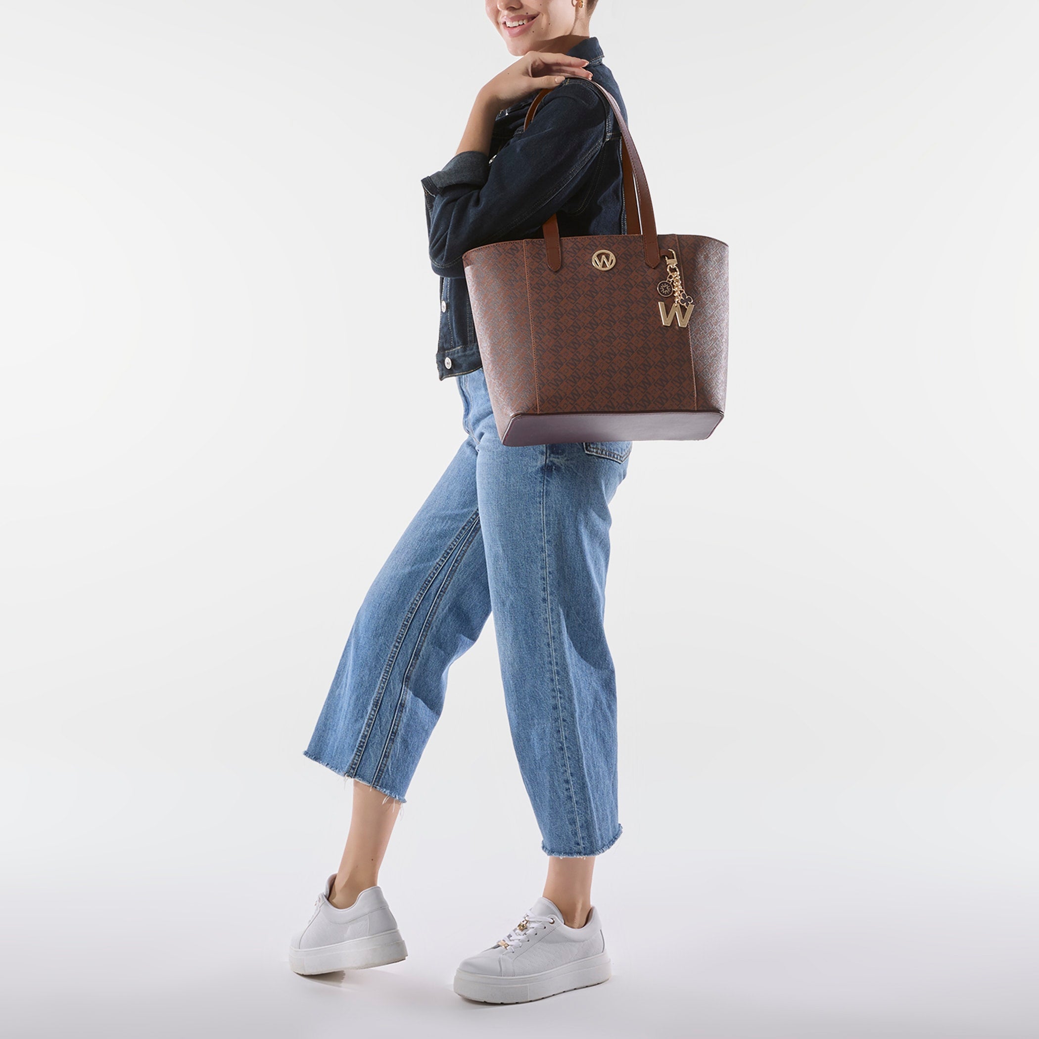 Bolsa tote Westies para mujer elaborada en material sintético monogram con estampado de logotipo, fijación de cierre y textura lisa.