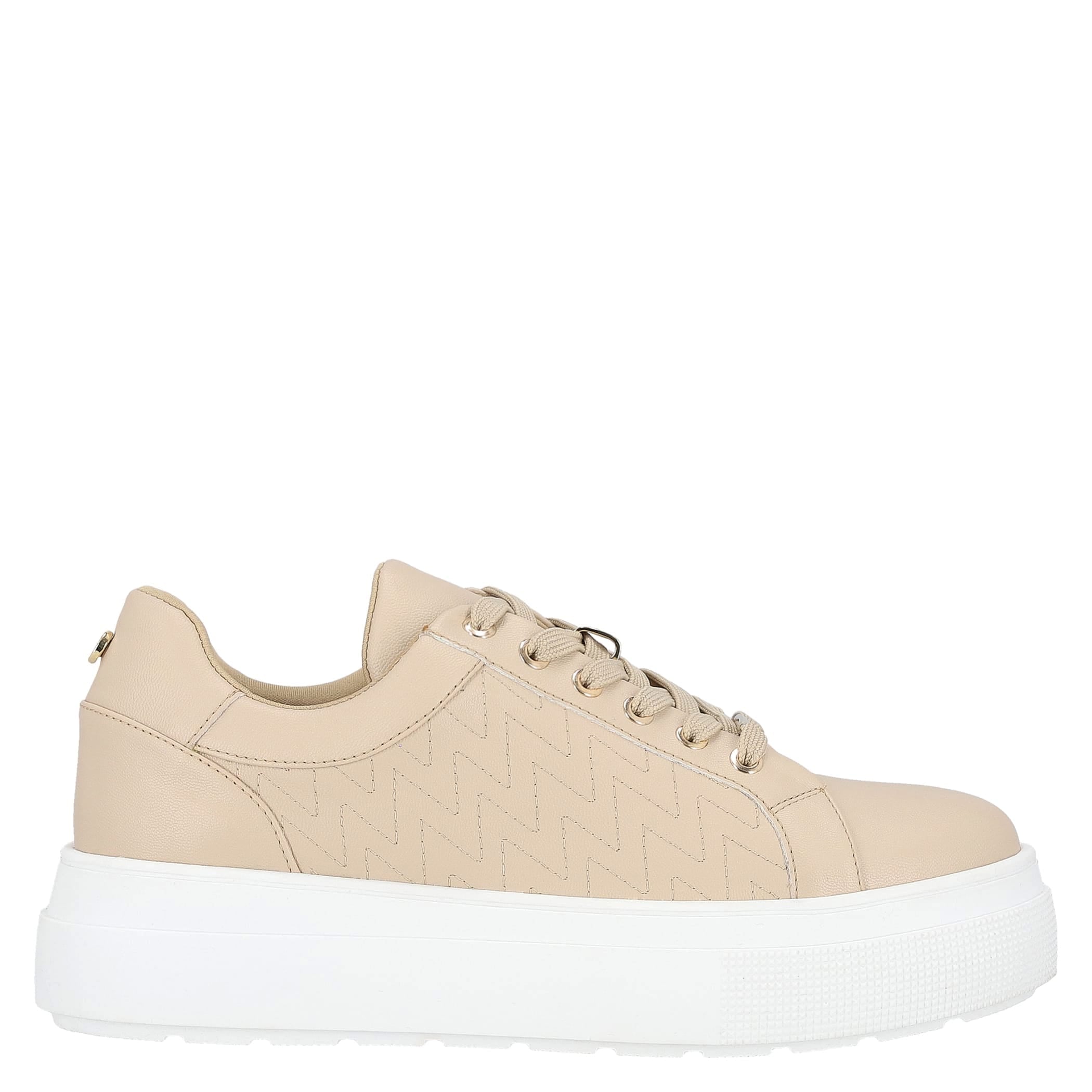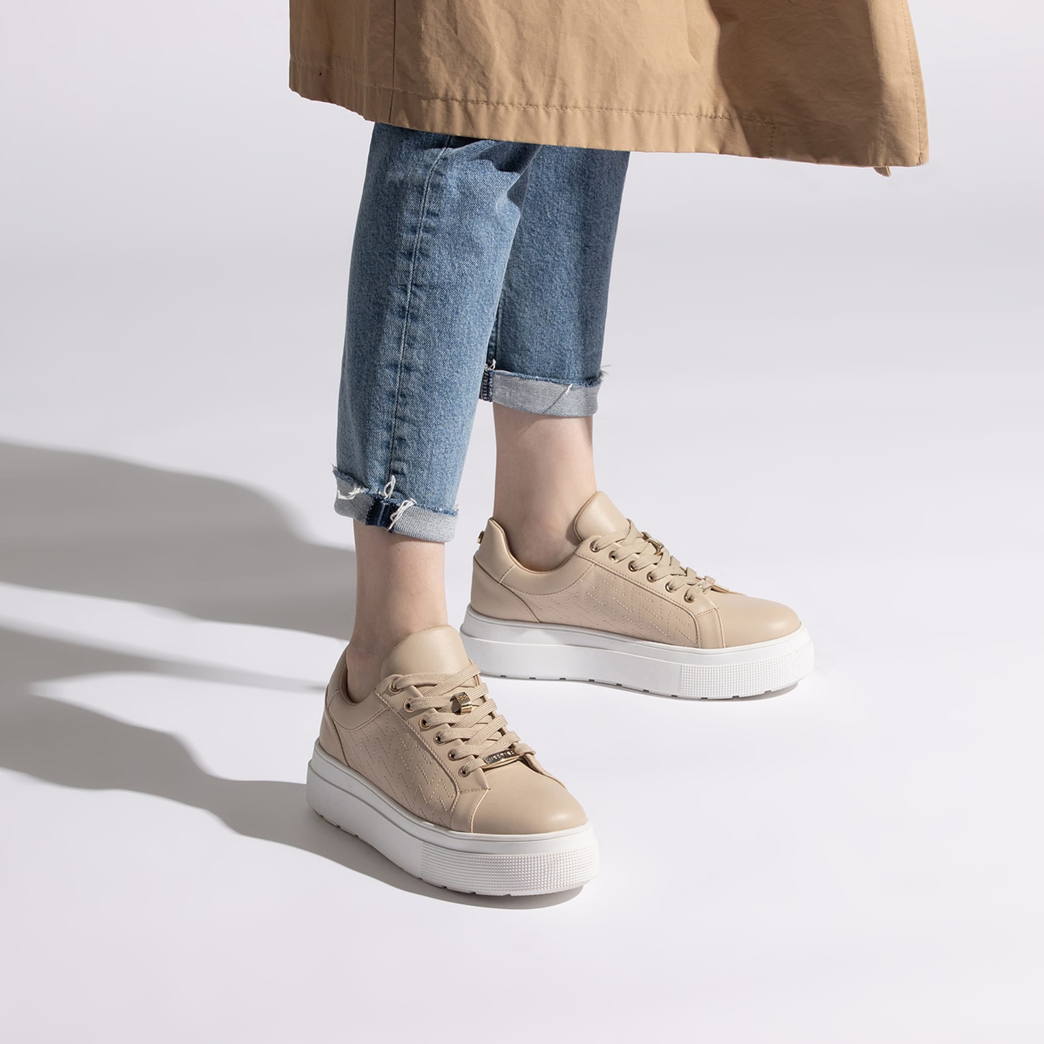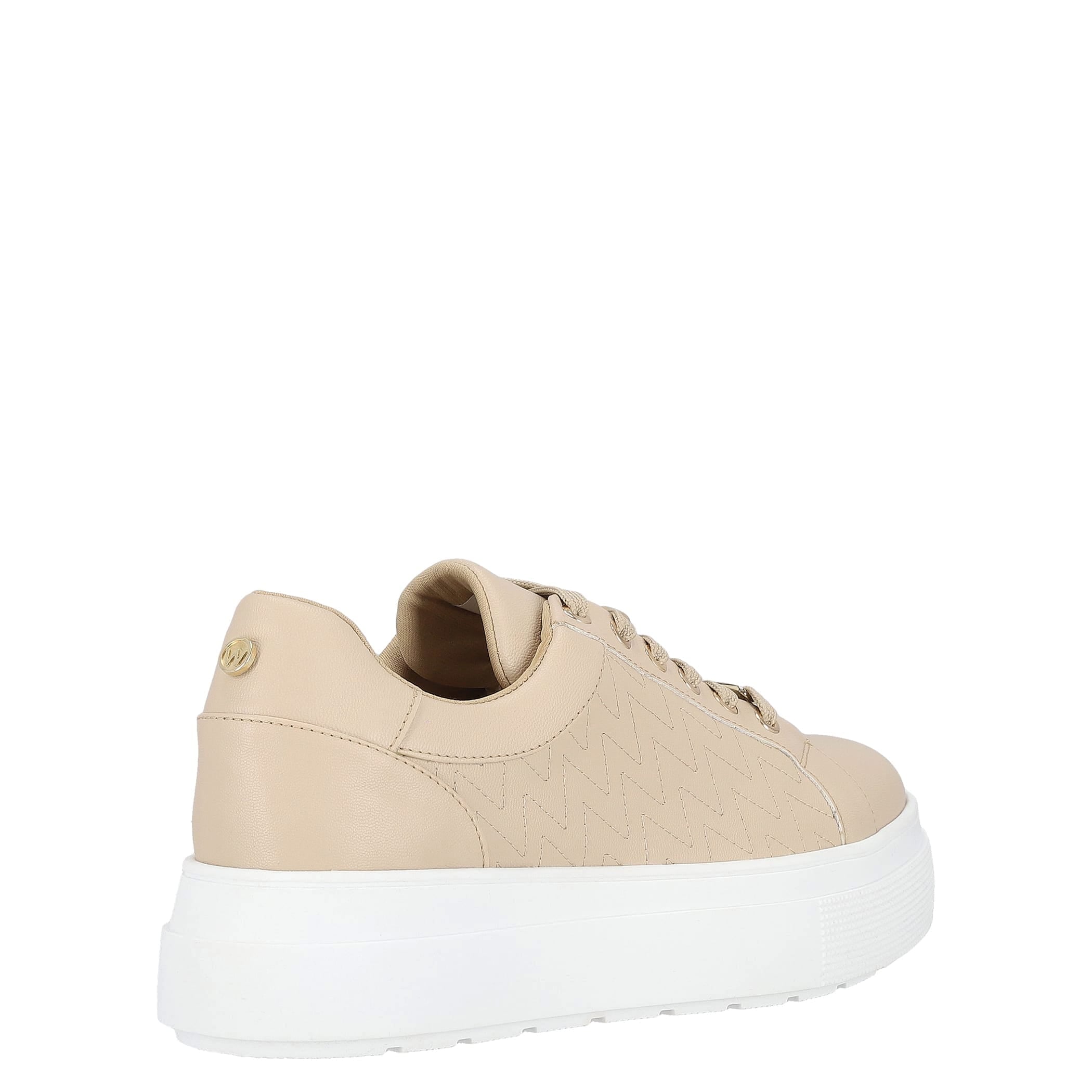 Tenis Westies para mujer elaborado en material sintético con aplicación bordado, fijación de agujeta, cuña flat con punta redonda, forro textil, suela sintética y textura lisa.