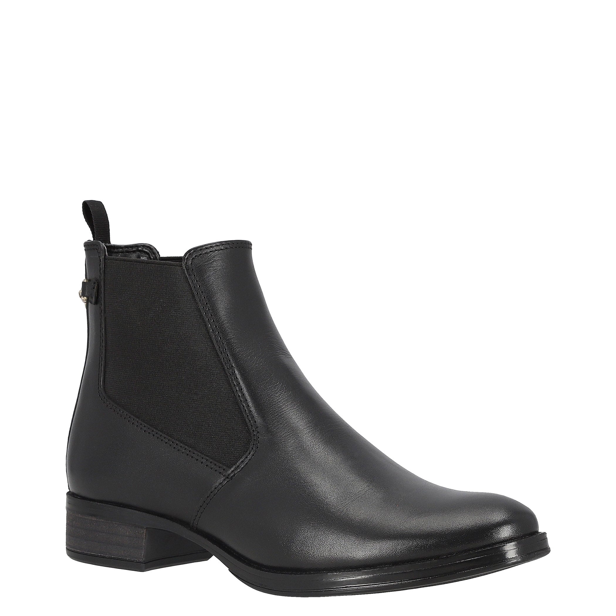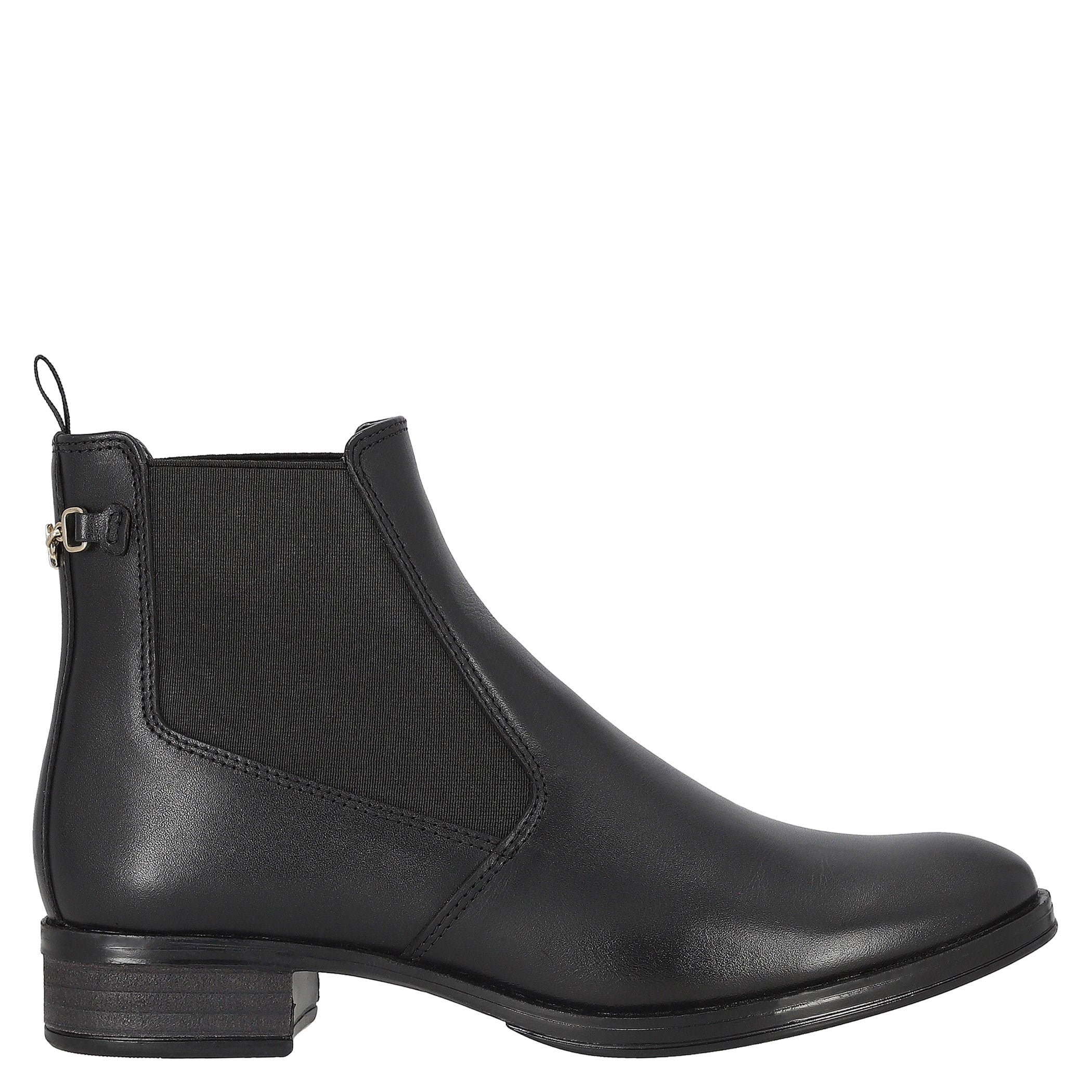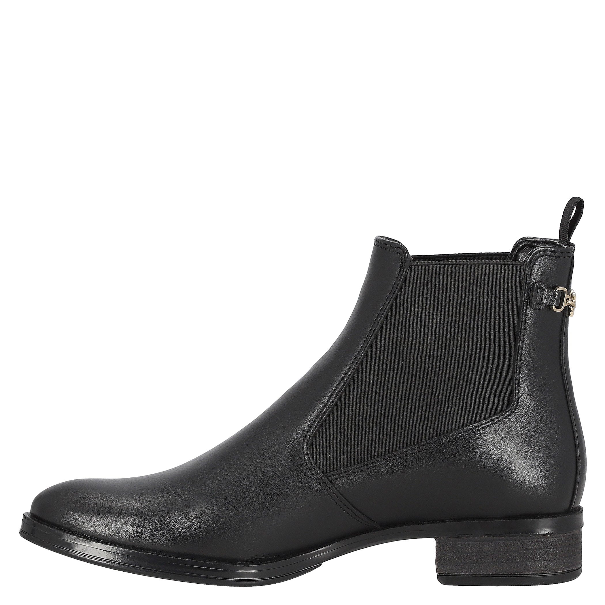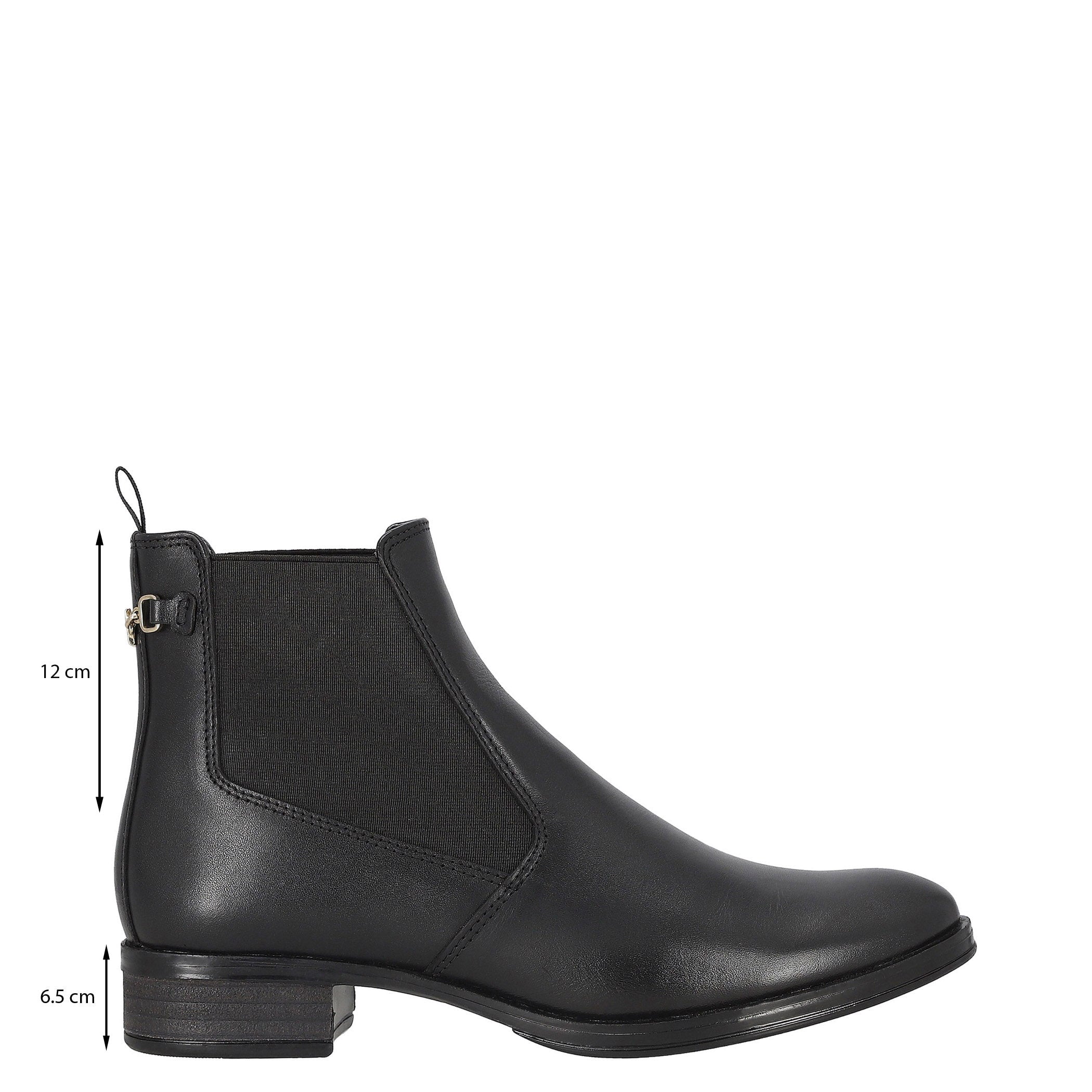 Botin Westies para mujer elaborado en material de piel con aplicación de herraje, estampado liso, fijación de cierre, punta redonda, textura lisa, suela de inyección y cuña flat.