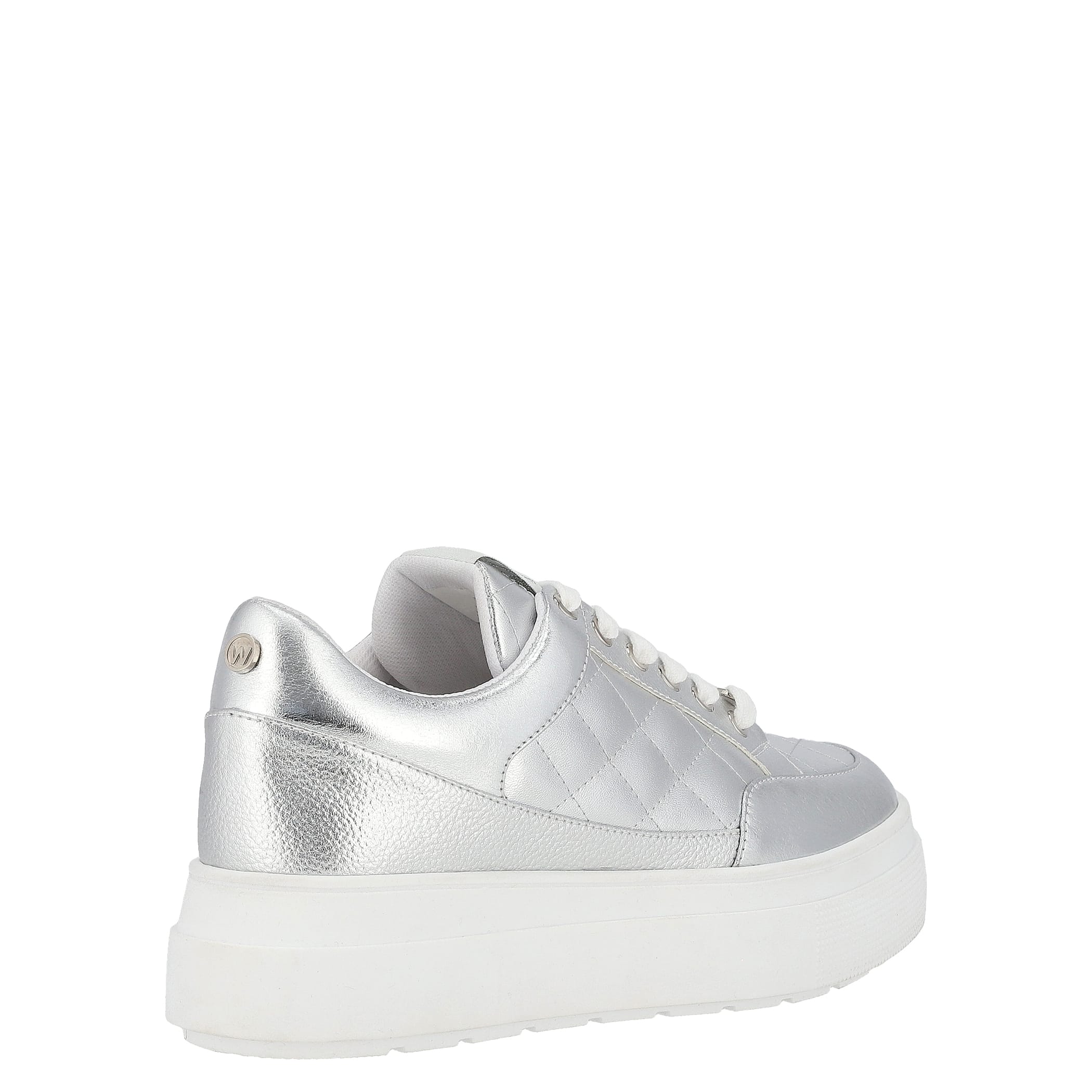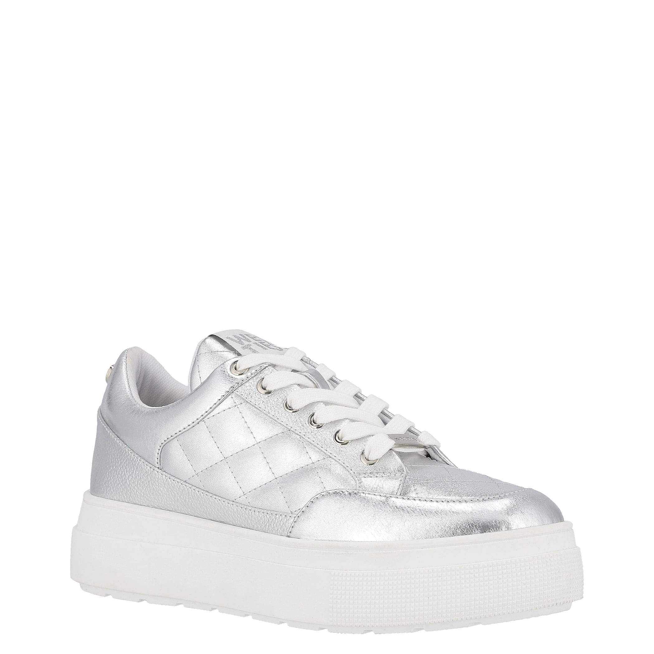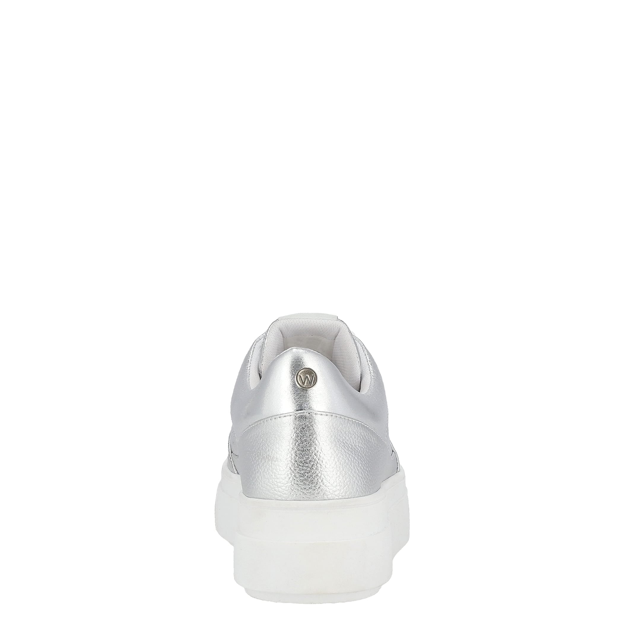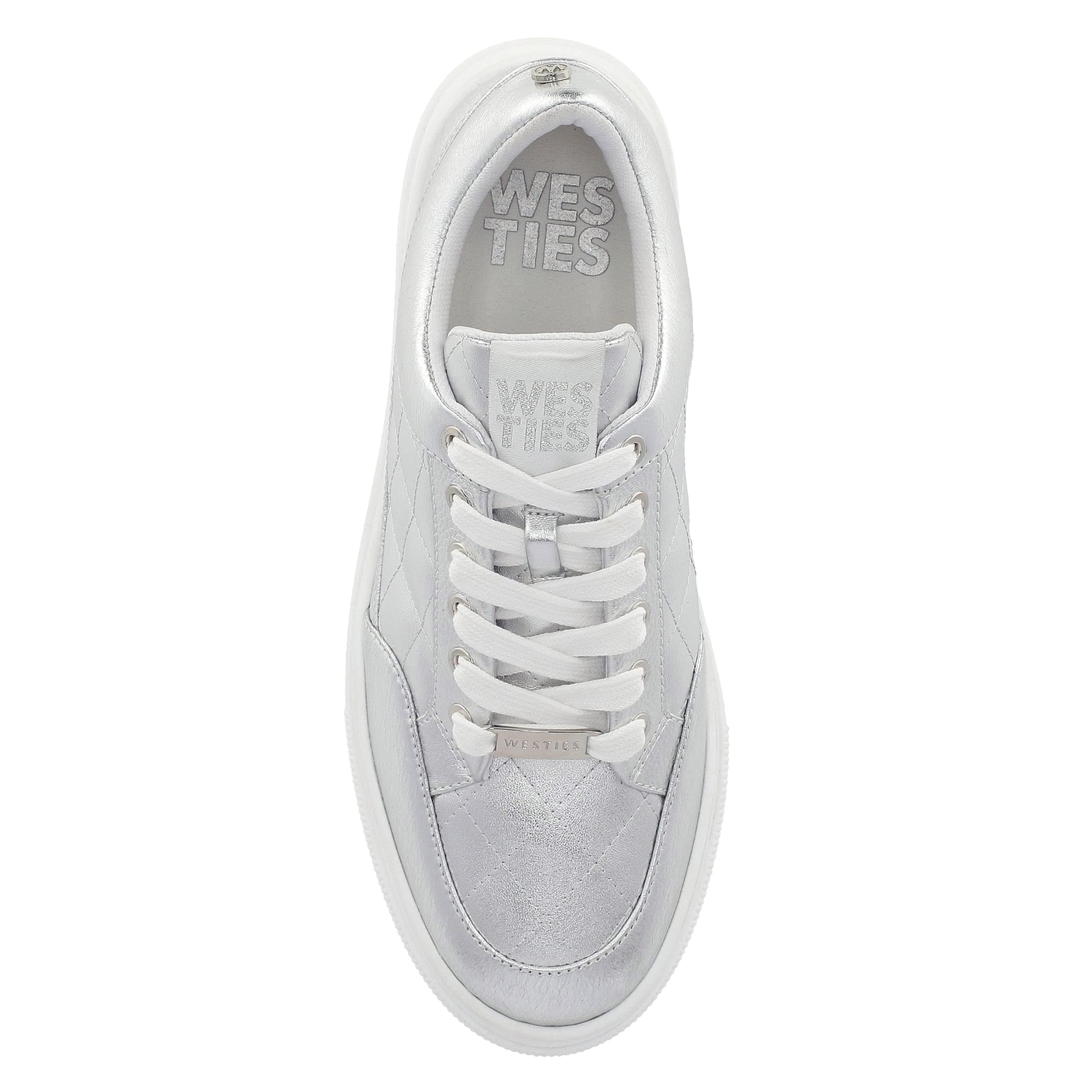 Tenis Westies para mujer elaborado en material sintético con aplicación bordado, fijación de agujeta, cuña flat con punta redonda, forro textil, suela de inyección, y textura lisa.