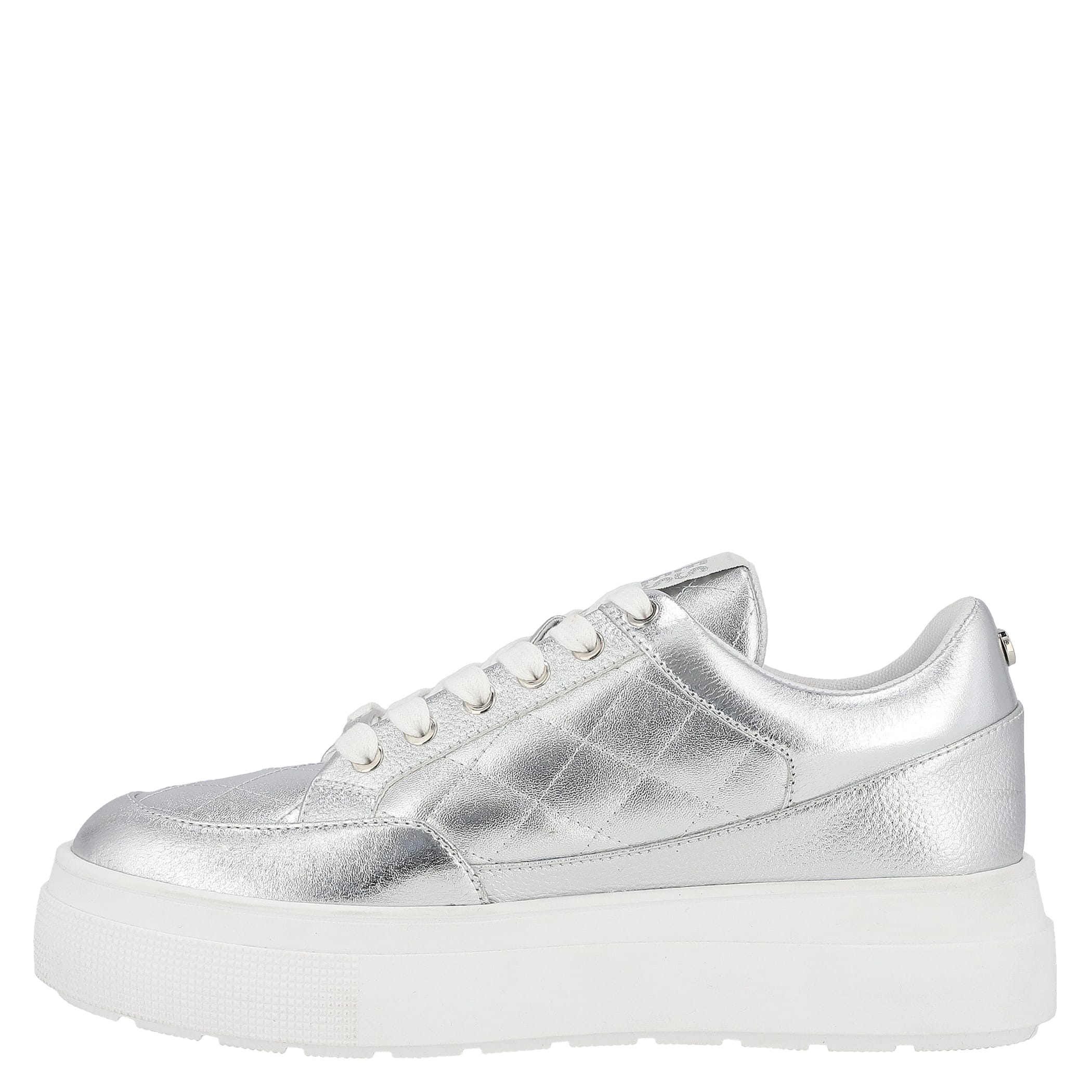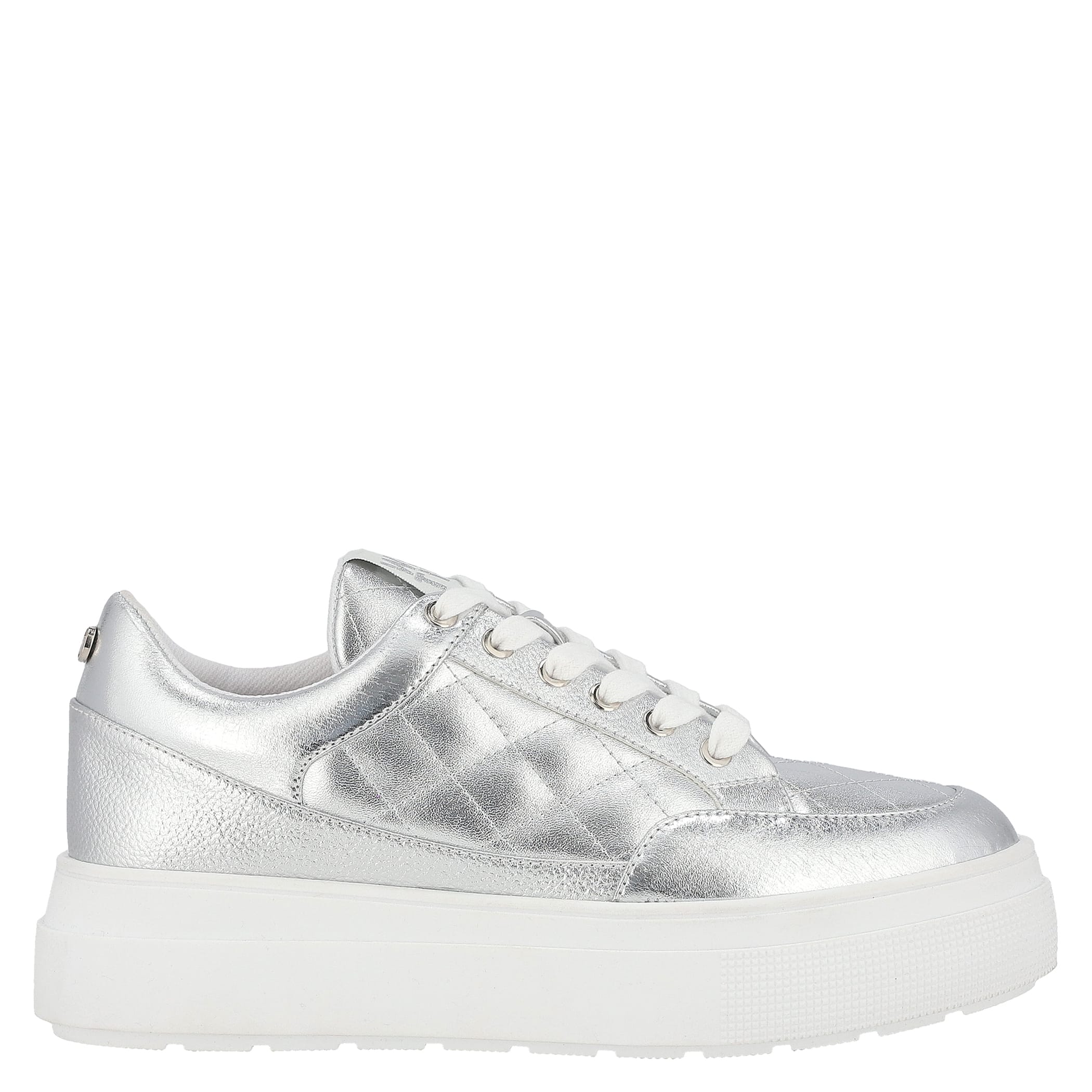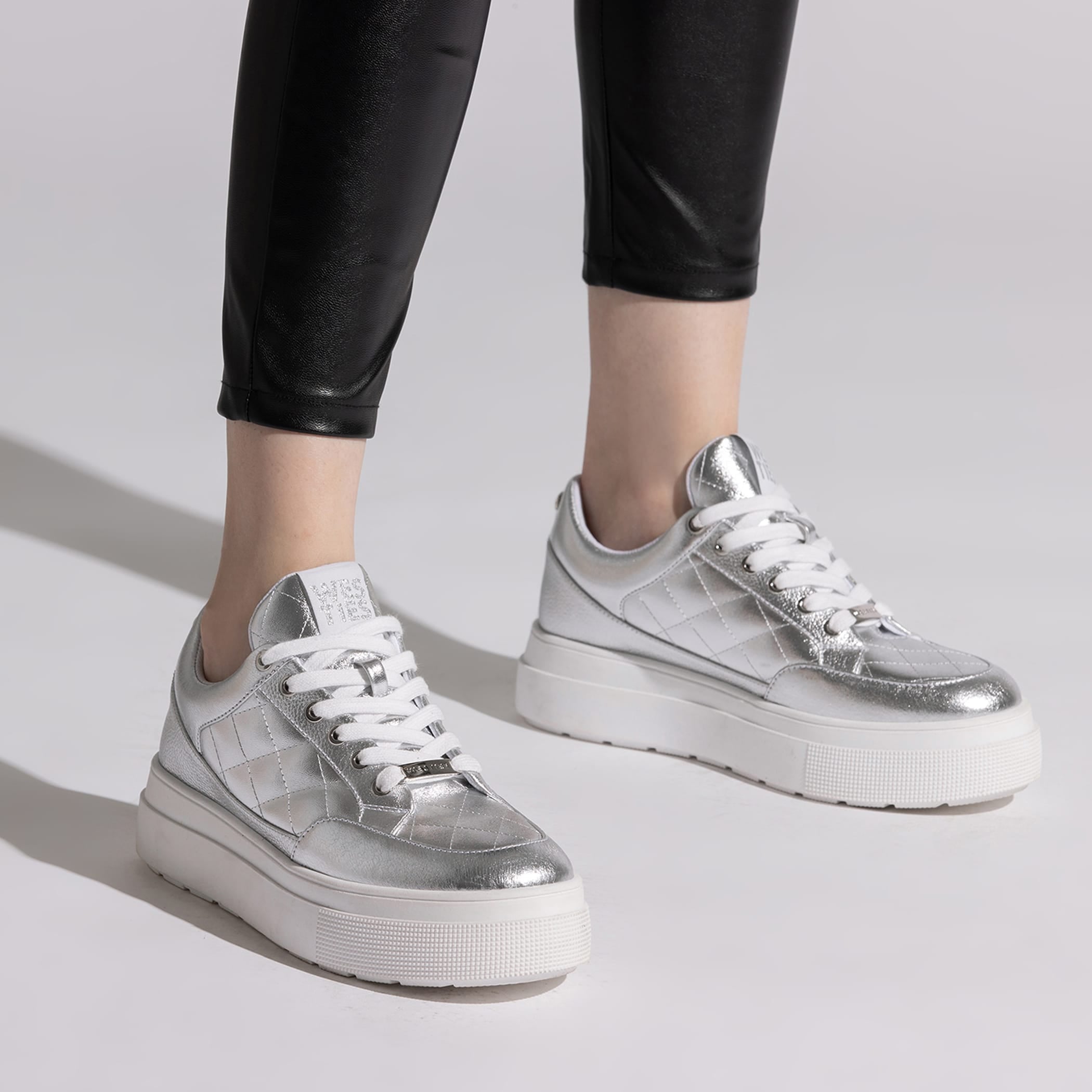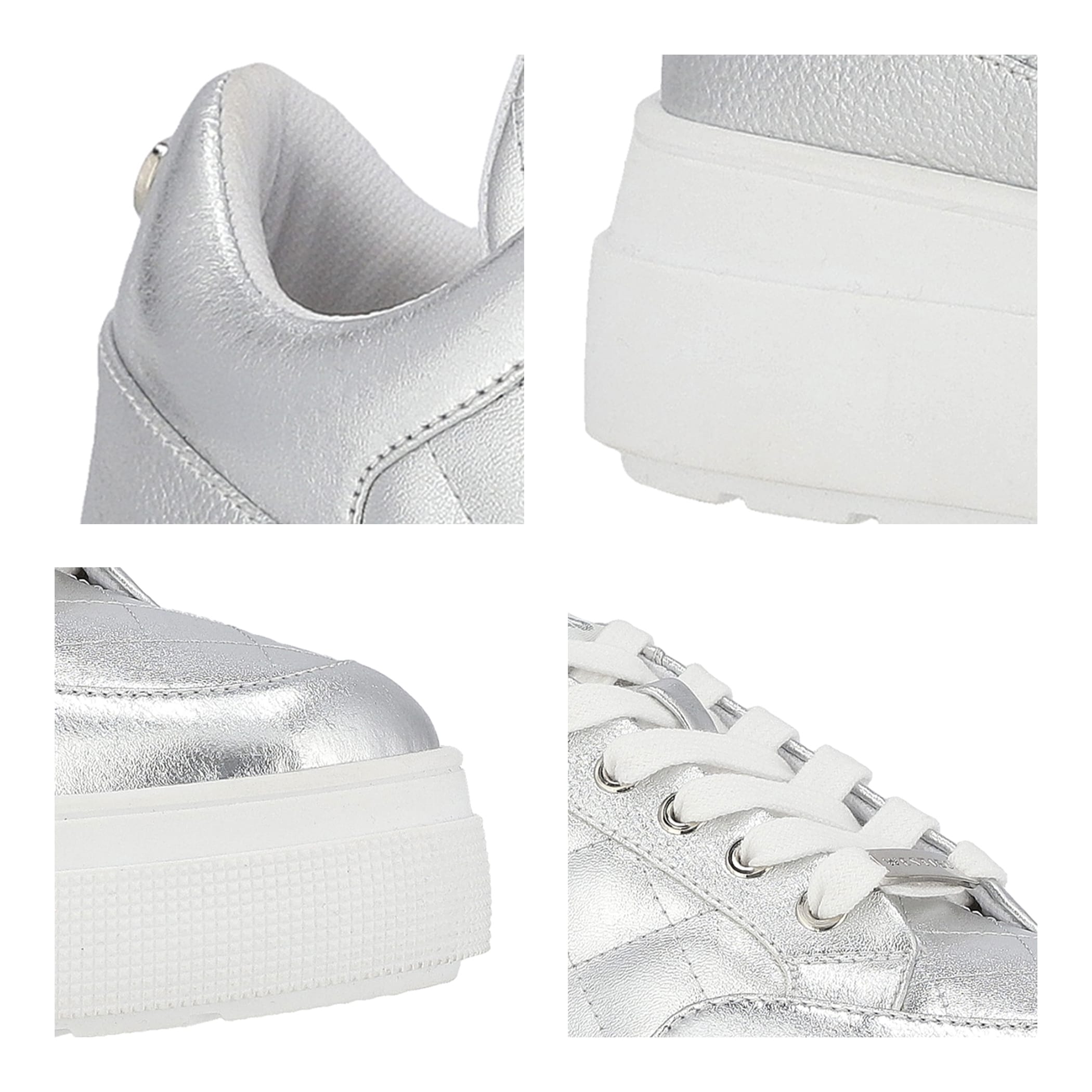 Tenis Westies para mujer elaborado en material sintético con aplicación bordado, fijación de agujeta, cuña flat con punta redonda, forro textil, suela de inyección, y textura lisa.