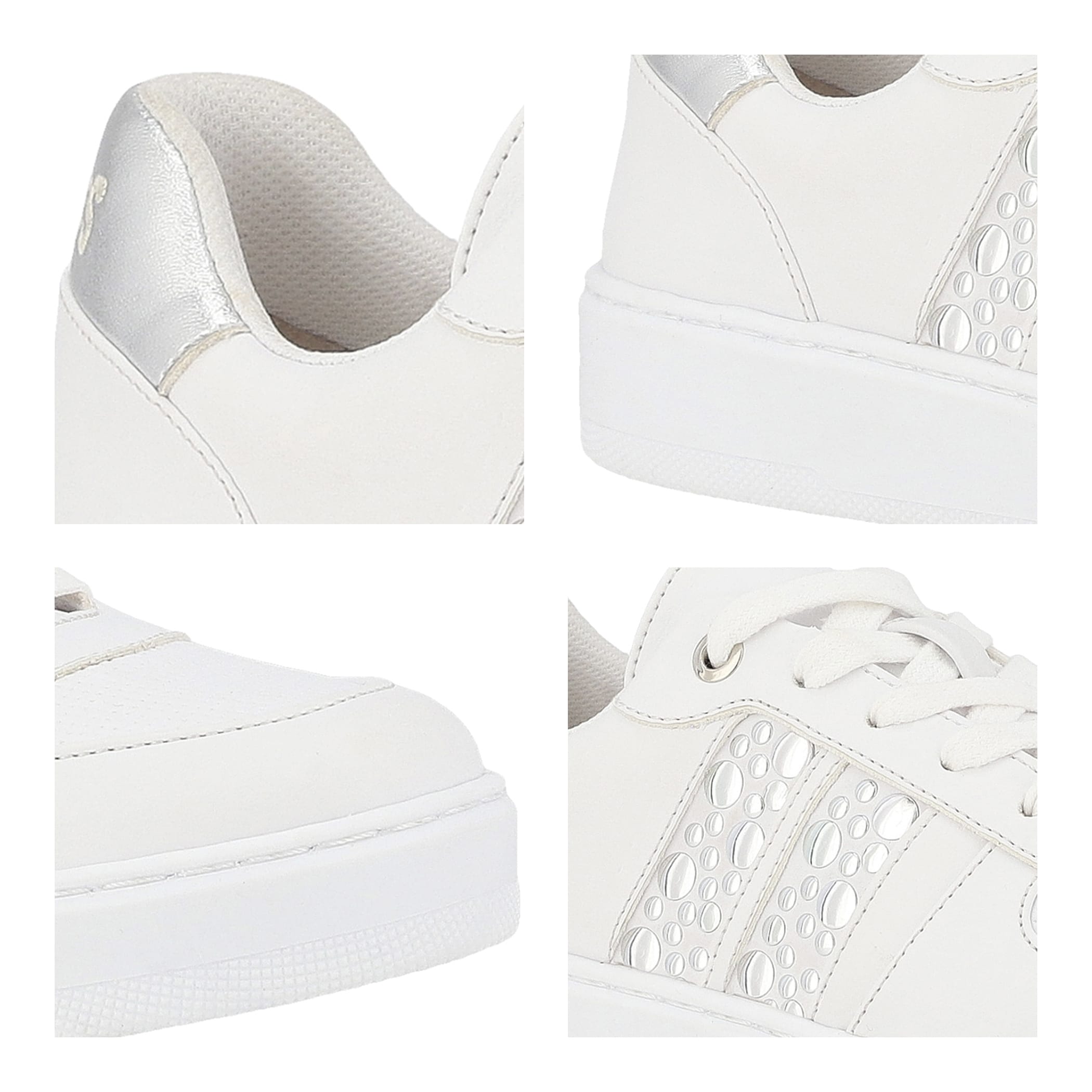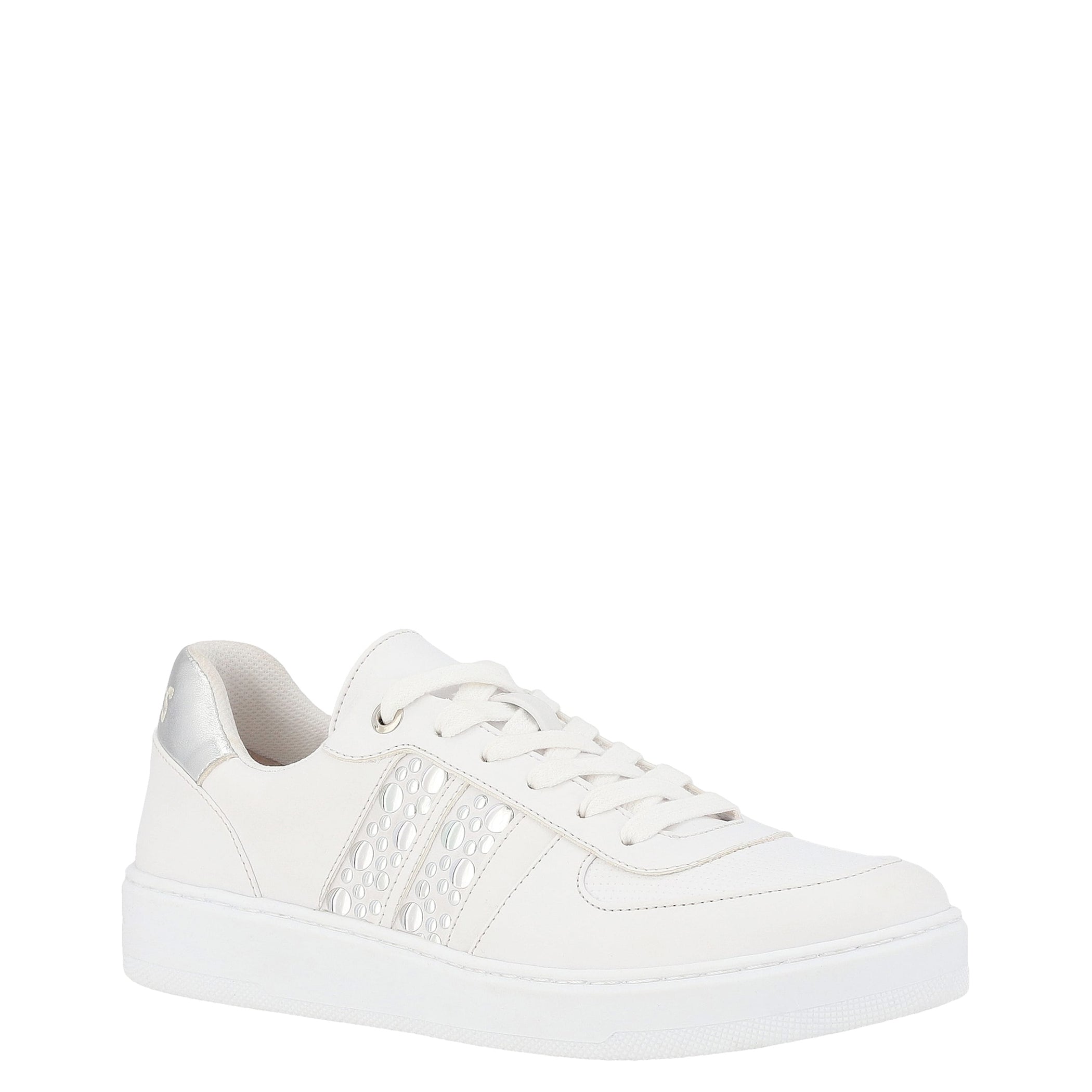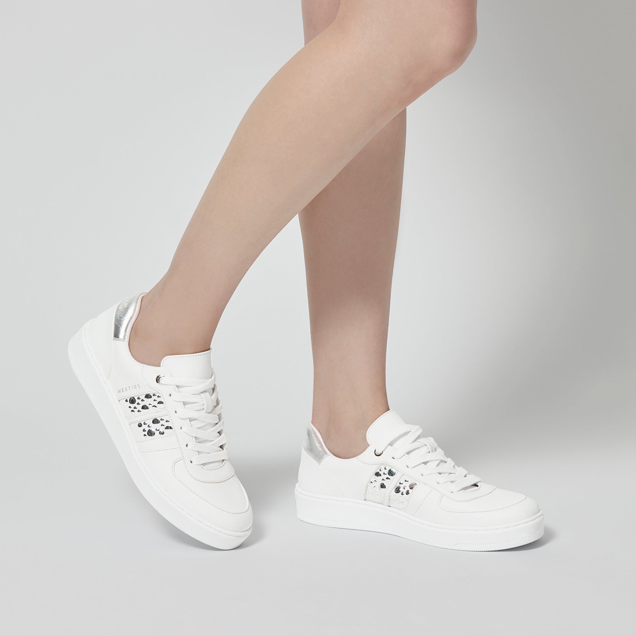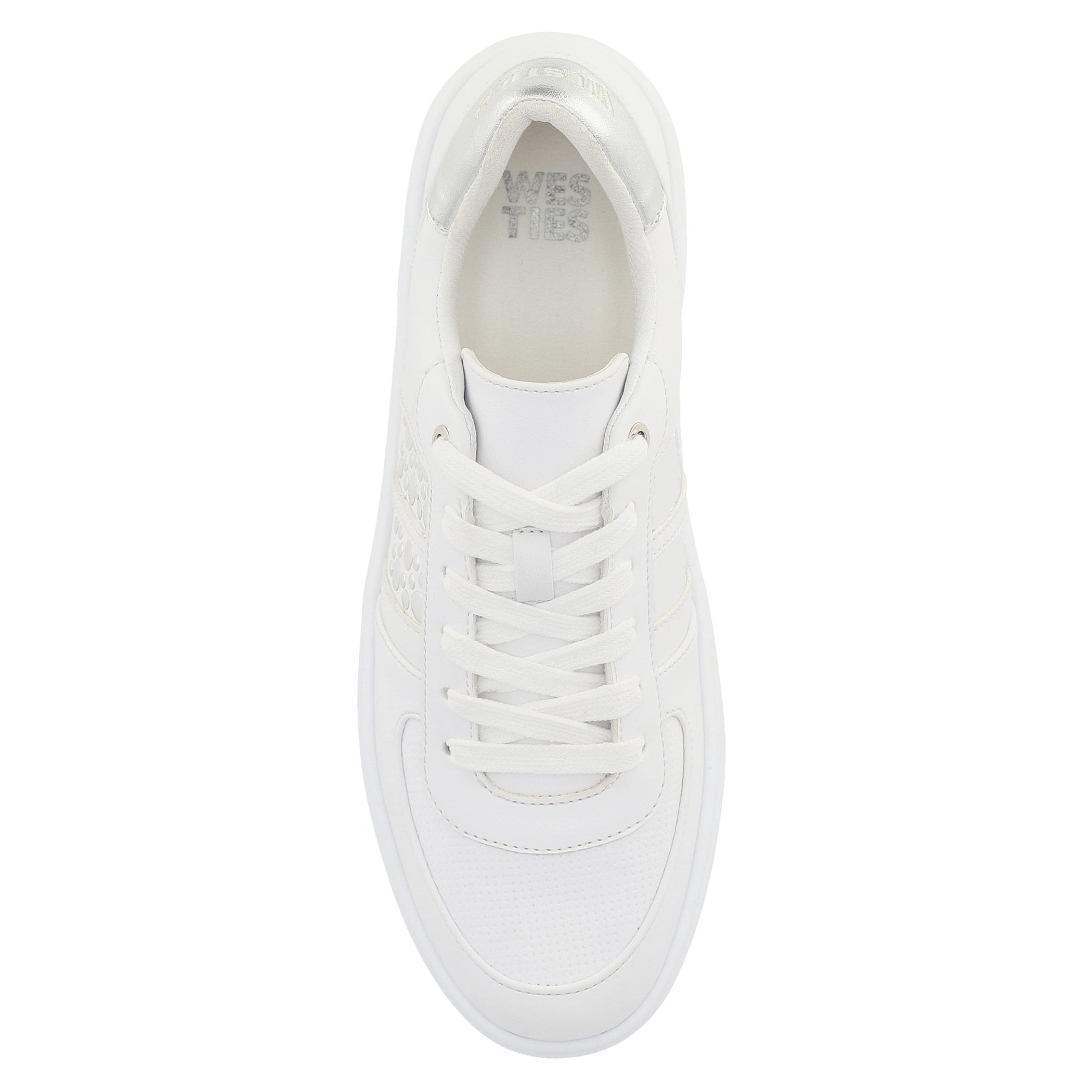 Tenis Westies para mujer elaborado en material sintético con aplicación de estoperol, estampado liso, fijación de agujeta, punta redonda, textura lisa, forro textil, cuña flat y suela de inyección.