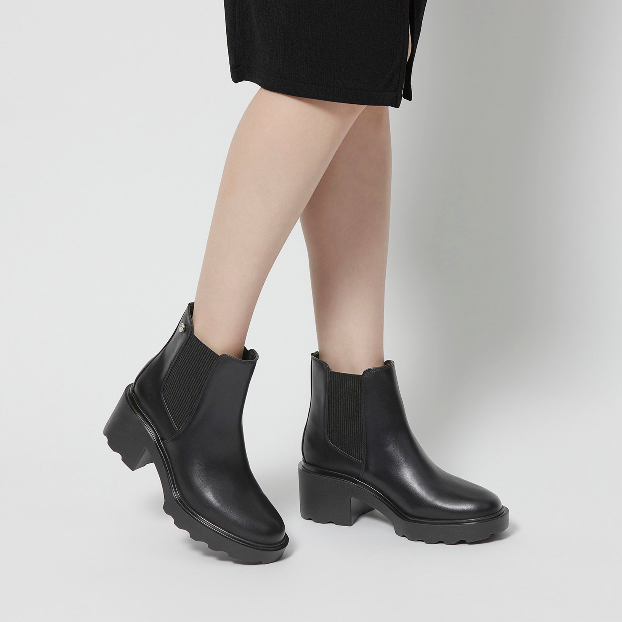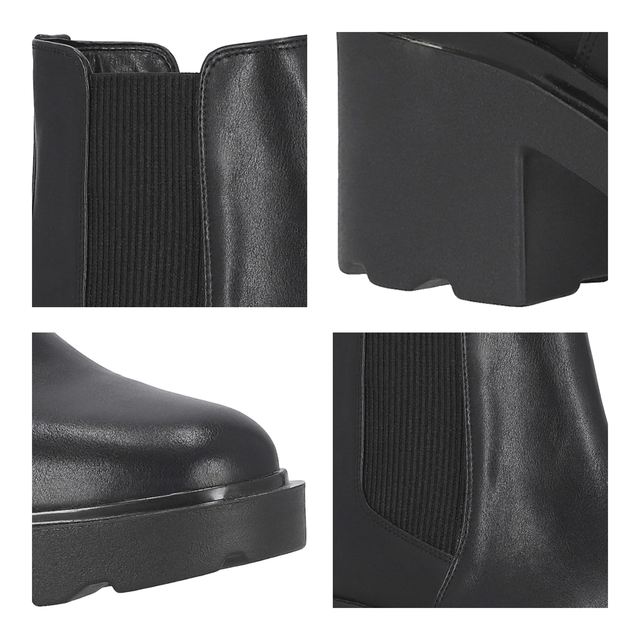 Botín Westies para mujer elaborado en material sintético con aplicación lisa, estampado liso, fijación de elástico, punta redonda, textura lisa y cuña baja.