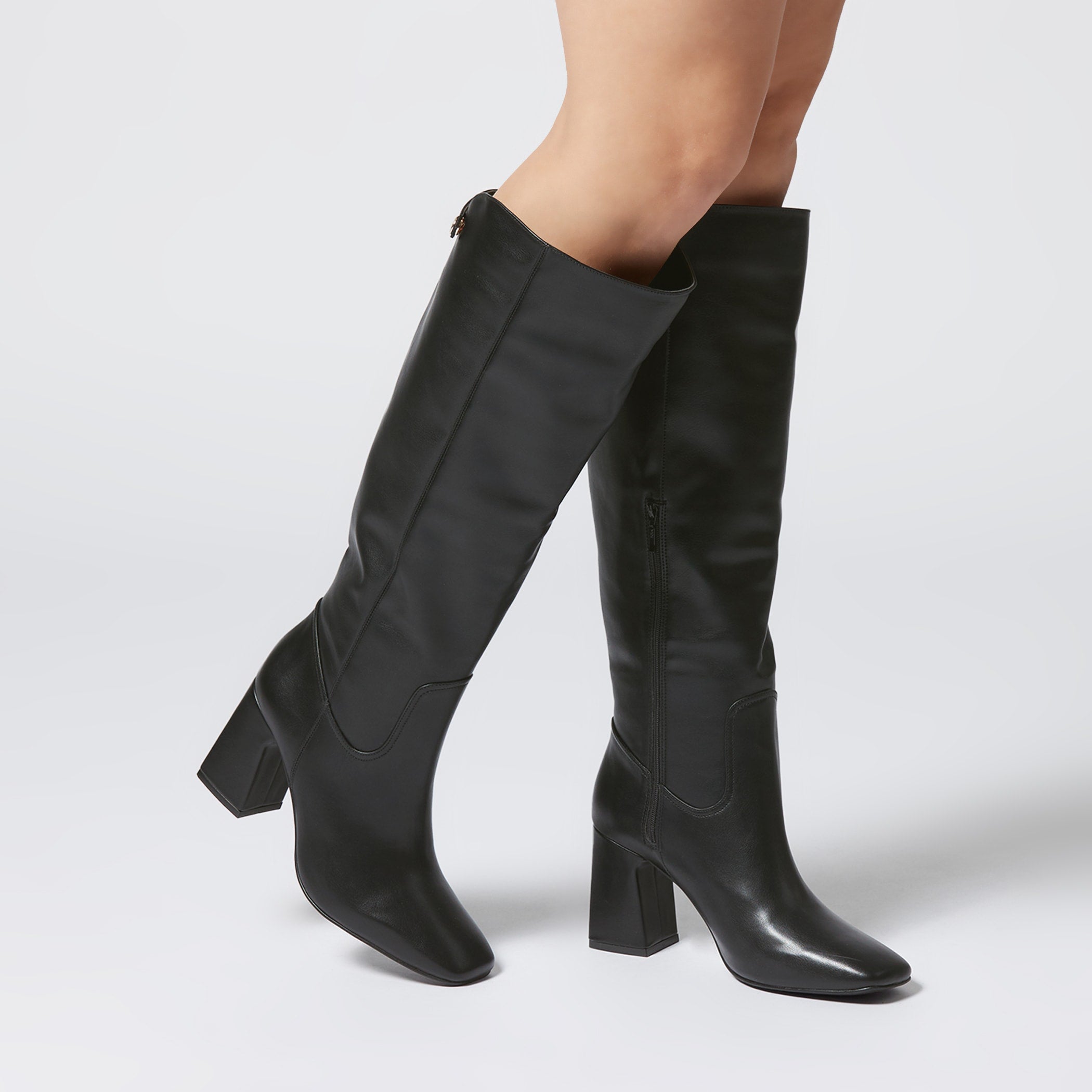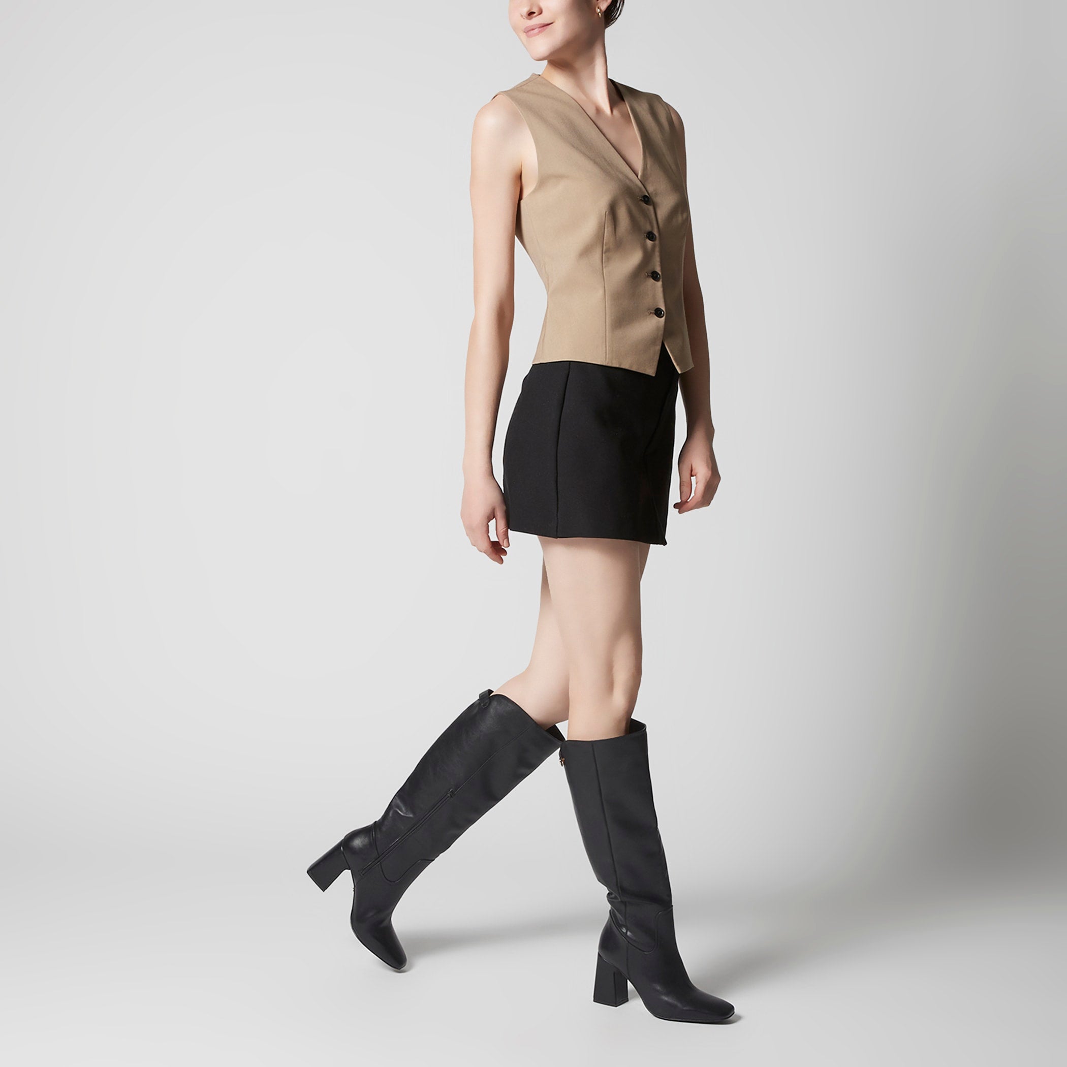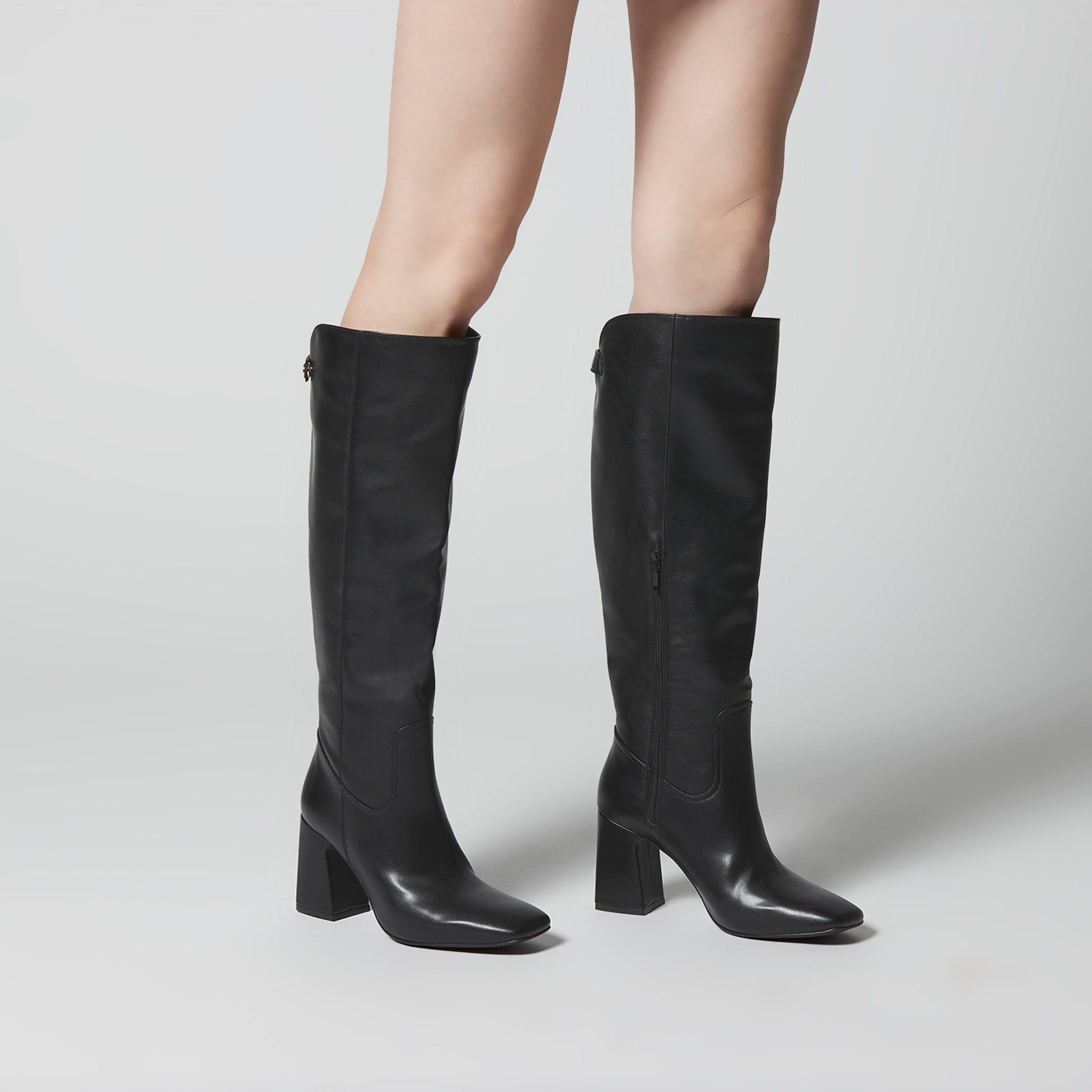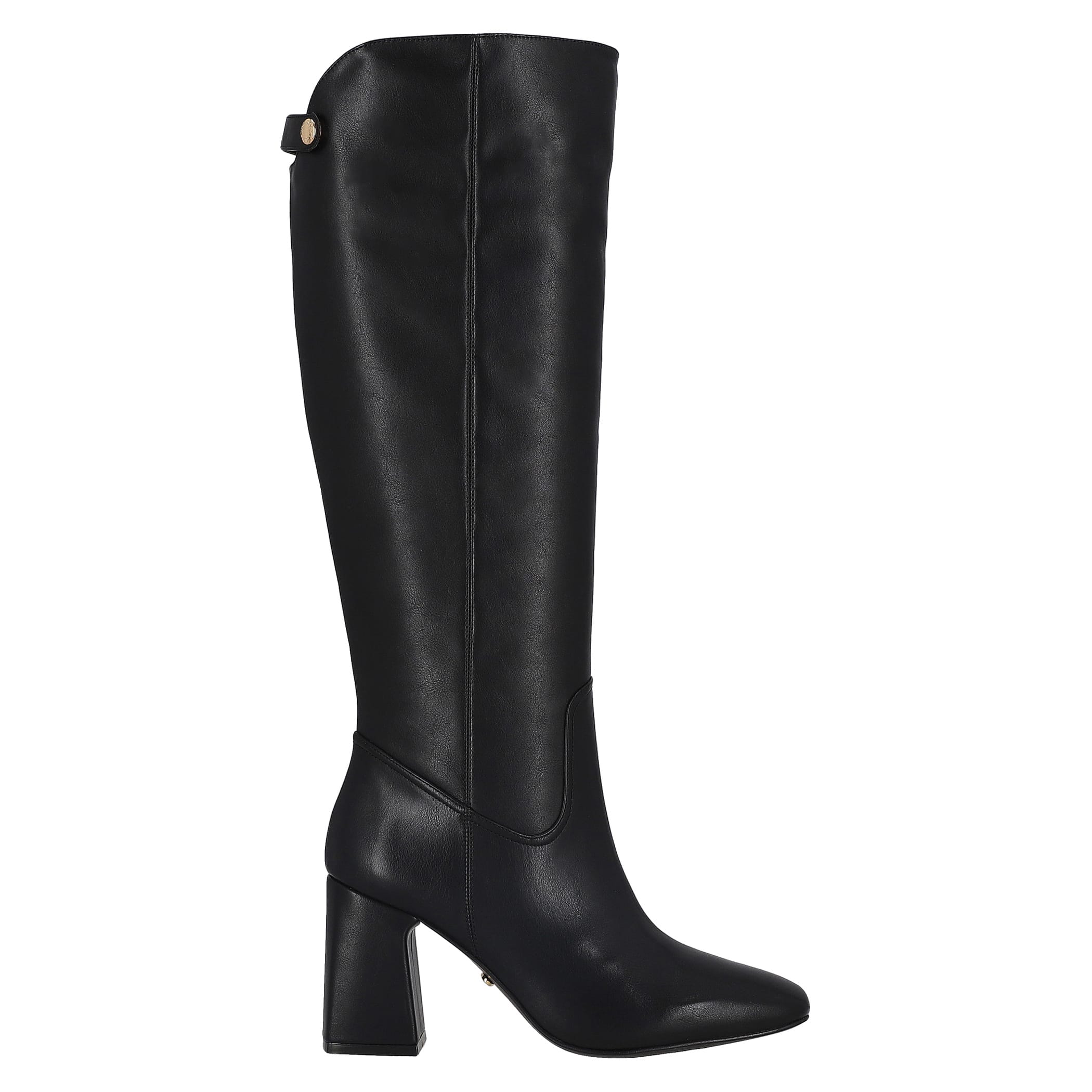 Bota alta Westies para mujer elaborado en material sintético con aplicación lisa, estampado liso, fijación de cierre, punta cuadrada, textura lisa, cuña baja y forro textil.