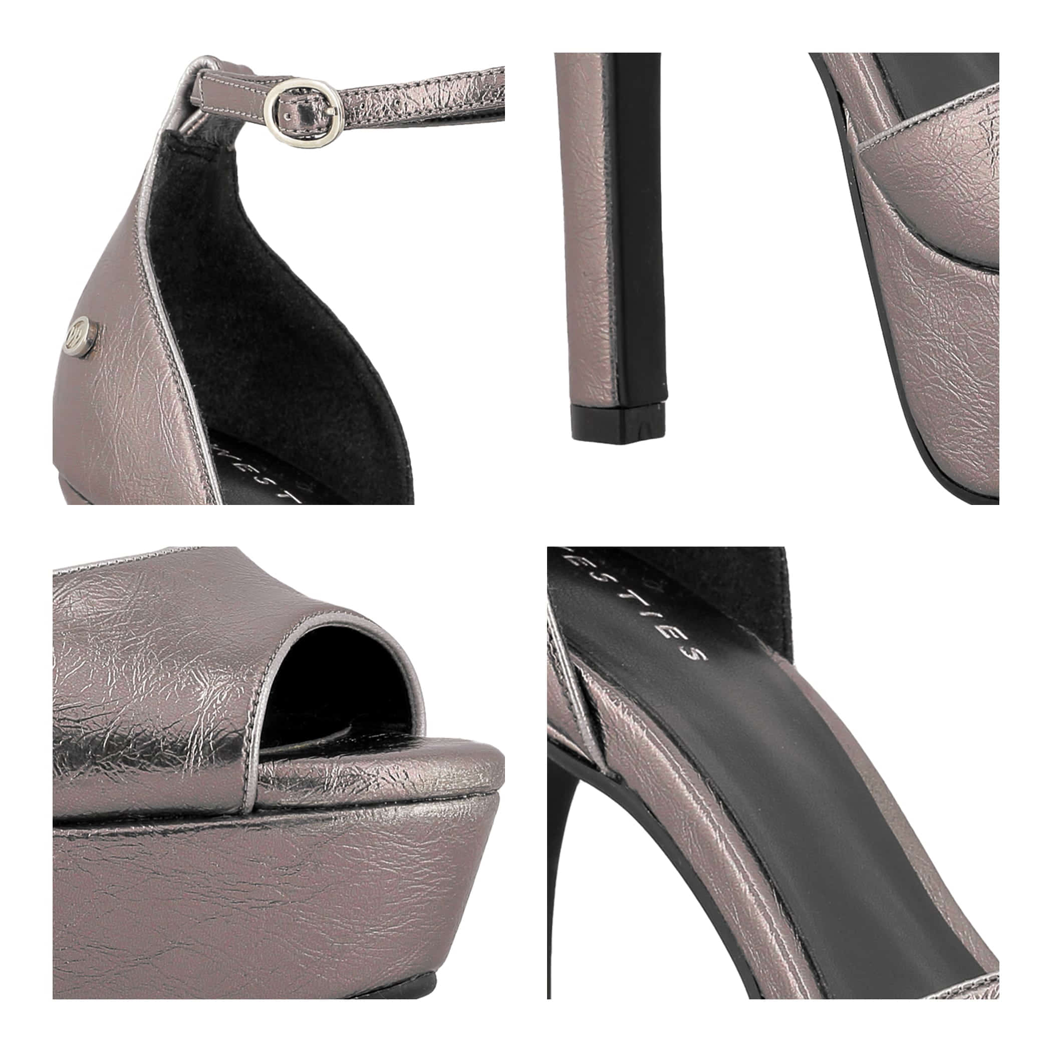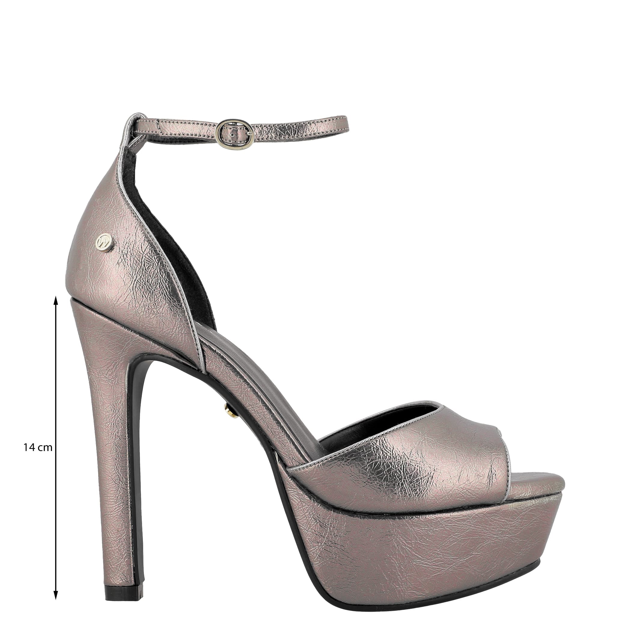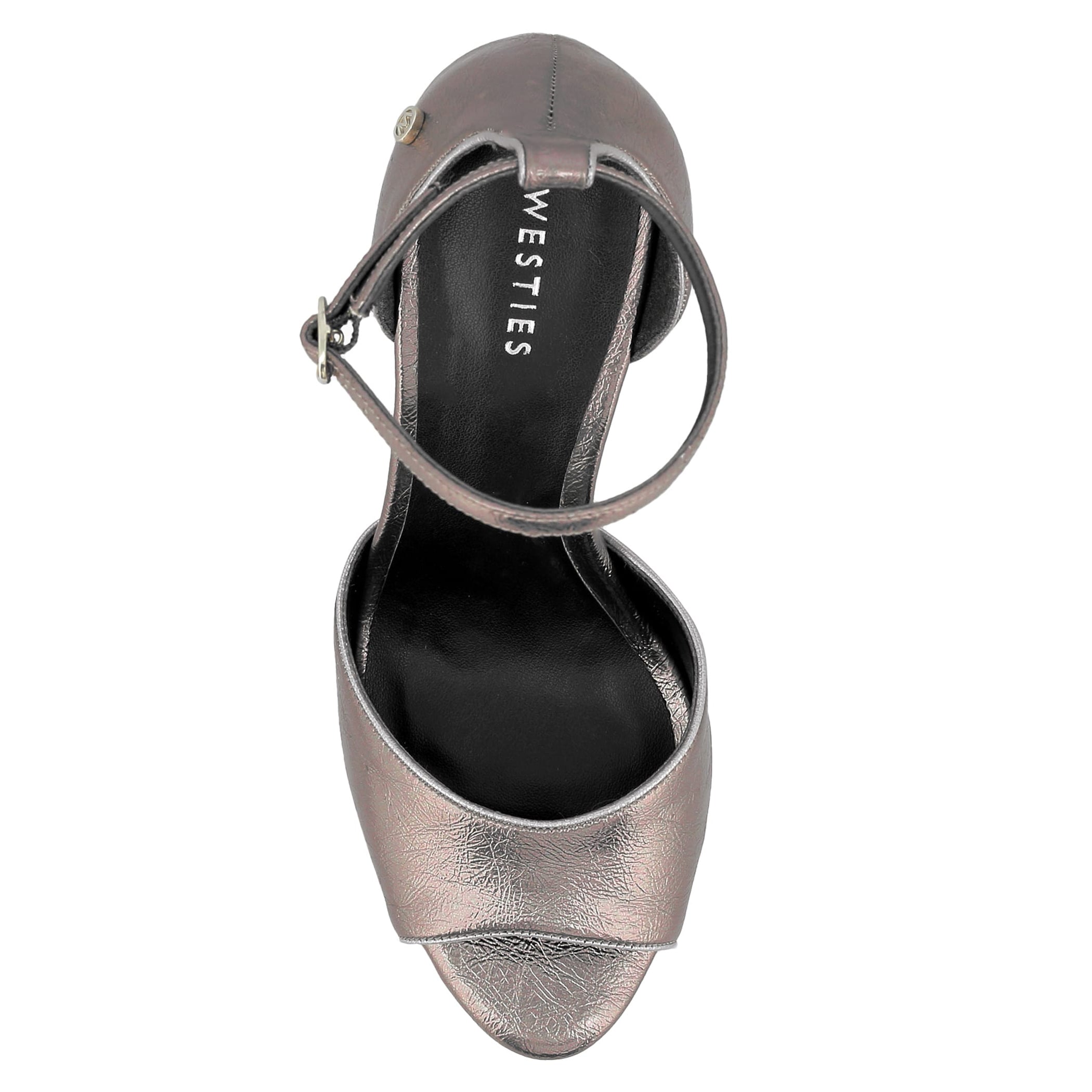 Sandalia Westies para mujer elaborado en material sintético con aplicación liso, estampado liso, forro sintético, suela pre-acabada, fijación hebilla, punta boca de pescado, textura lisa, con una altura de tacón 14 cm.
