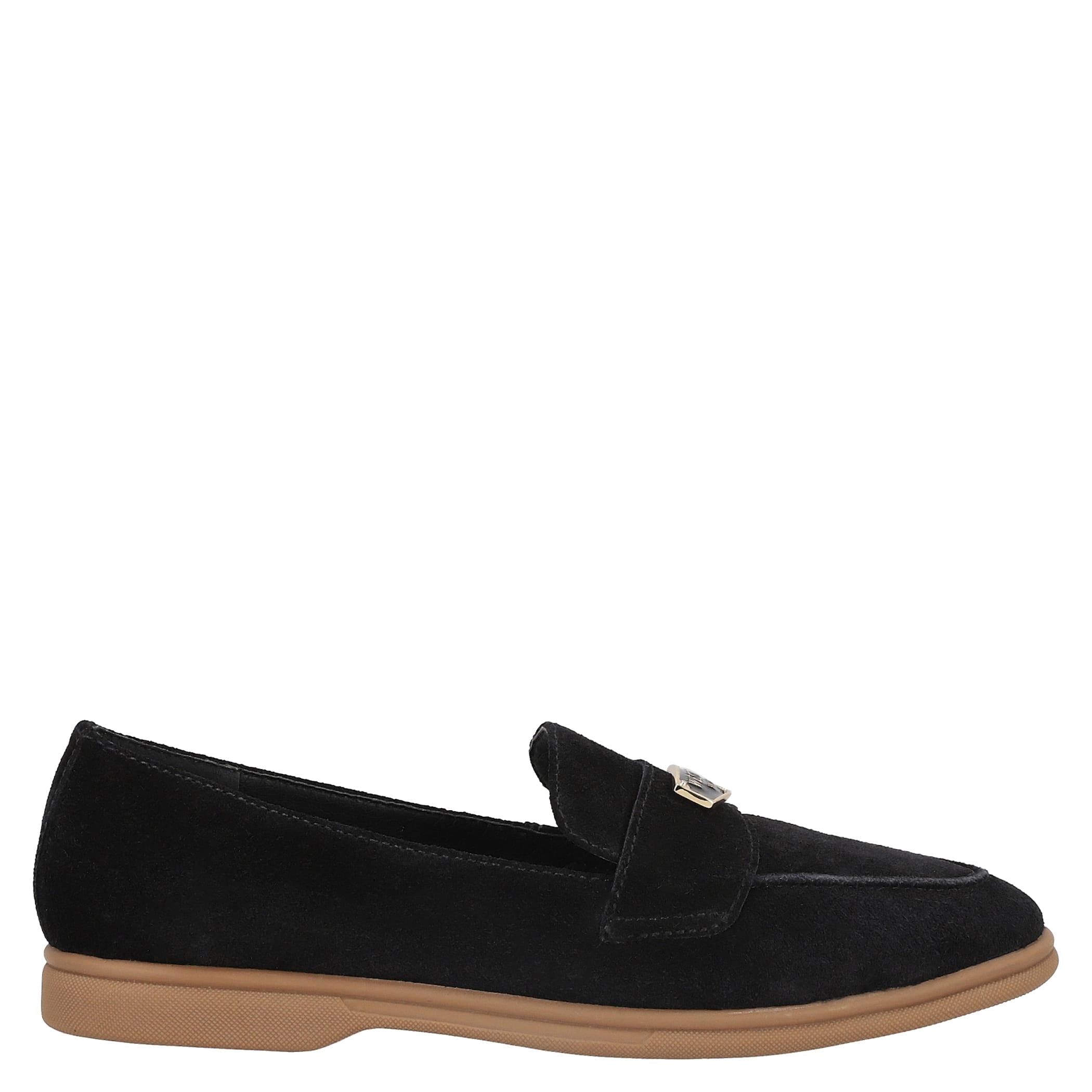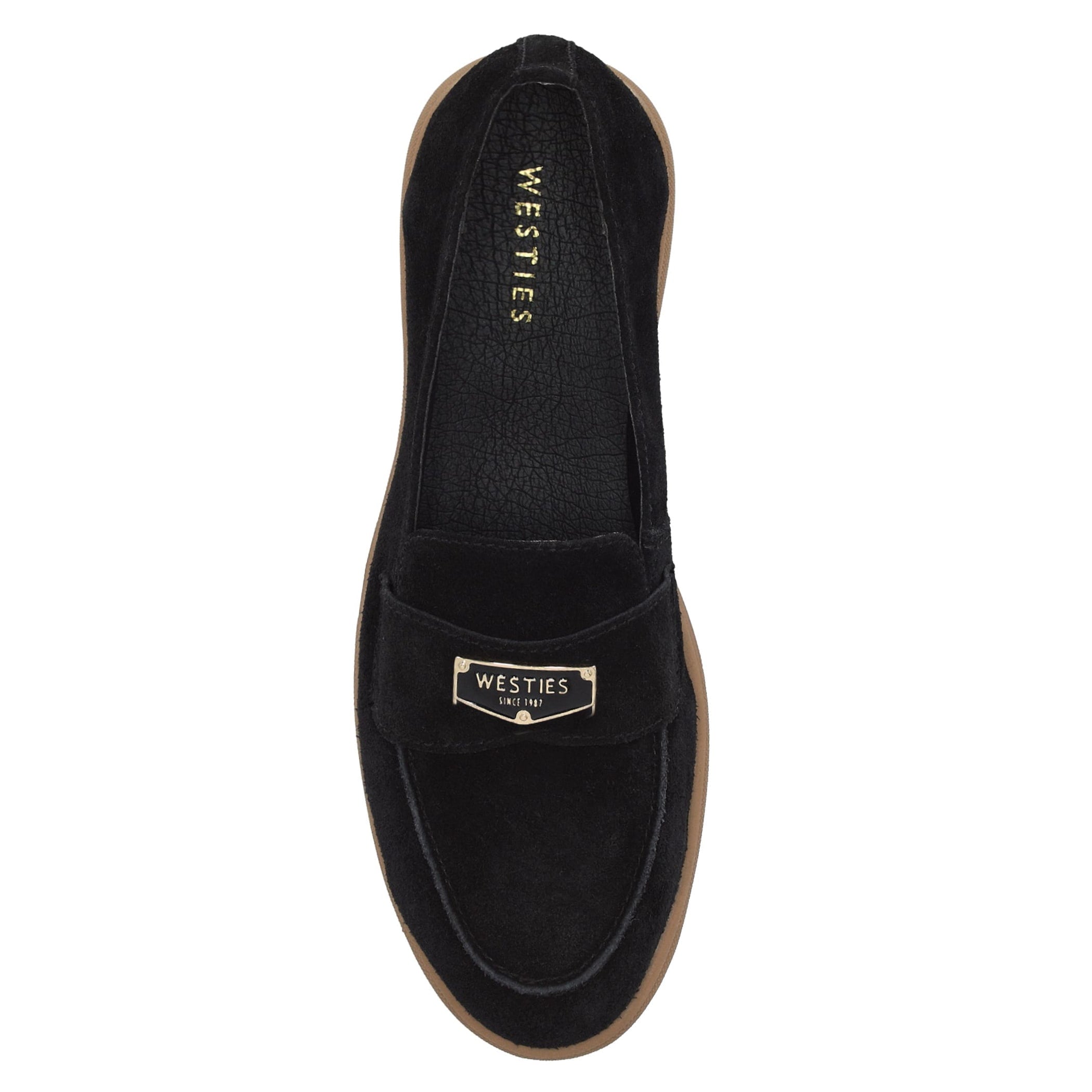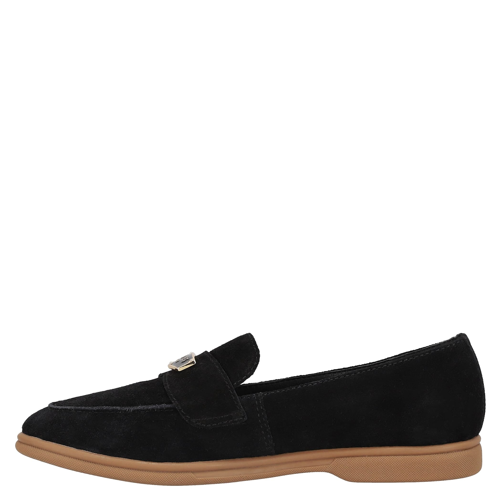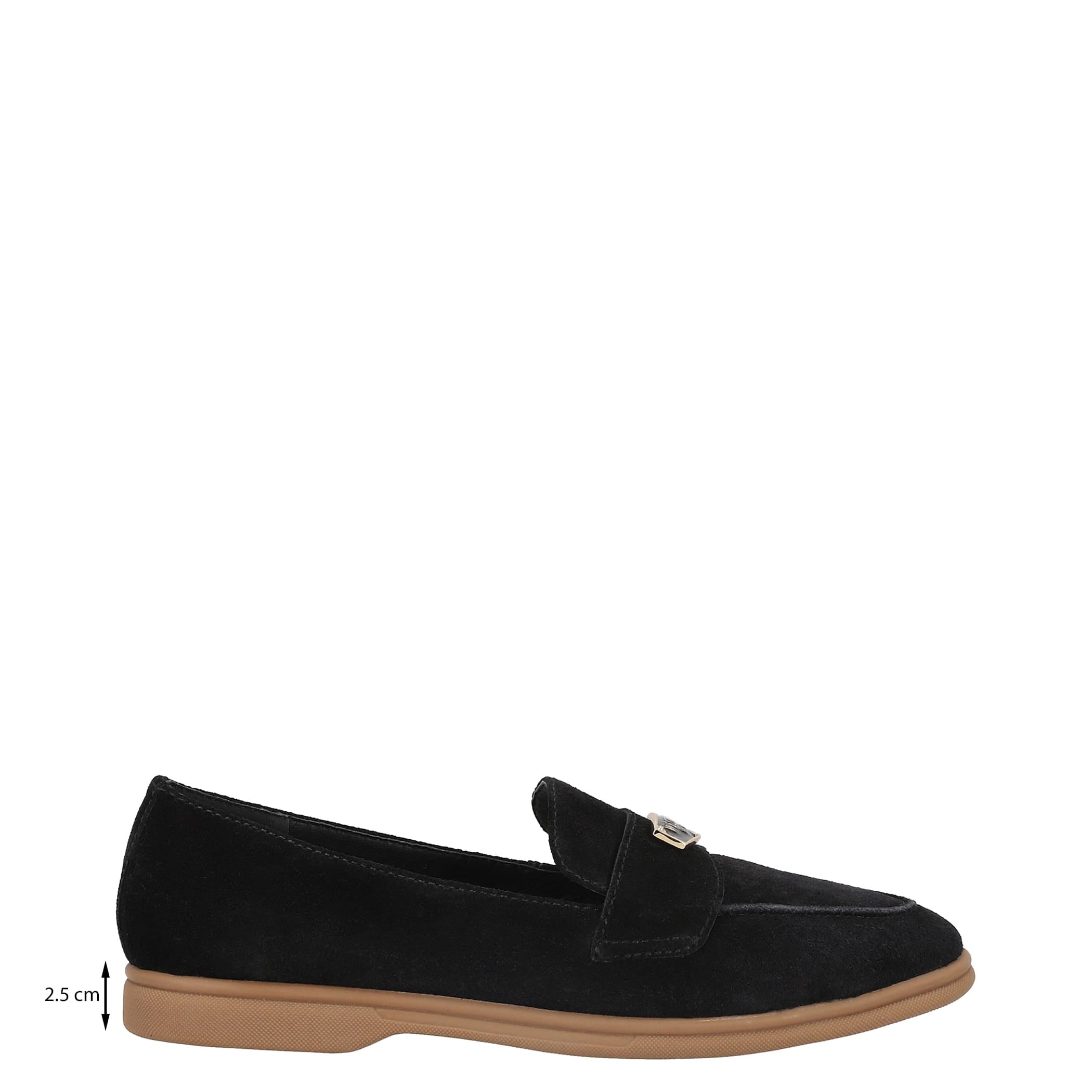 Estos mocasines Westies combinan elegancia y comodidad en un diseño clásico y versátil. Confeccionados en material gamuza con estampado liso y textura lisa, su estilo atemporal se complementa con la aplicación de herraje, aportando un toque sofisticado. La punta redonda y la fijación abierta aseguran un ajuste cómodo, mientras que la cuña flat y el tacón de 2.5 cm brindan estabilidad y confort para el día a día.