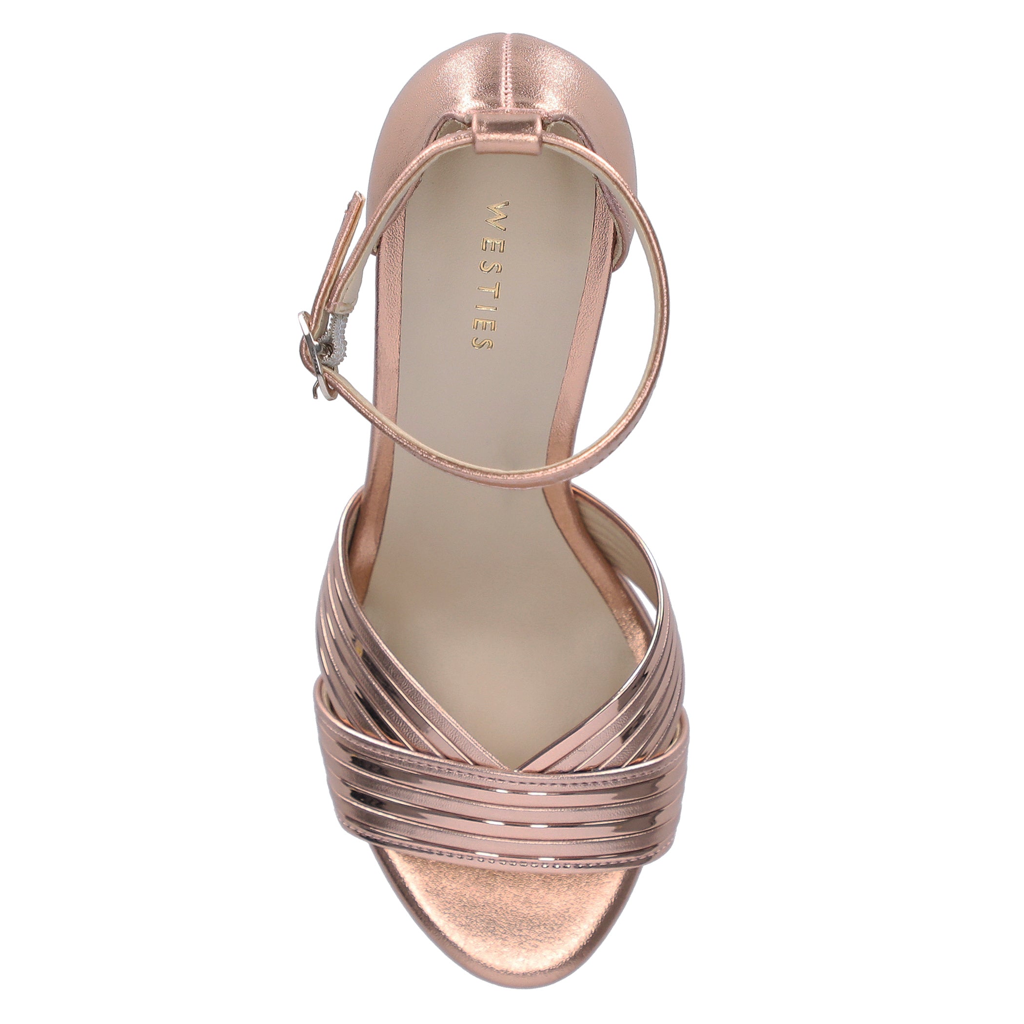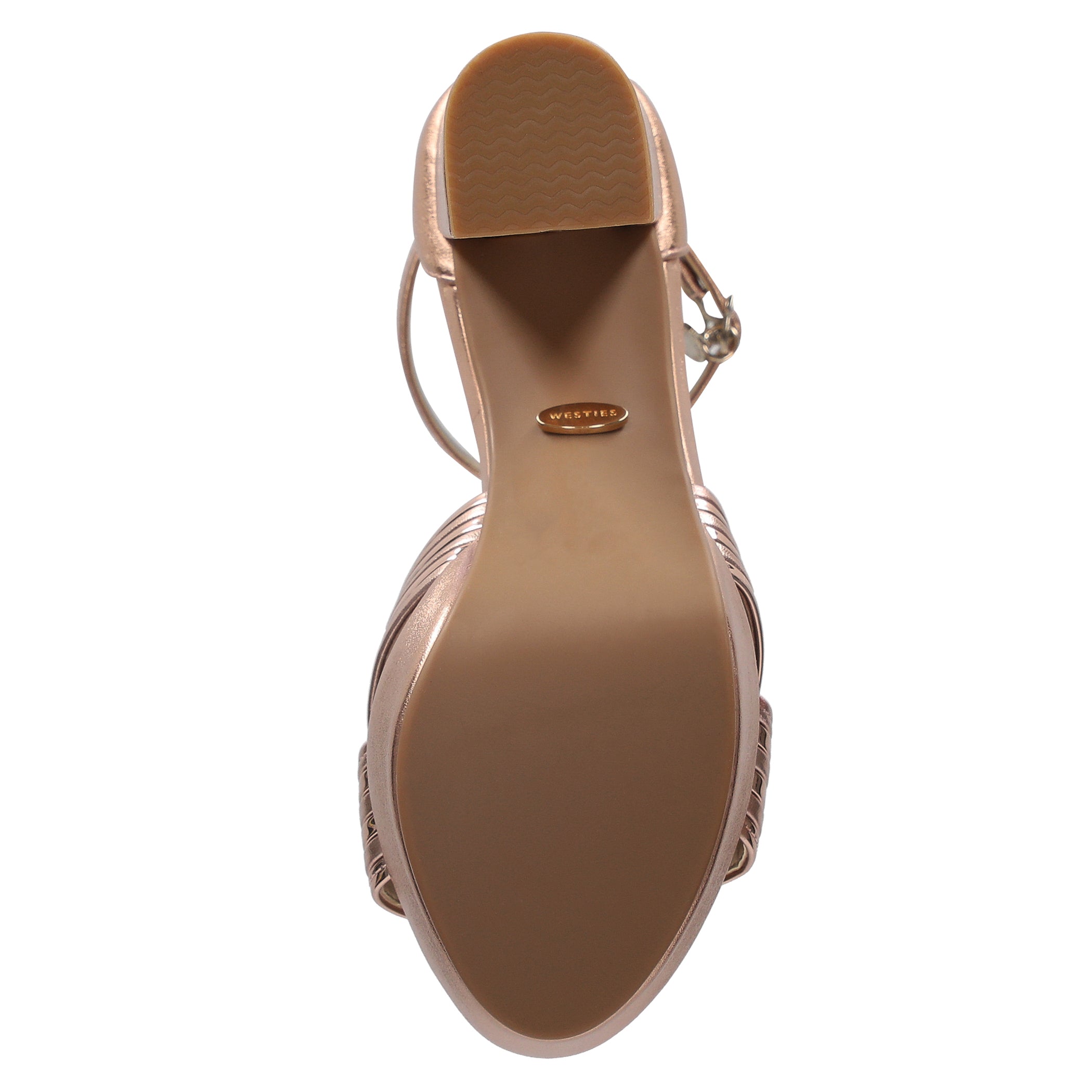 Sandalia Westies para mujer elaborado en material sintético con aplicación lisa, estampado liso, fijación de hebilla, forro sintético, punta redonda, textura lisa y altura de tacón 12.5 cm
