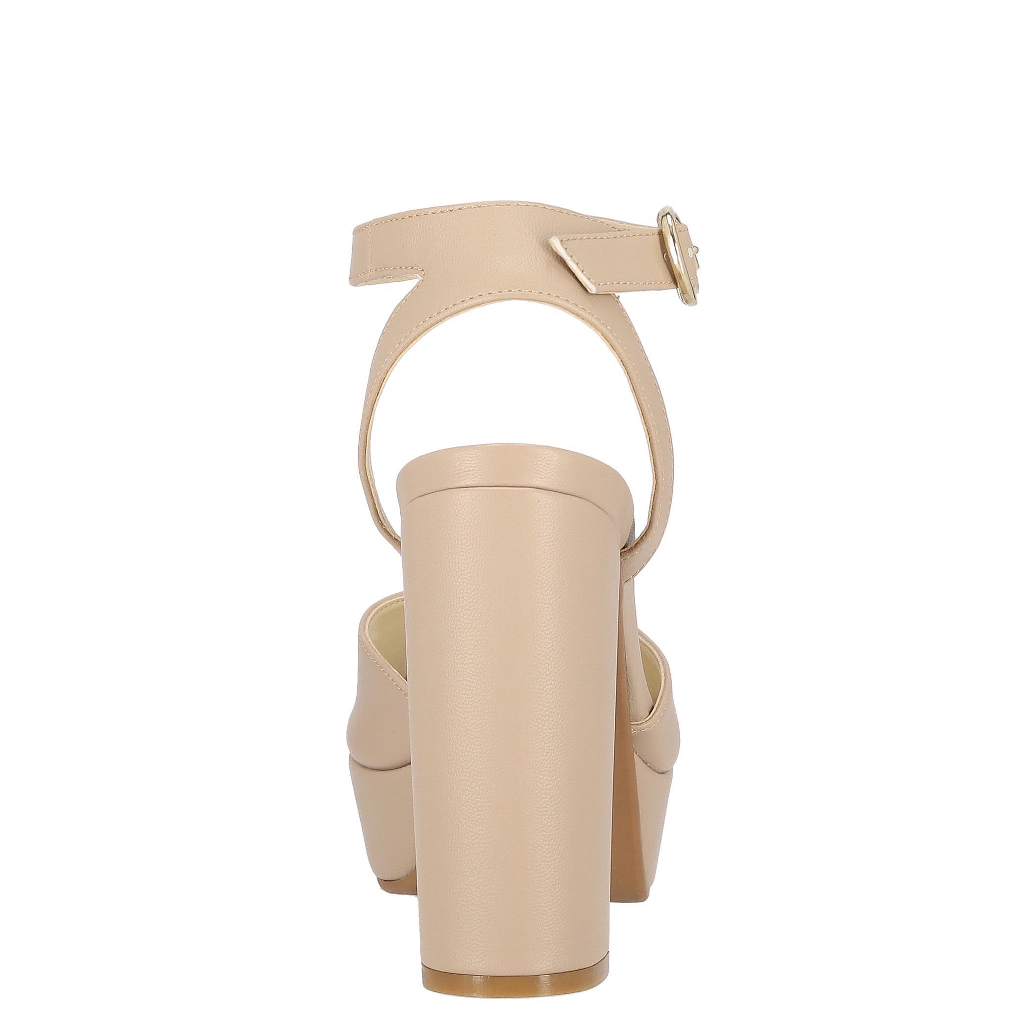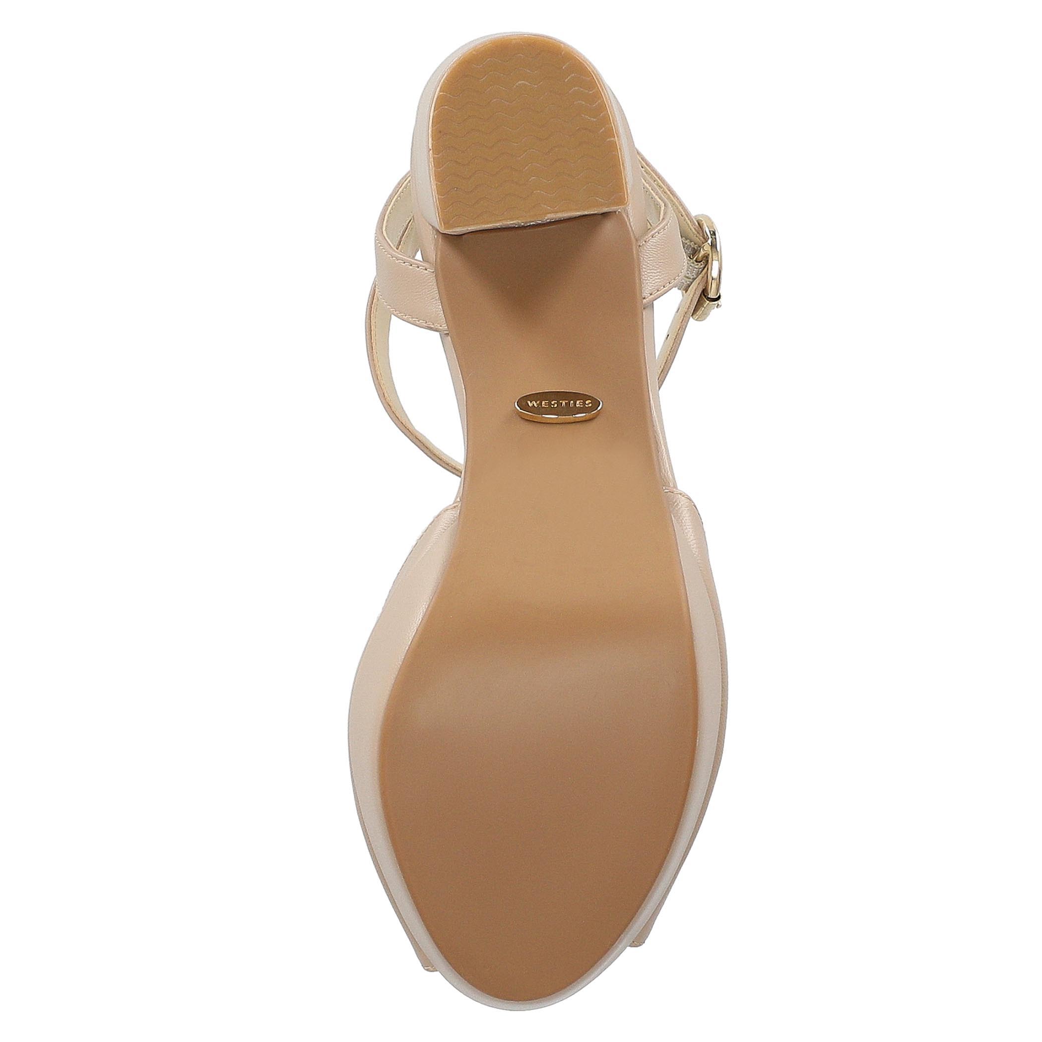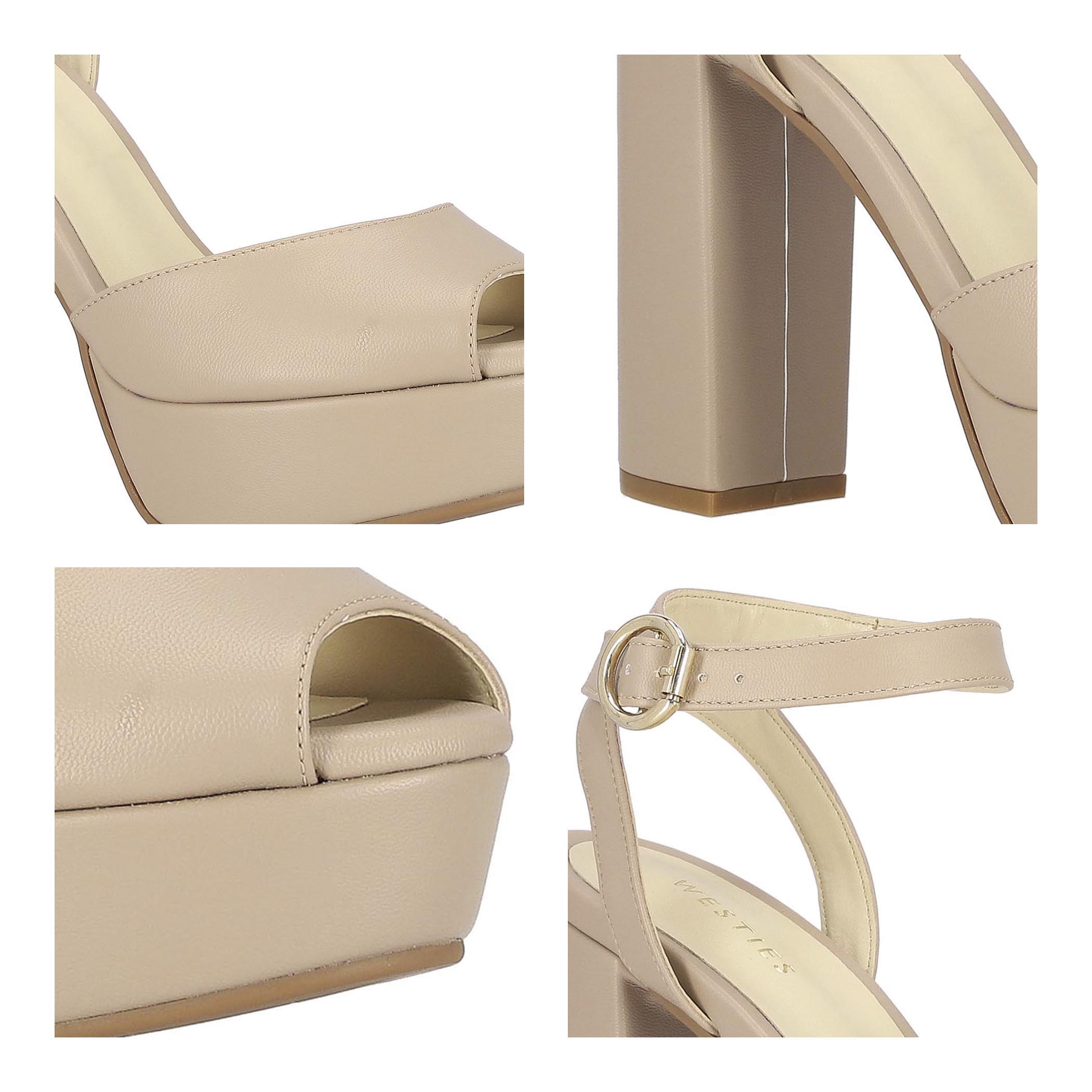 Sandalia Westies para mujer elaborado en material sintético con aplicación liso, estampado liso, forro sintético, suela de inyección, fijación hebilla, punta boca de pescado, textura lisa, con una altura de tacón 12.5 cm.