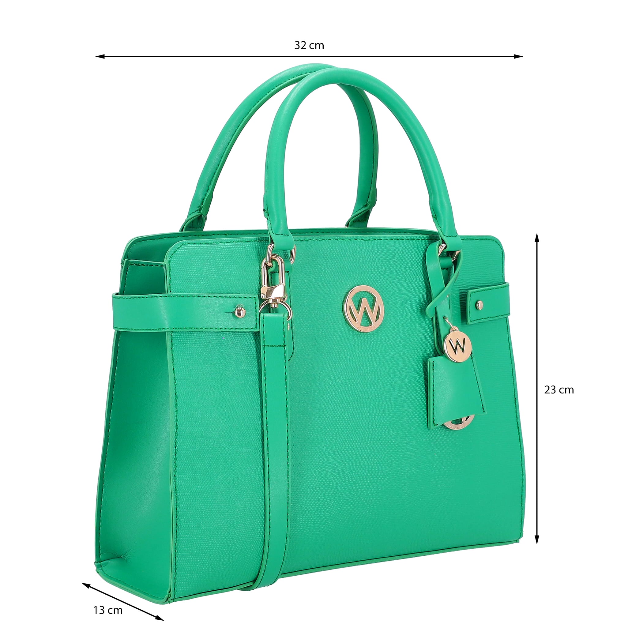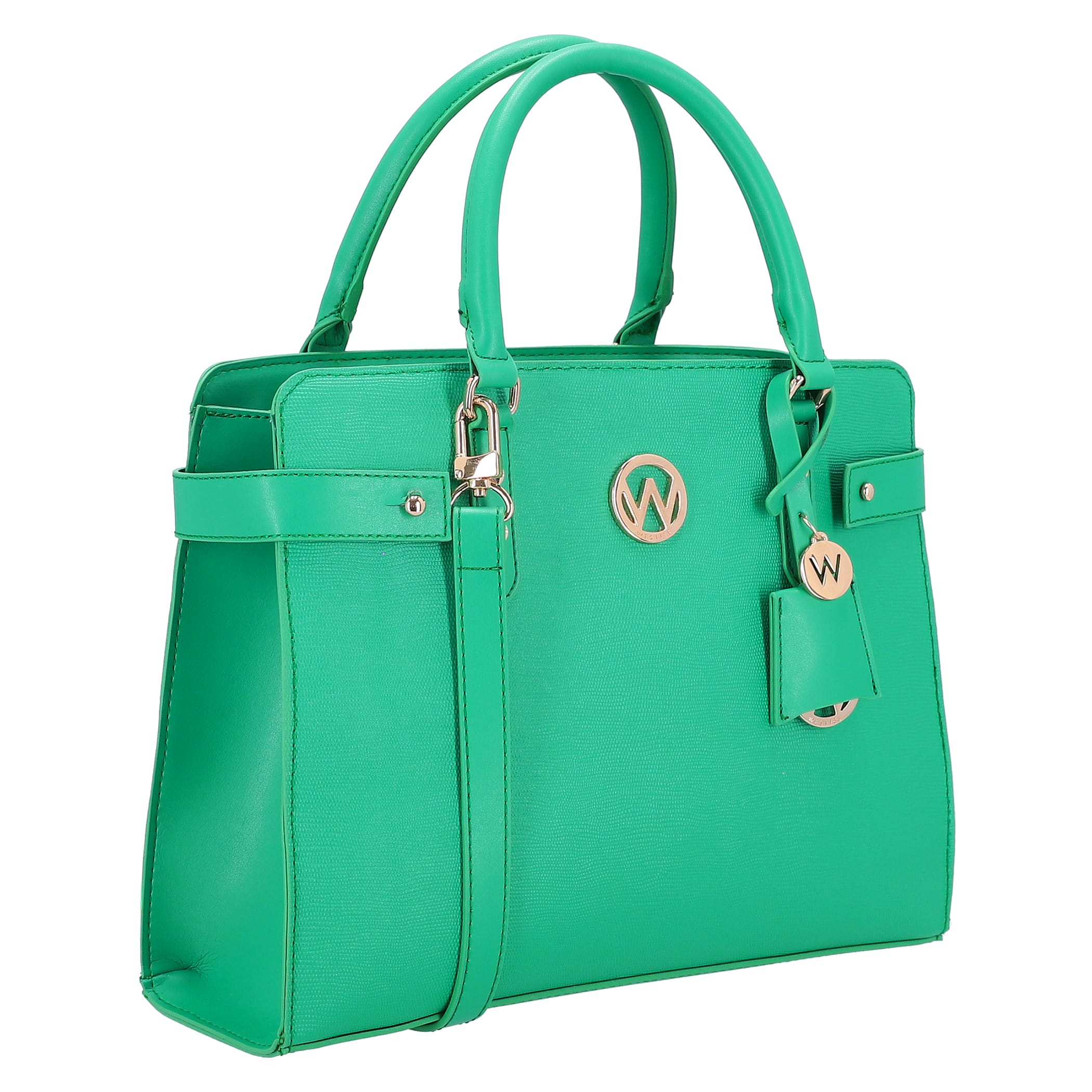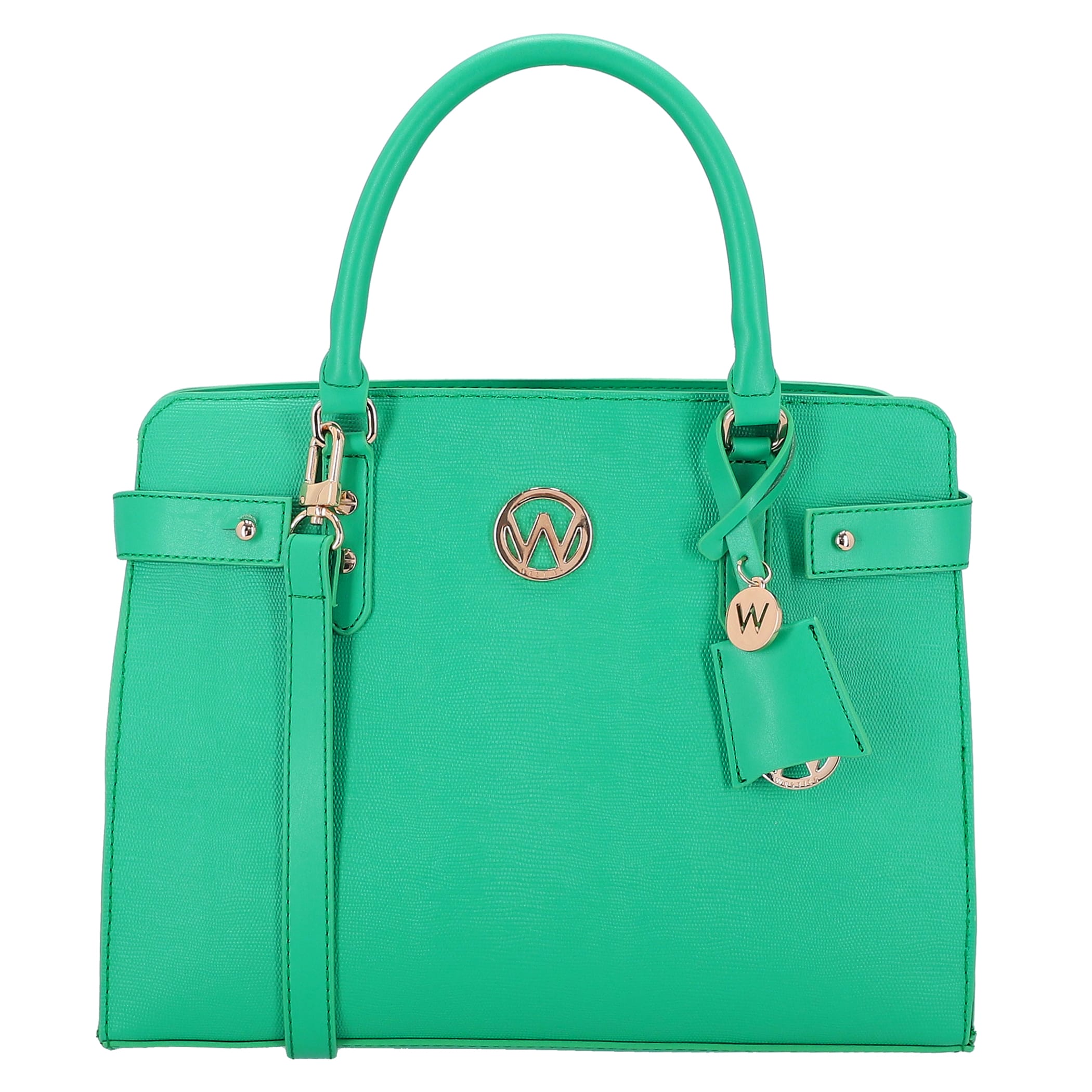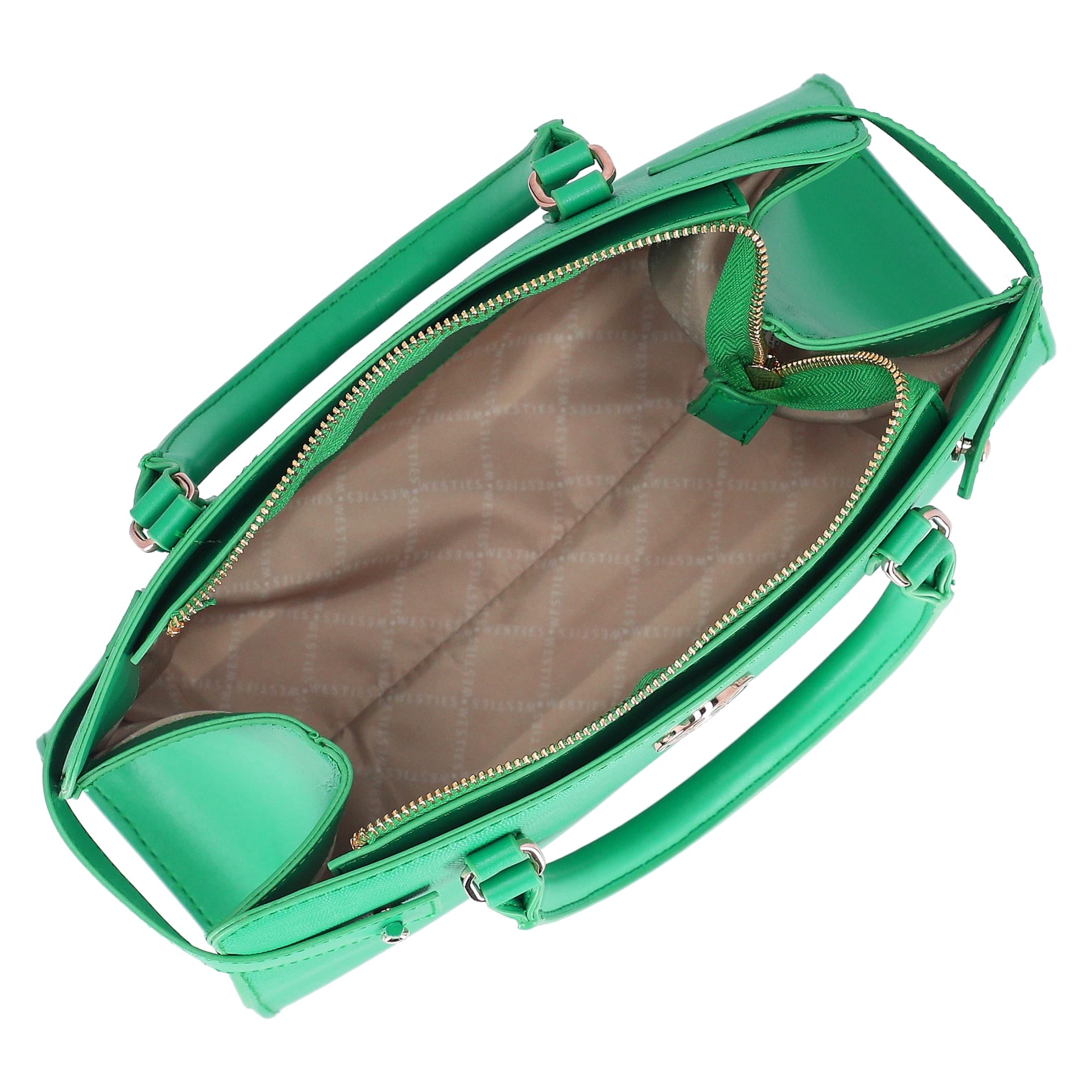 Bolsa de mano Westies para mujer elaborado en material sintético con aplicación liso, estampado liso, forro textil, 2 compartimentos, charm no desprendible, asa ajustable y desprendible, fijación cierre y textura saffiano.
