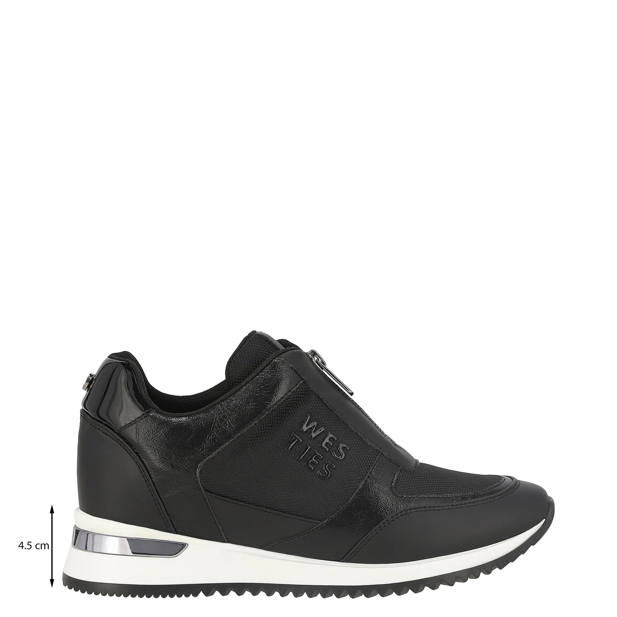 Estos tenis Westies, elaborados en material sintético con estampado liso, son ideales para quienes buscan un calzado práctico y moderno. Con una plataforma de 4.5 cm y punta redonda, ofrecen una elevación sutil que complementa cualquier look casual. Su fijación de cierre asegura un ajuste rápido y seguro, mientras que la textura lisa y el forro textil proporcionan un confort adicional. Perfectos para el día a día, son la elección ideal para un estilo urbano y contemporáneo.