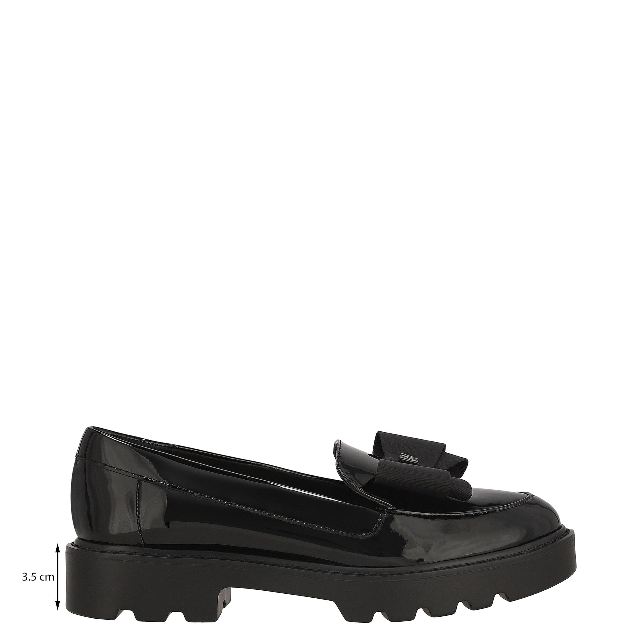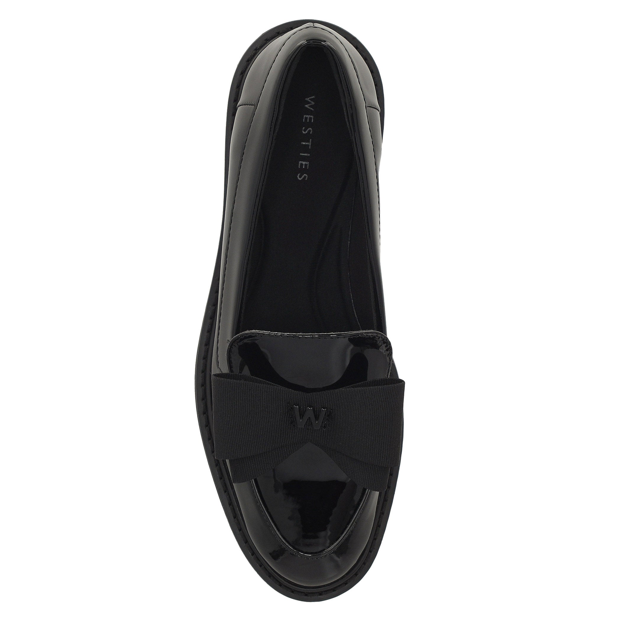 Dale un toque de sofisticación a tu estilo con estos mocasines Westies. Confeccionados en material charol sintético con estampado liso y textura lisa, su diseño elegante se realza con la aplicación de moño, aportando un detalle femenino y distintivo. La punta redonda y la fijación abierta garantizan comodidad en cada paso, mientras que la cuña flat y el tacón de 3.5 cm ofrecen un sutil realce sin perder confort.