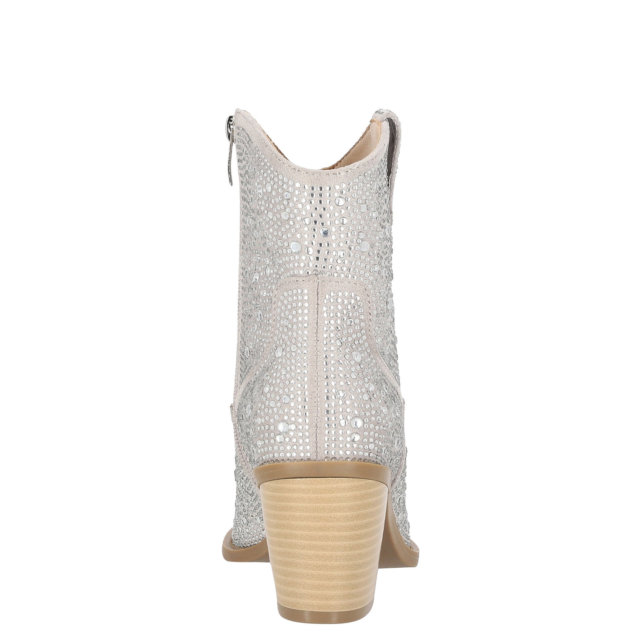 Botín Con Tacón Sylvie Gamuza Textil Plata Westies