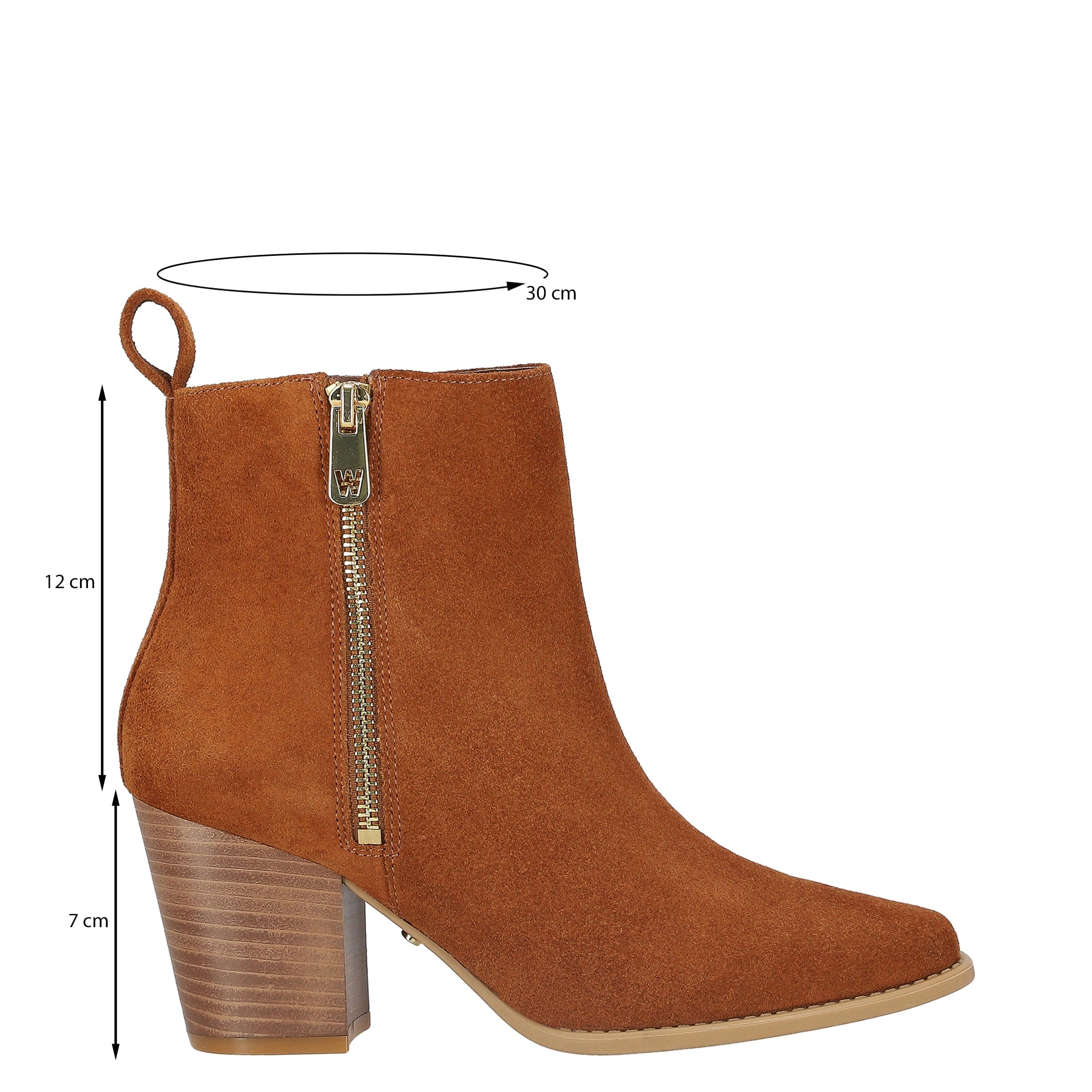 Estos botines con tacón Westies son la elección perfecta para un look sofisticado con un toque moderno. Confeccionados en material de gamuza con estampado liso y textura lisa, presentan una punta cuadrada que aporta carácter y estilo. La fijación de cierre permite un ajuste práctico y seguro, mientras que la cuña baja y el tacón de 7 cm brindan la altura ideal para estilizar tu silueta sin sacrificar comodidad.